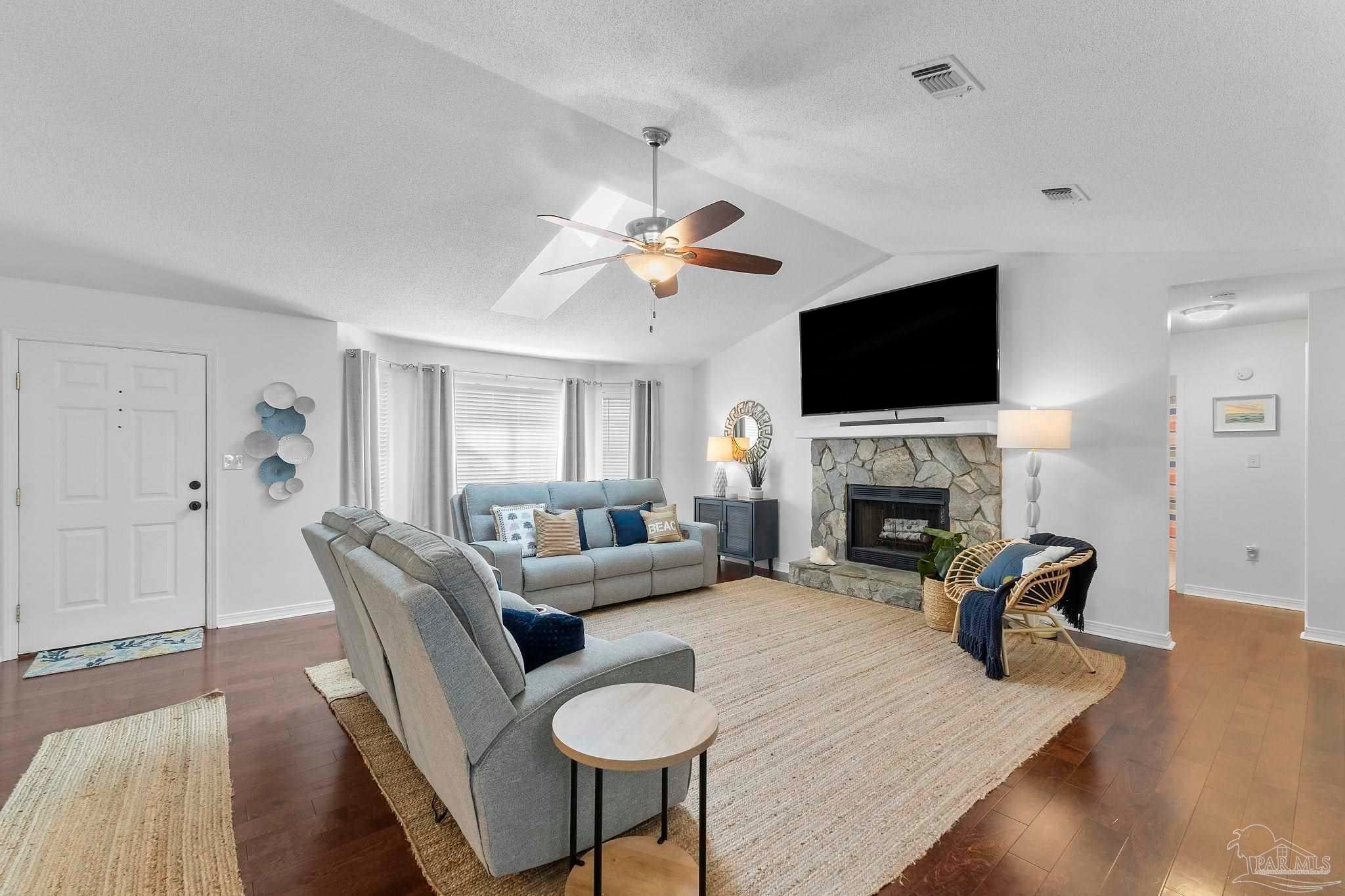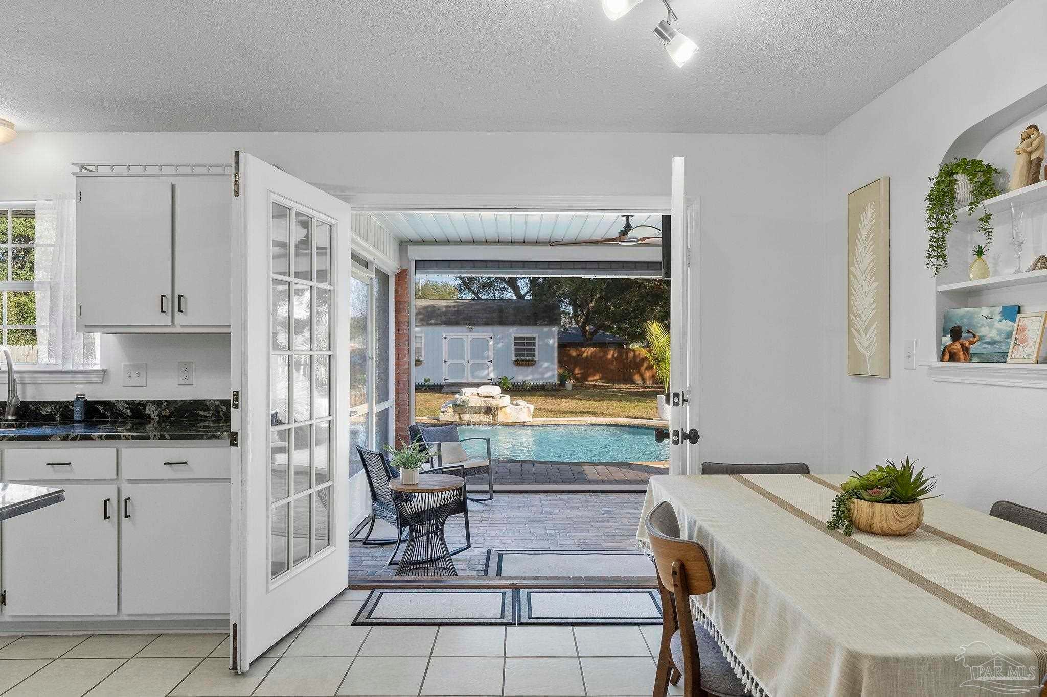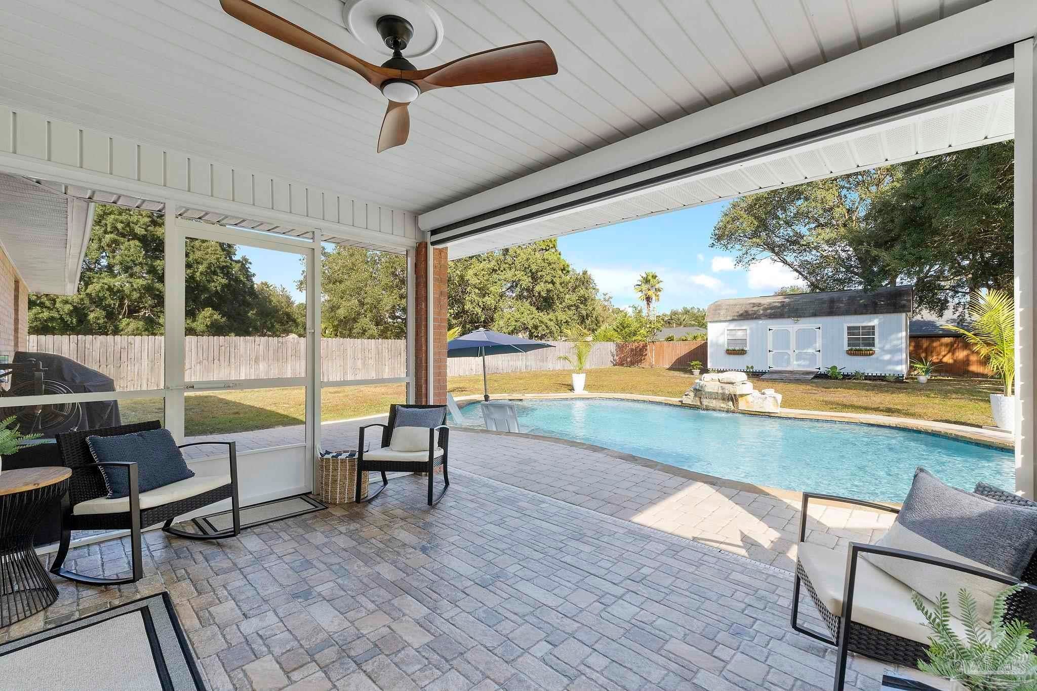 Pool home located just minutes to the beautiful emerald coast of Florida! Tall ceilings with skylights brings natural light in throughout. The kitchen offers granite counter tops and stainless steel appliances. There are double doors leading you to your screened in porch that offers a motorized screen that you can leave up for the view or down. Step out to your stylish gunite pool with a waterfall fountain, a built in ledge, and seating great for entertaining! Prestige Landscapes designed and installed a stylish landscape design with 3 boulders and lights highlighting the palm trees and landscape made to come on from dusk to dawn! Not to mention the front and back yard have timed irrigation. Also included in this beauty is a 24x14 shed with extra storage shelves above and a window ac unit that includes heat. There’s plenty of parking with a side parking pad and a double gate large enough to park your boat! If you’re looking for a home with a pool, look no further! Just imagine opening your double doors leading you to a covered screened in porch while listening to the waterfall from your pool throughout the inside of your house! It is so tranquil… Located in Holley by the Sea offering fitness center, boat launch, pier to sound and more! (Sellers are license FL real estate agents.)