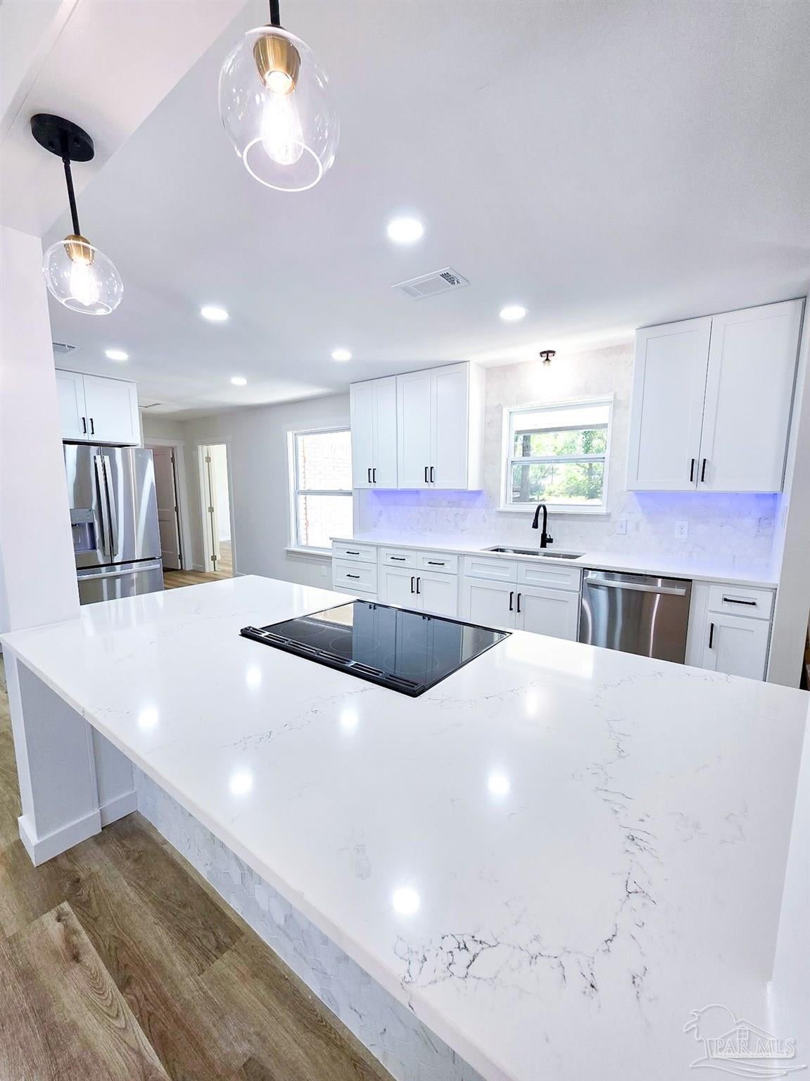 Welcome home to this beautifully remodeled 4 bedroom, 2 bathroom home nestled on 4 private acres right in the heart of Milton! Enjoy the perfect blend of modern comfort and country serenity. Close to shopping, dining, and schools, yet tucked away in a quiet neighborhood with no HOA. This move-in ready property has been completely updated, featuring brand new appliances, LVP flooring, and a new roof for lasting peace of mind. The spacious open concept floor plan creates a seamless flow from the living room to the dream kitchen, which showcases a gorgeous 8 ft island, new cabinetry, and stylish finishes. Perfect for entertaining or family gatherings. The primary suite offers a luxurious escape with a tiled walk-in shower and ample closet space. Each additional bedroom is roomy and bright, providing plenty of flexibility for guests, family, or office space. Step outside to an expansive 15x30 back patio leading to a fire pit area. Perfect for evening relaxation or get togethers. A 12x12 shed and 22x20 carport provide plenty of storage for vehicles, trailers, and recreational toys. Watch deer and wildlife right from your backyard. A rare find this close to town! This property truly has it all. Space, privacy, modern upgrades, and no HOA restrictions. Don’t miss your opportunity to own this beautiful in-town retreat at 6350 Greenwood Dr, Milton, FL 32570. Schedule your showing today!