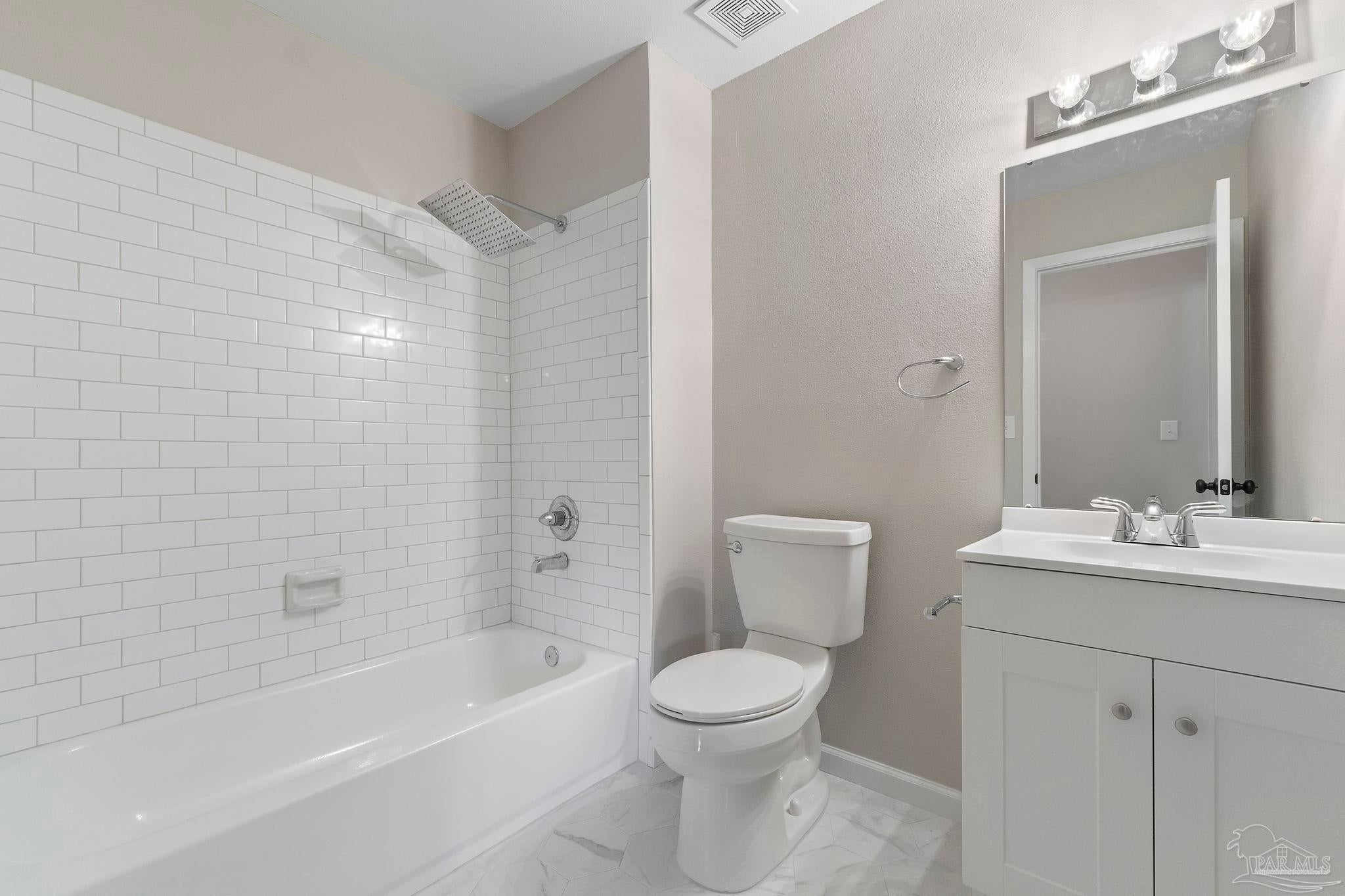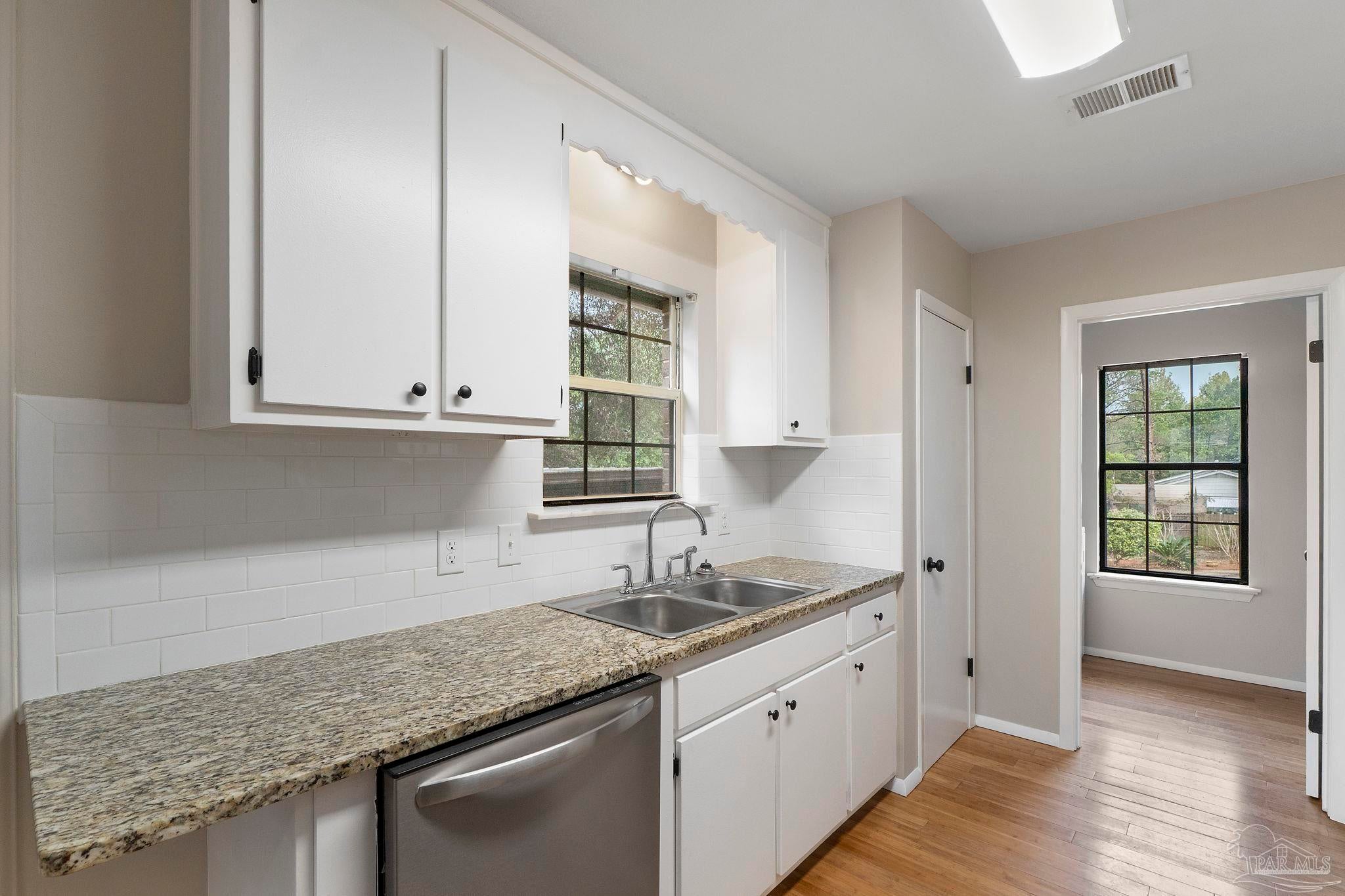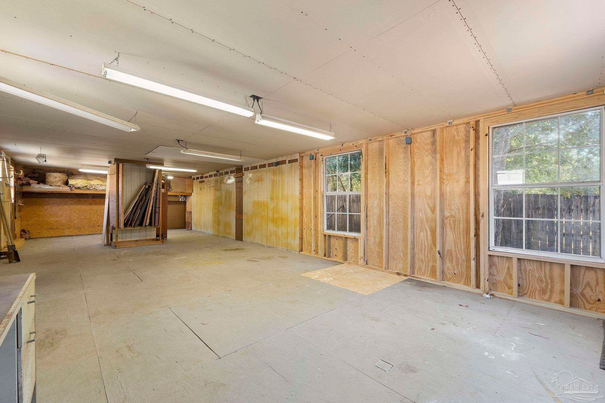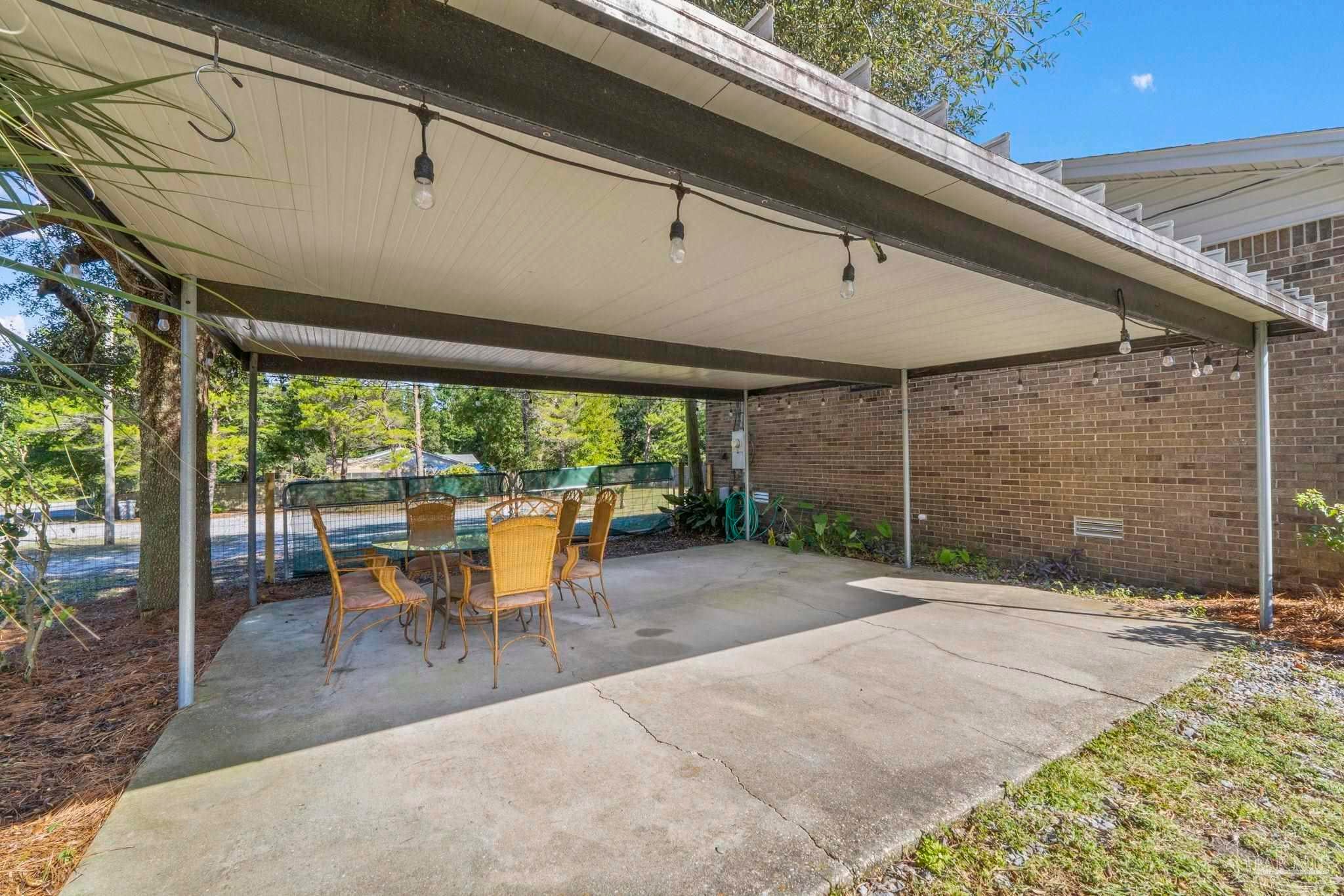 Set on nearly an acre (0.997), this all-brick, 3-bedroom, 2-bath CUL-DE-SAC home with a RECENT ROOF (AUG 2022) and NEW WATER HEATER, offers the rare blend of move-in comfort, PRIVATE, outdoor breathing room, and a HUGE, climate-controlled workshop! Thoughtfully designed across approximately 1,540 square feet, the layout lives large: a generous living room with warm wood floors leads into a refreshed galley kitchen featuring granite counters, subway-tile backsplash, stainless steel appliances, and crisp white cabinetry. The laundry room sits just off the kitchen for everyday convenience. All bedrooms are well-proportioned, and one includes custom Murphy cabinetry that instantly converts from an office to a guest space without sacrificing square footage. Both baths are updated, one with a sleek subway-tile tub/shower and the other with a walk-in shower and modern vanity. Outdoor living expands the experience. Begin mornings on the tiled screened porch, host shaded gatherings beneath the covered patio/carport, or put the expansive fenced backyard to work—garden, play, or plan future amenities with room to spare. A newer front deck adds inviting curb appeal and an extra place to unwind. The standout feature? A 52' x 16' detached building with power and window A/C—unfinished, bright, and versatile—ready to become a workshop, studio, gym, storage hub, or creative retreat. Centrally located between Gulf Breeze and Navarre with quick routes to the Gulf Islands National Seashore, downtown Pensacola, and the Garcon Point Bridge, this property delivers easy coastal access without sacrificing privacy. If you’ve been waiting for elbow room, flexibility, and a real workshop that’s more than an afterthought—this is the one.