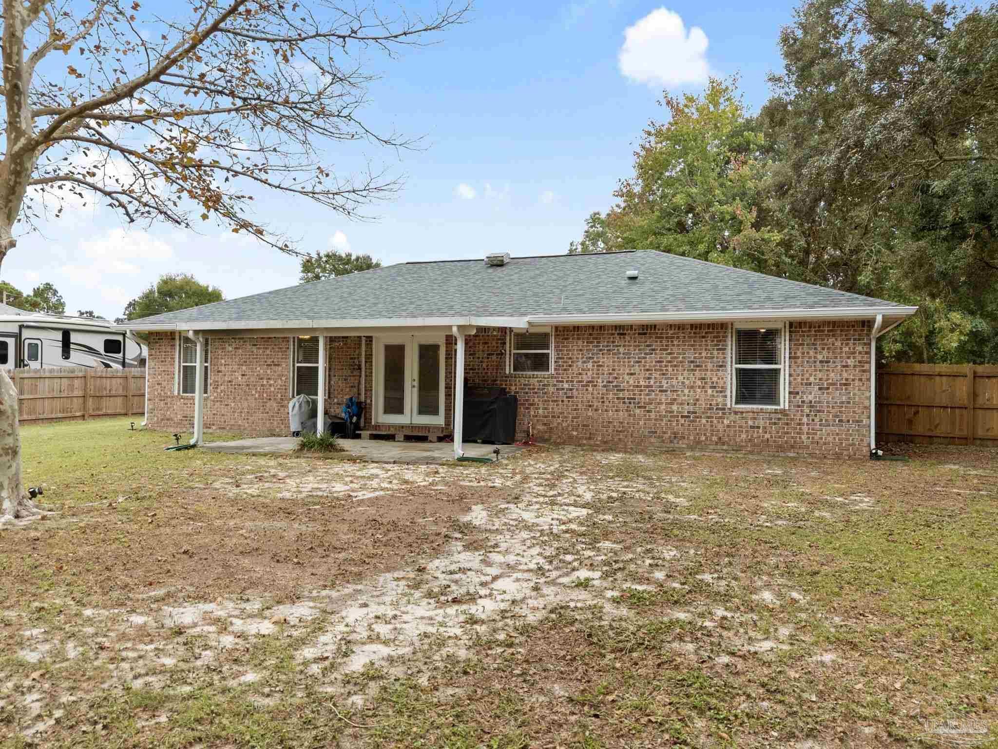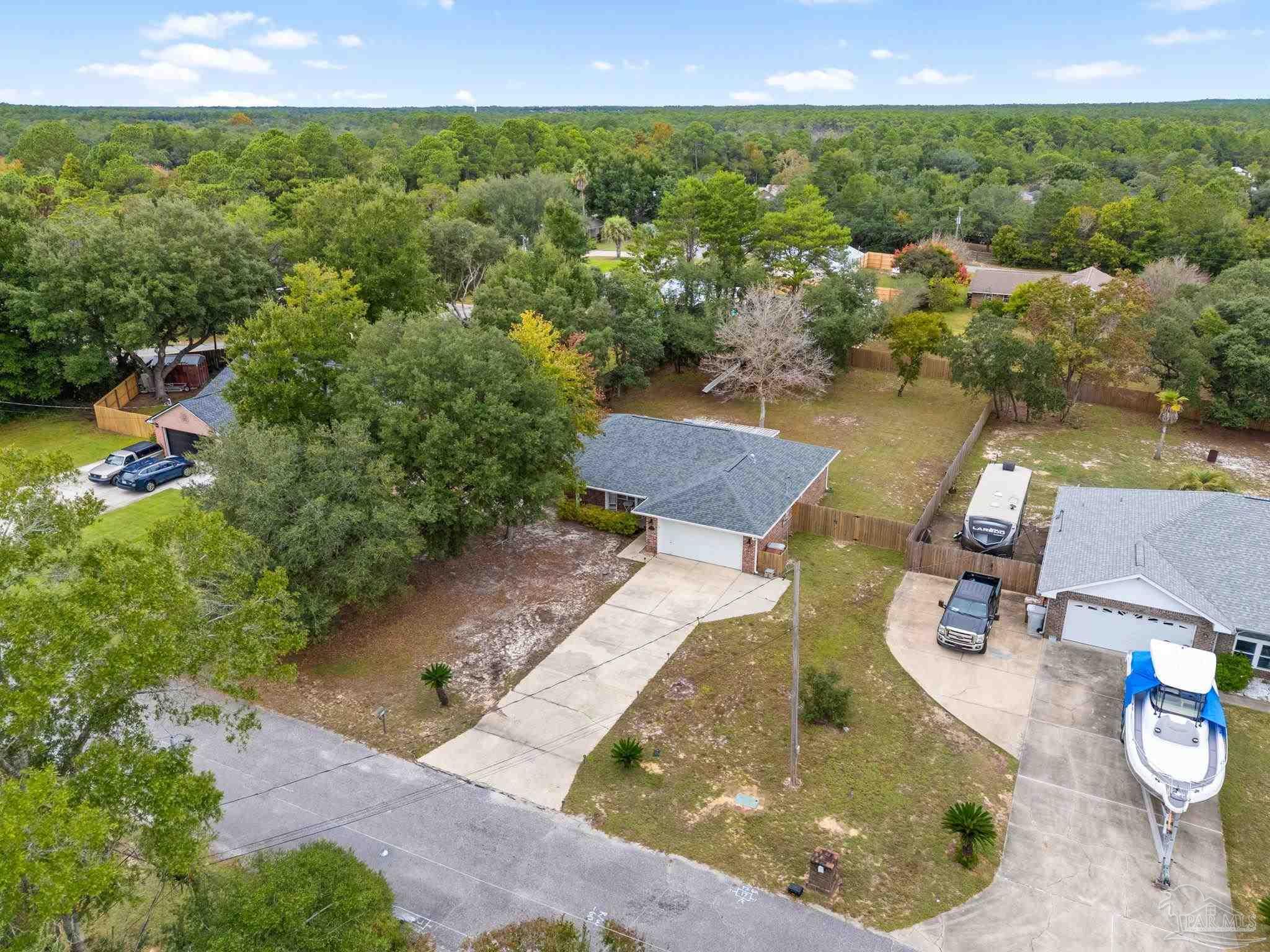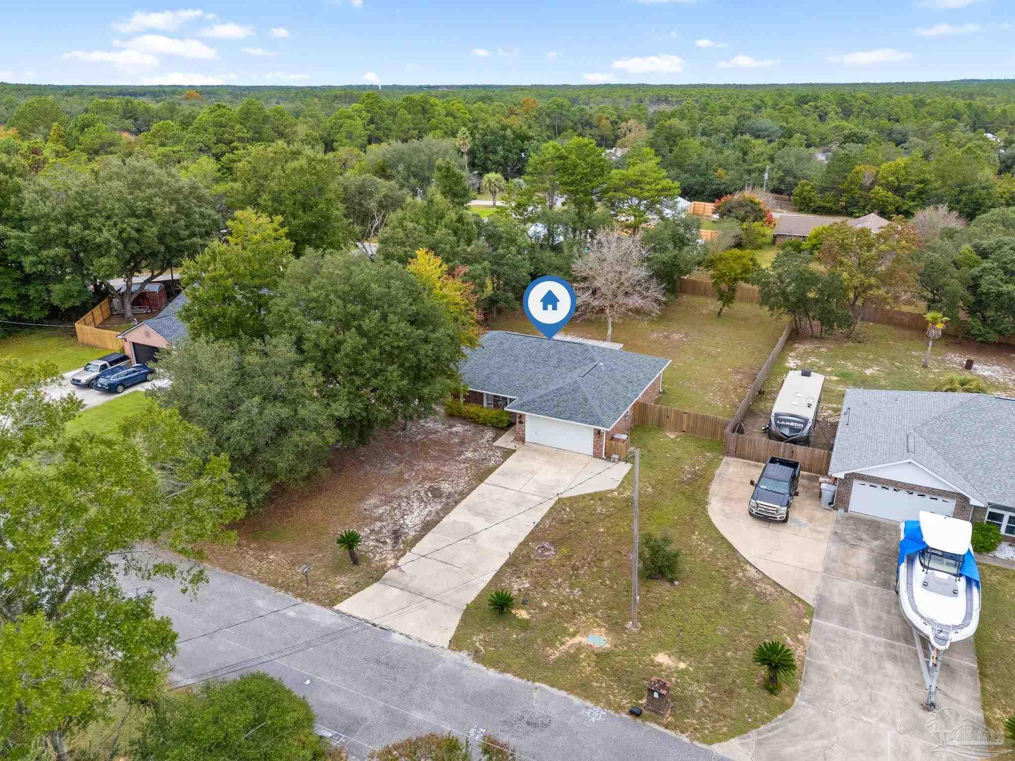 This rare find in Navarre is the one you've been looking for. Tucked away on a quiet low-traffic cul-de-sac, this home gives you peace of mind with major updates already complete, including a newer roof (2022) and newer HVAC (2022). The centerpiece of the open floor plan is the beautiful kitchen, fully remodeled in 2022. It features a large custom island that's perfect for gathering and loaded with smart storage. Enjoy quiet living on a spacious almost half acre lot featuring a large privacy fenced backyard with plenty of room for everyone, all while being less than 3 miles from the beach. Convenient to Hurlburt Field, parks, shopping, restaurants, and schools, this location is convenient to everything you need. It's move-in ready and checks every box. Call to set up your showing today!