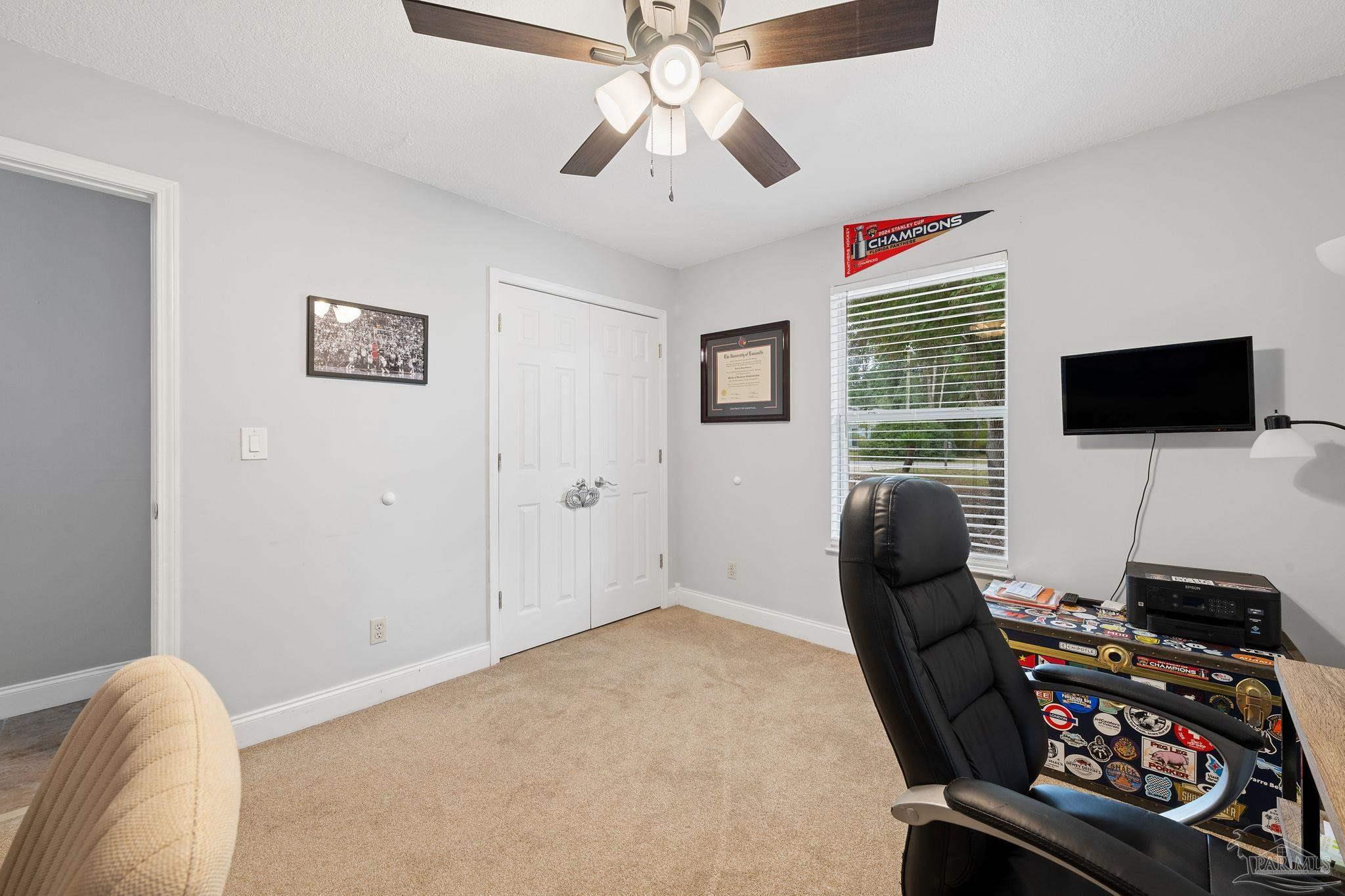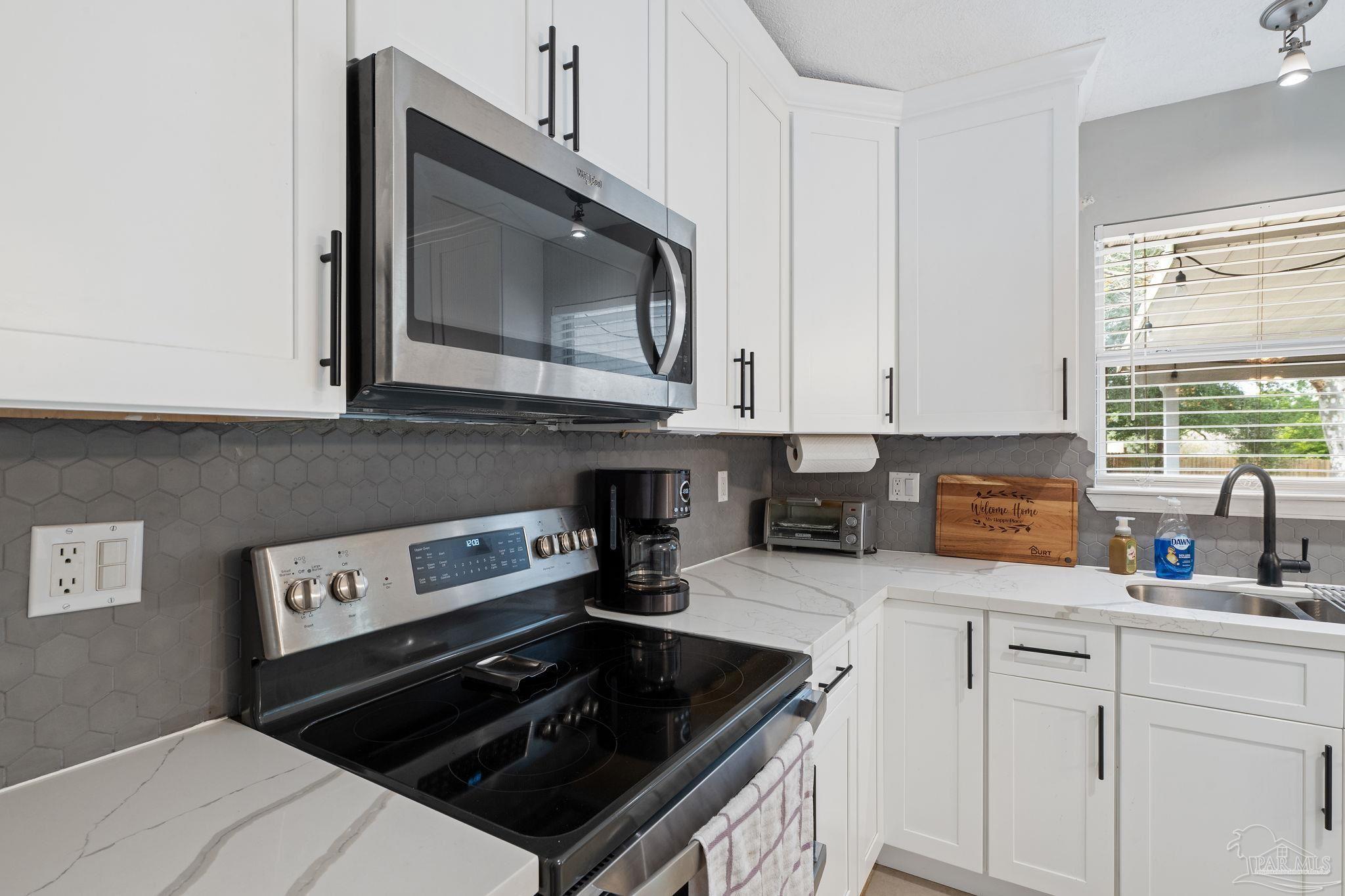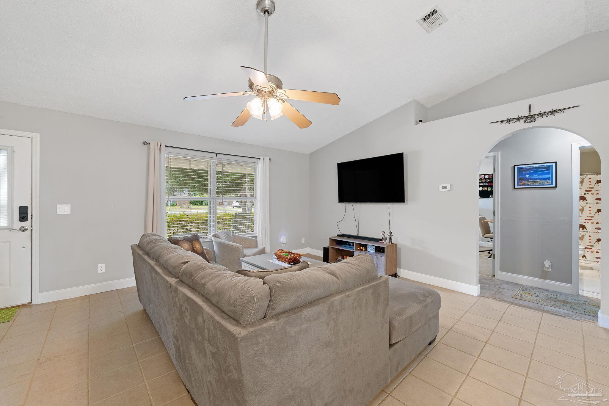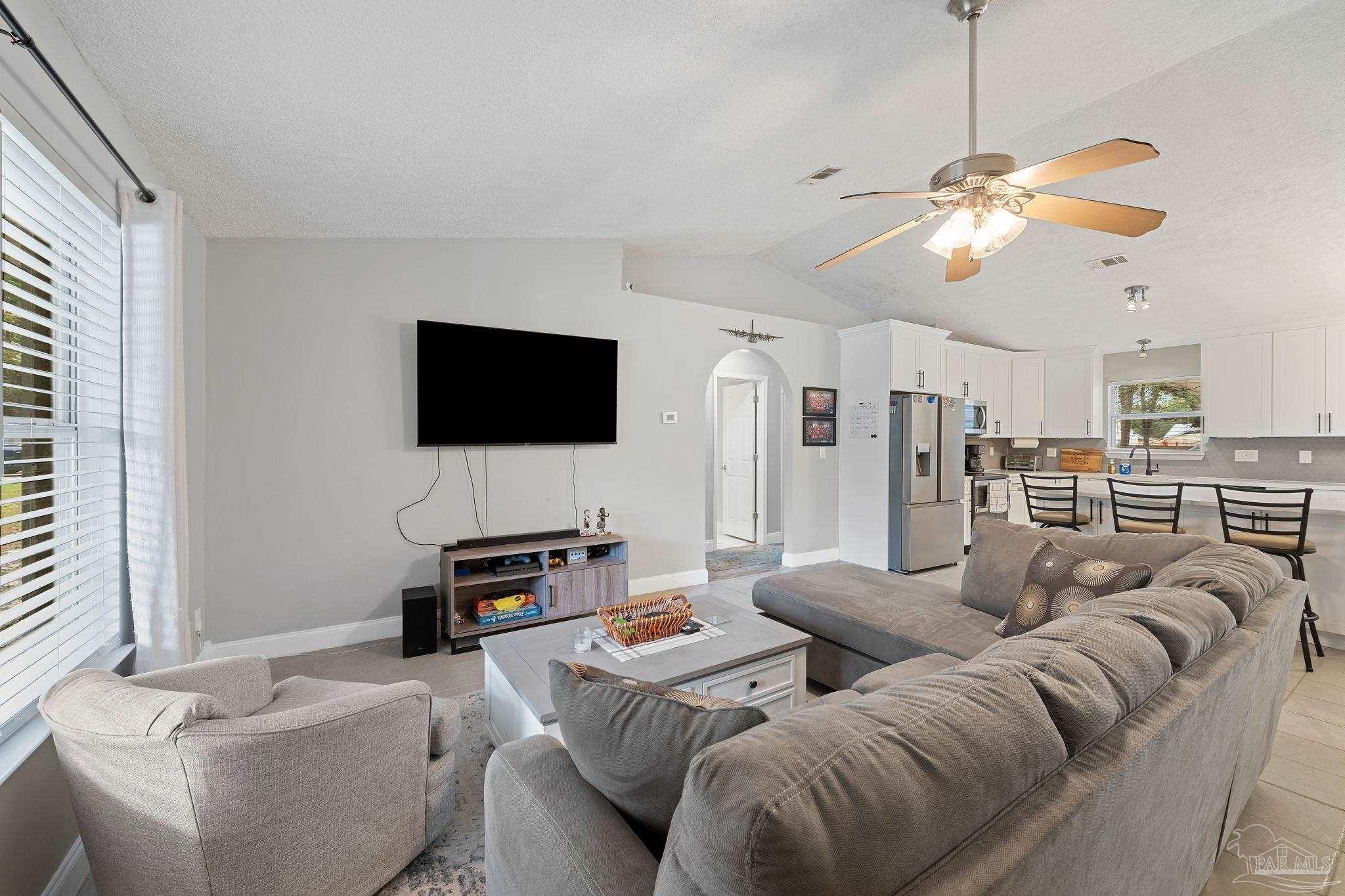 This rare find in Navarre is the one you've been looking for. Tucked away on a quiet low-traffic cul-de-sac, this home gives you peace of mind with major updates already complete, including a newer roof (2022) and newer HVAC (2022). The centerpiece of the open floor plan is the beautiful kitchen, fully remodeled in 2022. It features a large custom island that's perfect for gathering and loaded with smart storage. Enjoy quiet living on a spacious almost half acre lot featuring a large privacy fenced backyard with plenty of room for everyone, all while being less than 3 miles from the beach. Convenient to Hurlburt Field, parks, shopping, restaurants, and schools, this location is convenient to everything you need. It's move-in ready and checks every box. Call to set up your showing today!