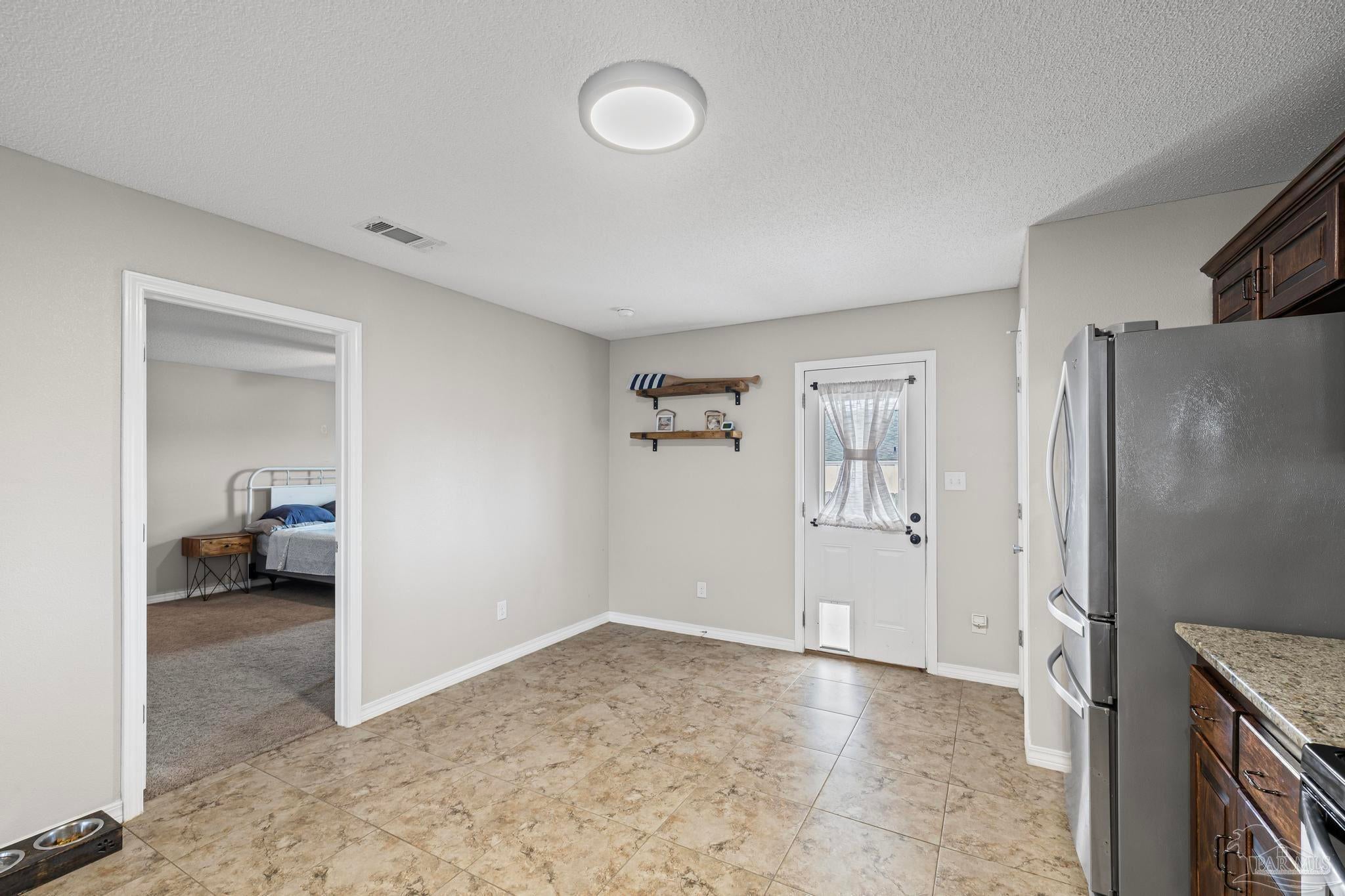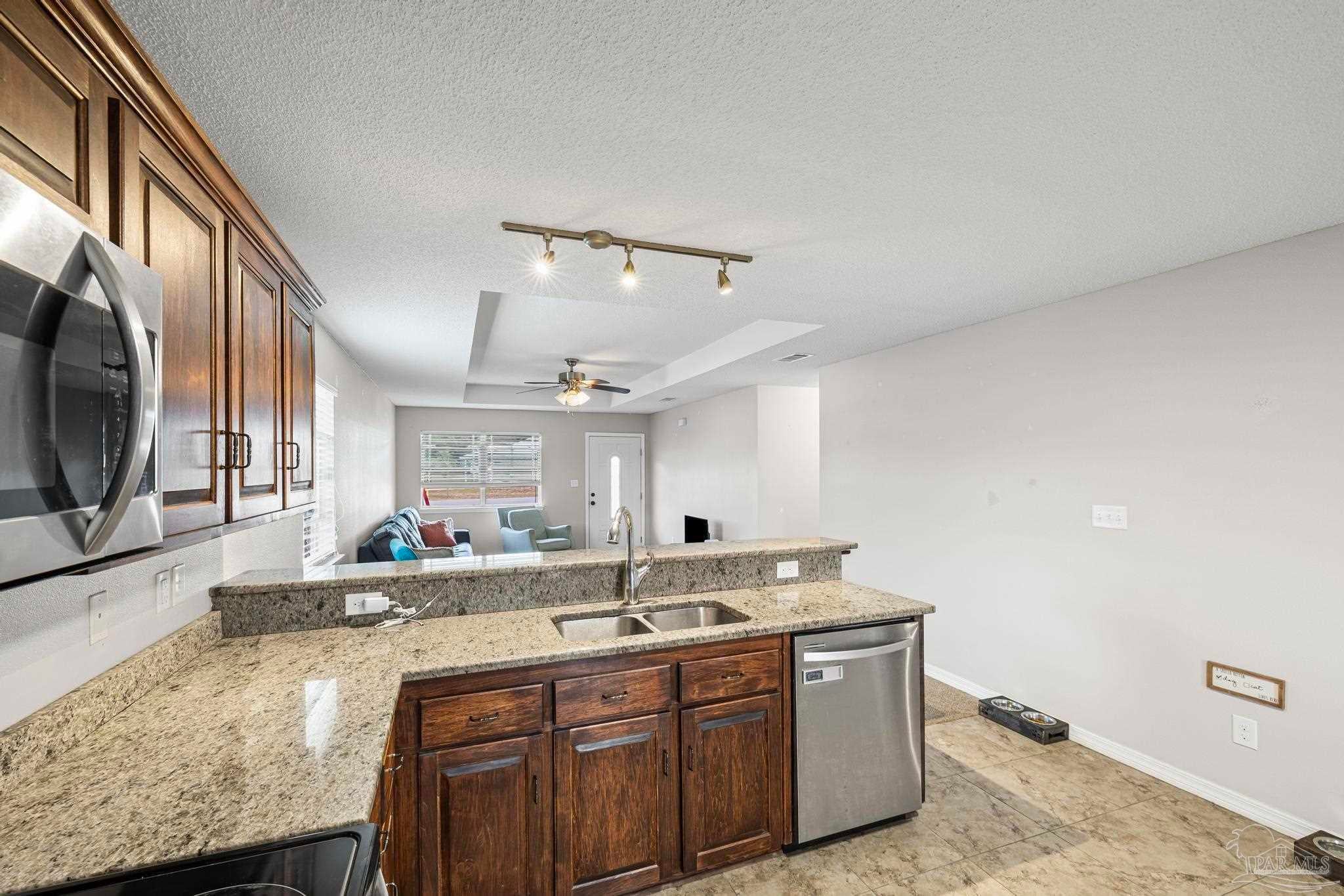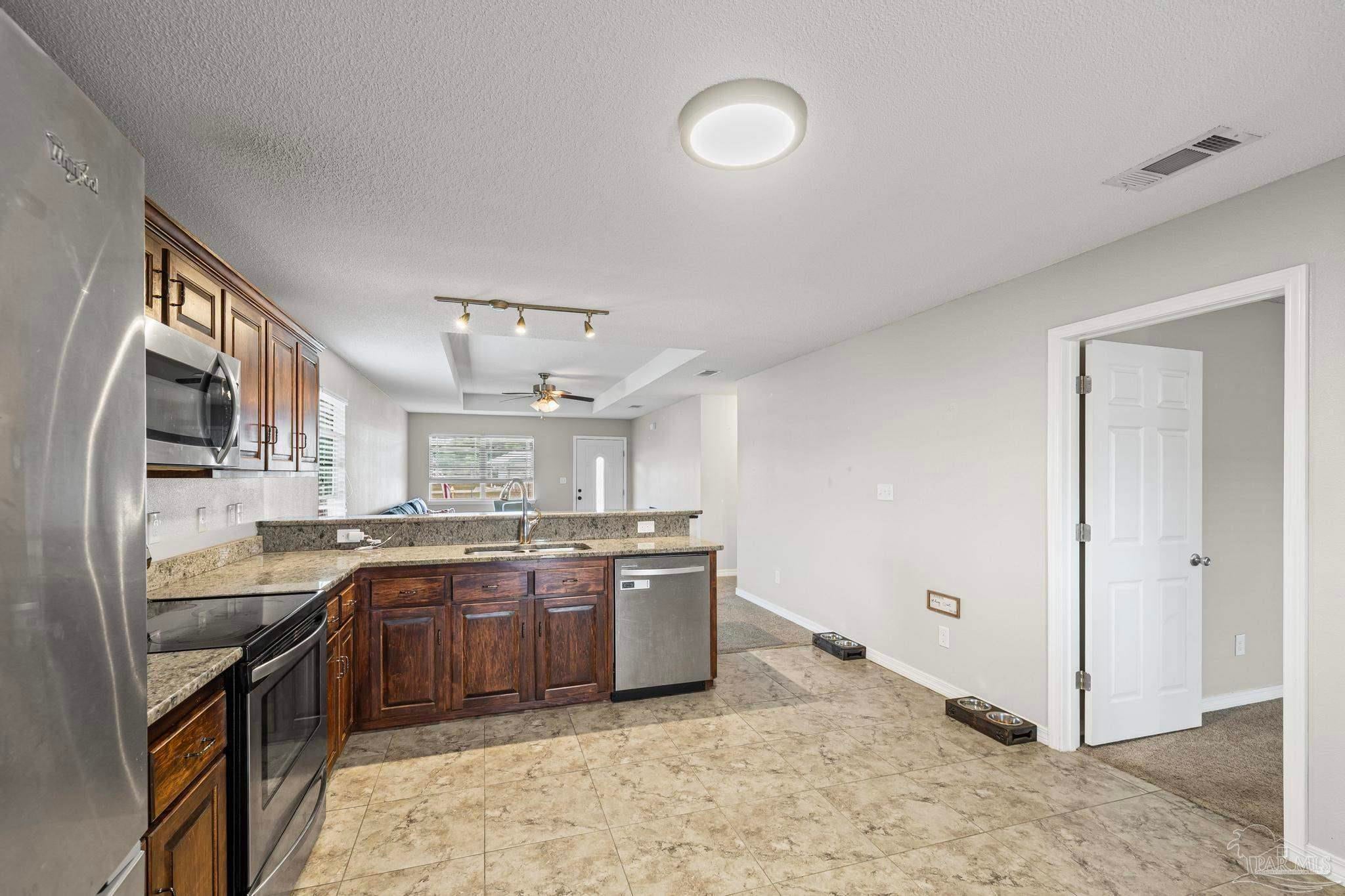 Welcome to this desirable 3 bedroom, 2 bathroom ranch home located on a corner lot in beautiful Navarre with NO HOA! This property is a Short Sale and is ready to sell according to the Owner’s lender. When you arrive to this corner lot location - which is close to the Navarre Beach Causeway, you will notice that the fenced back yard faces south so you will have sun in the back yard year round - unless it is rainy, cloudy or overcast of course :). Your dogs will love this! Inside - the kitchen is in the heart of the home and features a large eat-in or dining area, tile floors, granite countertops, ample dark wood cabinet space, pantry and stainless appliances - fridge, built-in microwave, dishwasher, and smooth top range. Enjoy the convenient flow and accessibility of a classic ranch floor plan, offering an open-concept main living area. The main suite features a large walk-in closet, high ceiling with ceiling fan and the bath has double vanity and easy to clean tub/shower combo. The corner lot not only enhances the home's curb appeal but also provides extra yard space—perfect for gardening, a play area, or future upgrades like a pool. Located just a short drive from the sugar-white sands of Navarre Beach and the Navarre Beach Pier. Enjoy easy access to excellent Santa Rosa County schools, shopping, local dining and Convenient Commute with quick access to major roads for an easy drive to Eglin AFB, Hurlburt Field, Pensacola, and Destin. This move in ready all electric home is a fantastic opportunity to secure a charming home on a great lot in one of Florida's most relaxing coastal communities!