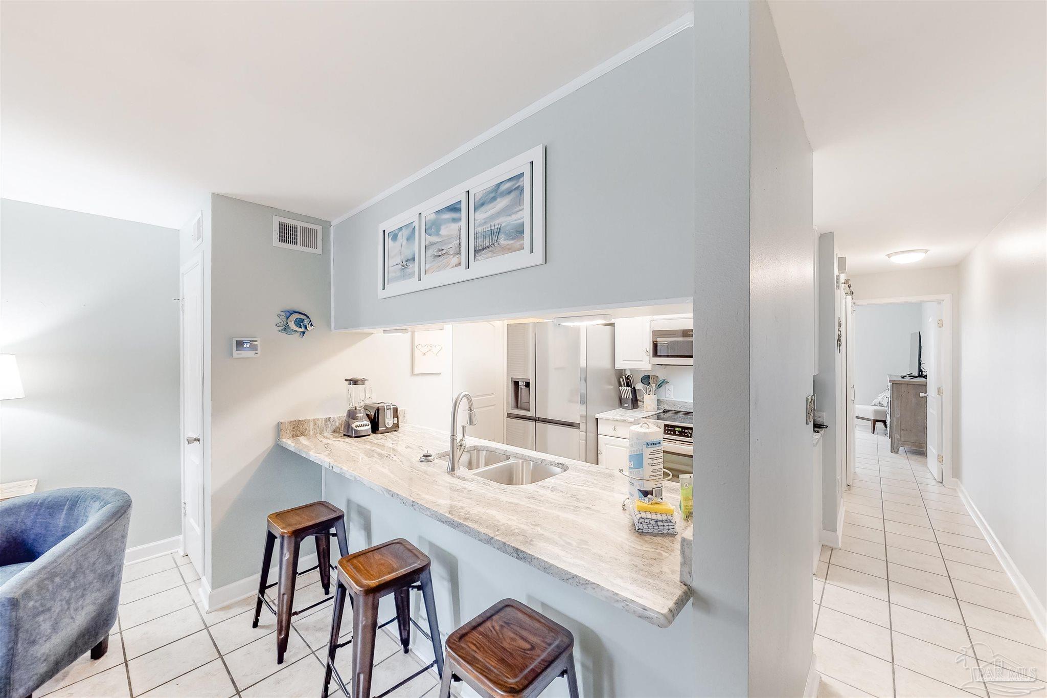 Great investment condo at the beach, remodeled and Low $500 month HOA dues! No minimum night rent restriction which enhances income! Extra large and spacious one bedroom low density Beach rental fully furnished with newer furnishings, newer appliances, remodeled bath, 2 year old HVAC and a Coastal vibe with direct deeded beach access. Step onto the large deck for relaxation after a swim in the beautiful onsite pool! Gorgeous Granite in Kitchen and bath with updated stainless steel appliances and remodeled Bath with walk in tiled shower. Large Laundry Room/pantry and huge Master Suite that opens through the sliding door onto the expansive deck are just a few of the amenities of this well stocked condo with a newer Heat and Air System. Take this affordable opportunity to own an exclusive Perdido Key investment! Seller is a licensed Real Estate Broker
