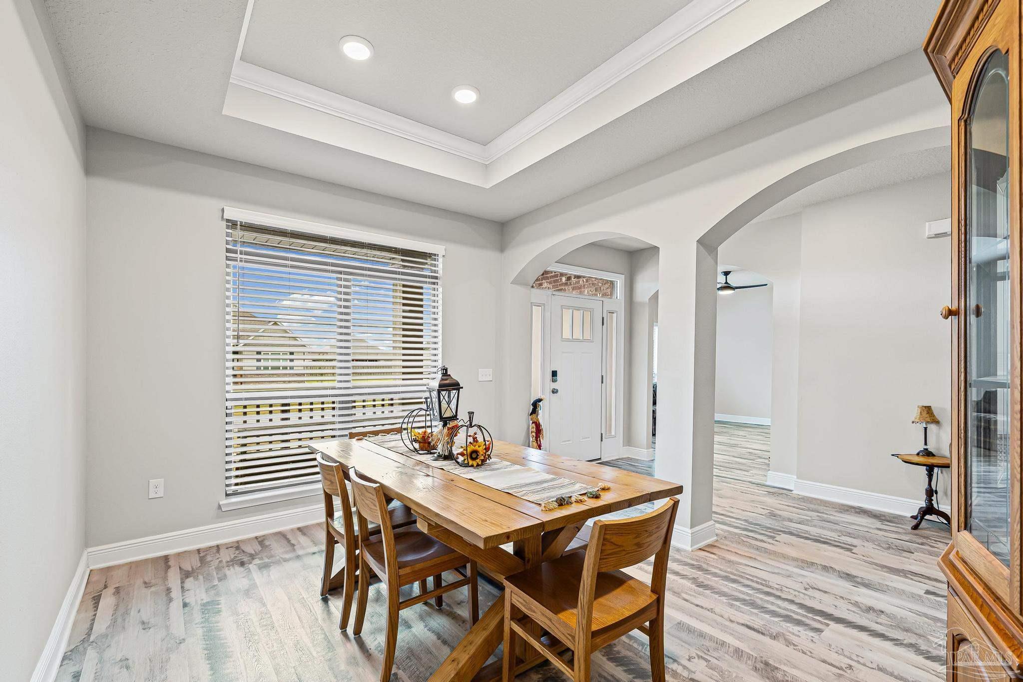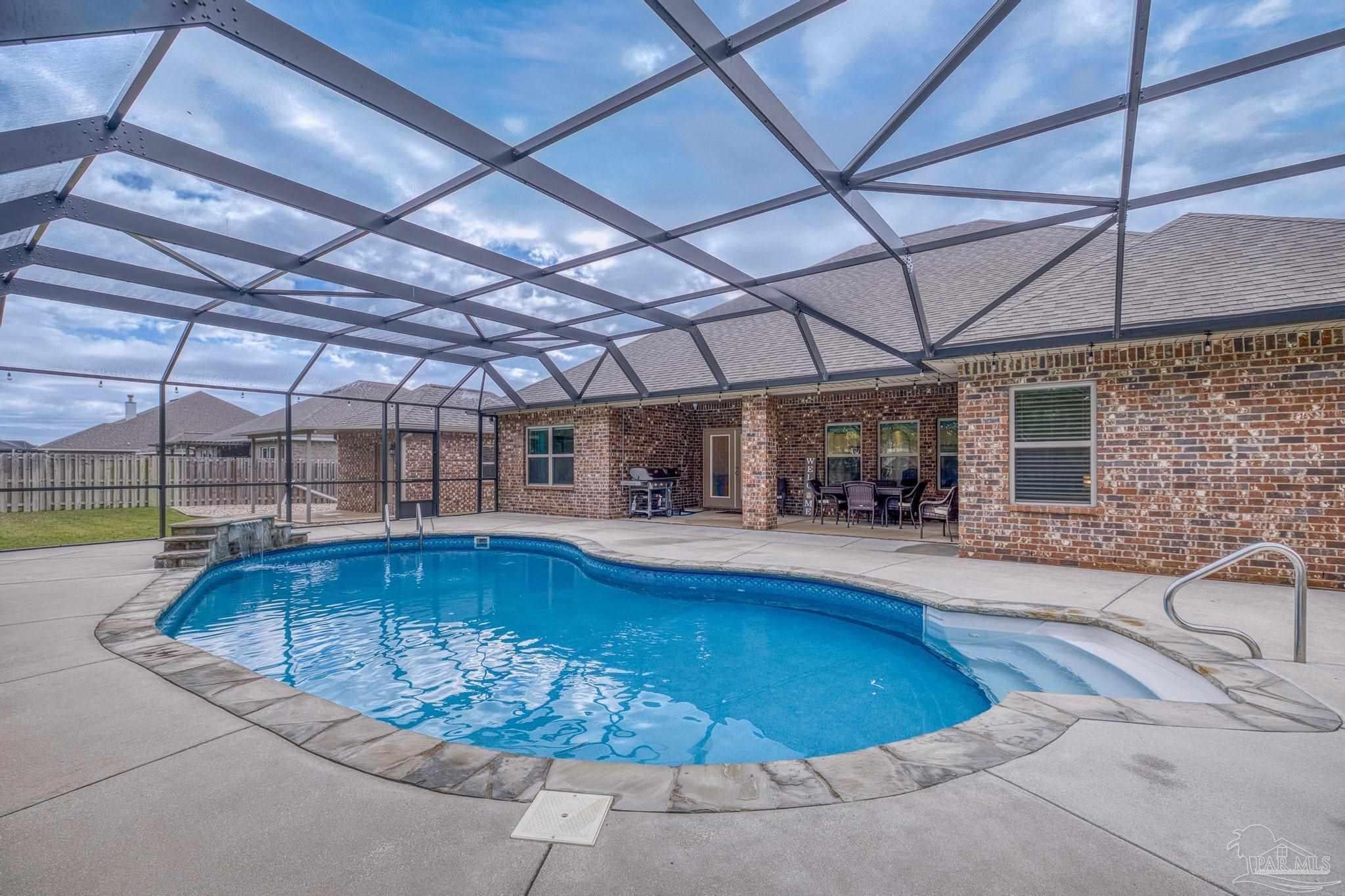 Your Family’s Dream Home Awaits! This stunning pool home offers the perfect blend of comfort, style, and functionality. Featuring a spacious split floor plan, this residence is ideal for both family living and entertaining guests. Step into a welcoming foyer, with a dedicated office/study/bonus room to your left and a formal dining room to your right; perfect for working from home and hosting memorable gatherings. Inside, you’ll find luxury vinyl plank throughout the home with tile in the wet areas! The heart of the home centers around a large family room with a soaring tray ceiling, creating an inviting space for family and friends. The chef’s kitchen features beautiful granite countertops, subway tile backsplash, stainless steel appliances, gas cooktop, large center island, walk-in pantry and a breakfast nook overlooking the pool. The spacious primary suite offers a private retreat with a luxurious ensuite bath that includes dual granite vanities, a large walk-in tile shower, a relaxing garden tub, and a generous walk-in closet. With comfort and privacy in mind, there are two additional bedrooms and a full bath on one side of the home, with another two additional bedrooms and full bath on the opposite side. Once you step outside, you will enjoy your very own backyard oasis! The screen-enclosed heated pool area offers the perfect spot to relax, play, and entertain. Whether you are hosting summer pool parties, enjoying morning coffee by the water, or unwinding after a long day, this refreshing retreat allows you to enjoy the outdoors in total comfort. The two-car attached garage is fully shelved with decked attic for storage. The 1-car detached garage is fully shelved. Additional upgrades include a whole house generator, an extended driveway for extra parking and a gas line hookup for outdoor grill. Beautifully updated and conveniently located, this move in ready home checks every box for modern family living. Call today to schedule your exclusive tour today!