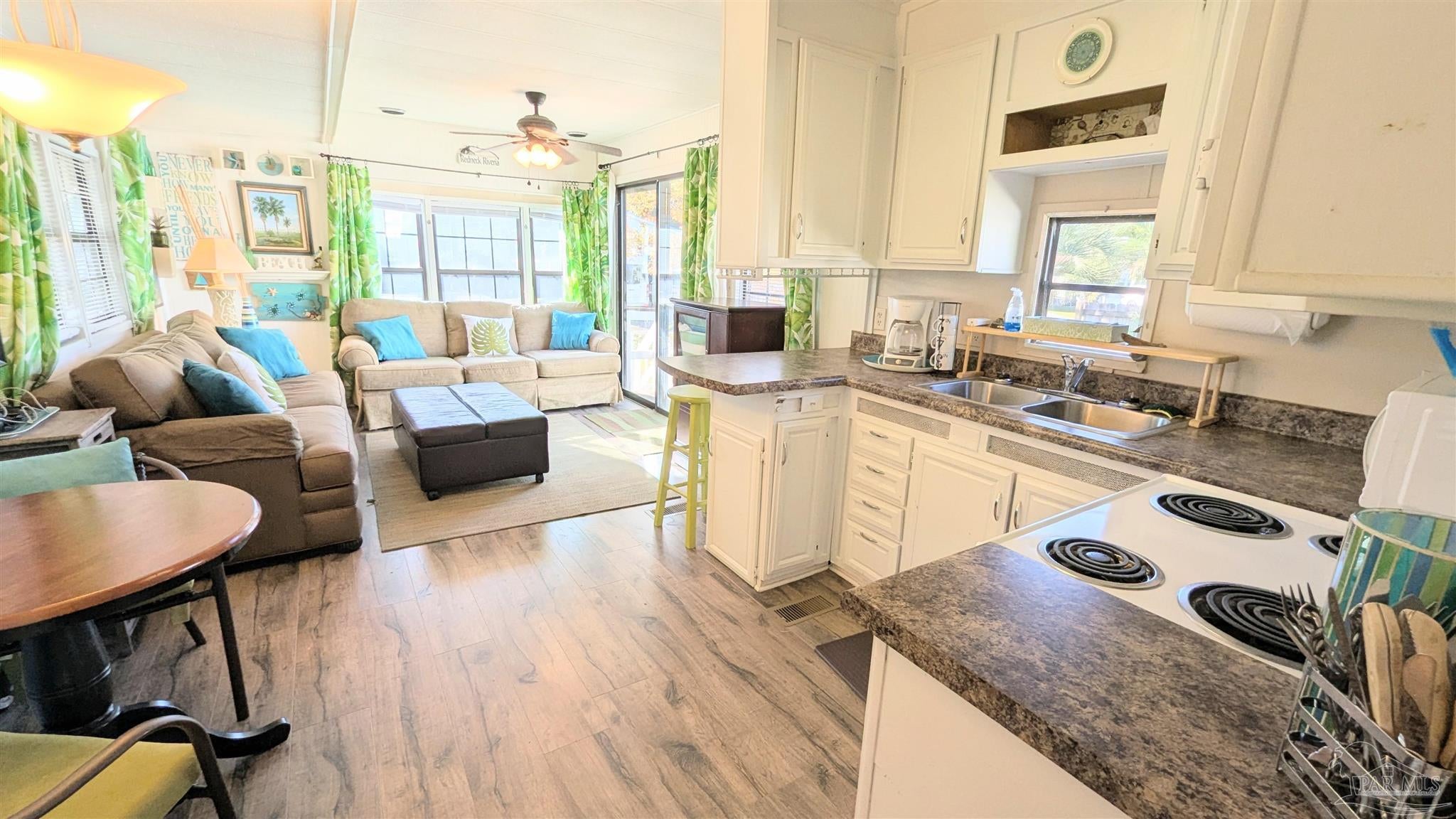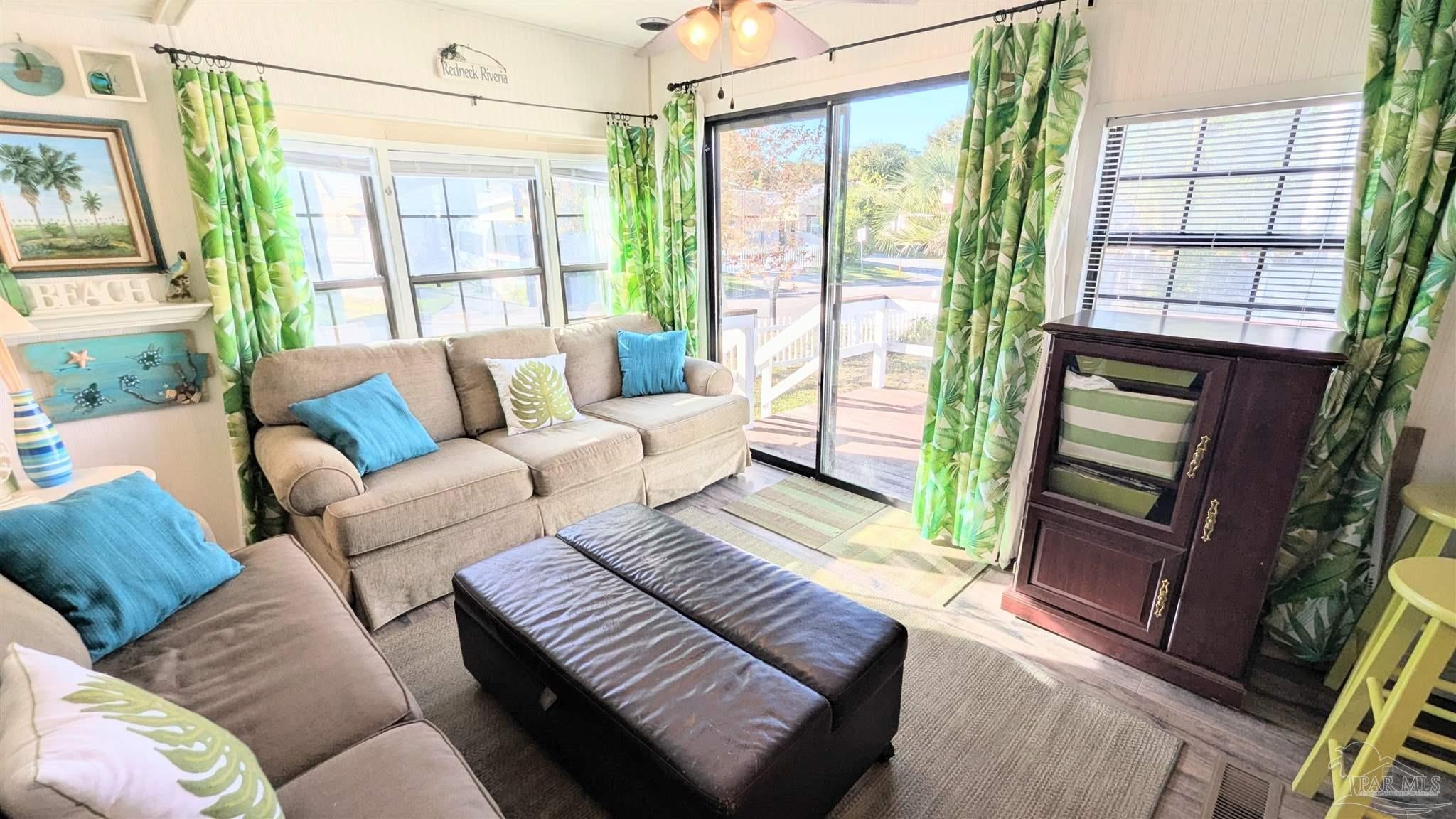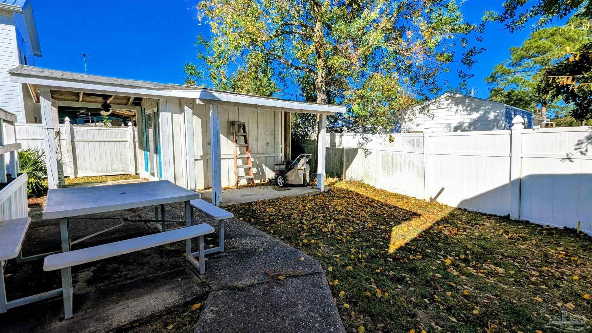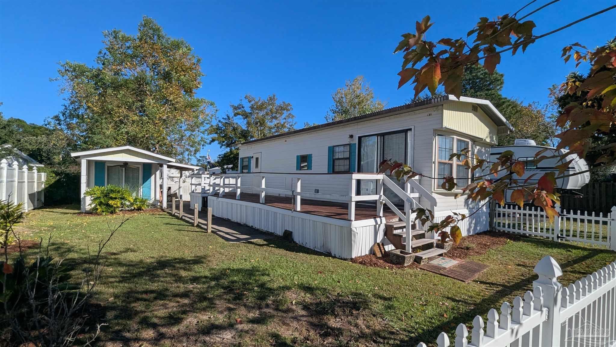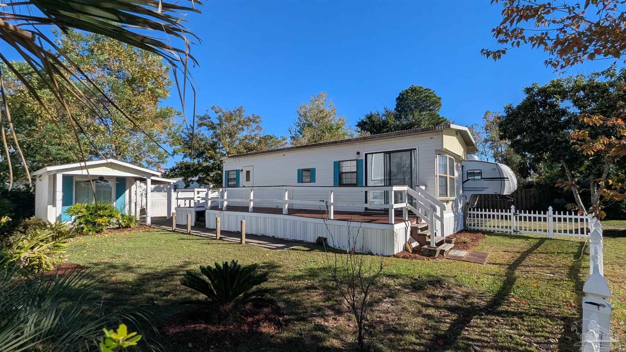 Welcome to your Enchanting Cozy Cottage nestled in the highly sought-after Spanish Cove subdivision! This delightful one-bedroom, one-bath home is great for those seeking a charming retreat! Step inside to discover inviting ceramic tile and laminate flooring that create a warm and welcoming atmosphere throughout. The modern walk-in shower adds a touch of luxury to your daily routine while the expansive side deck is an ideal space for entertaining guests. Spanning across two generous lots, this property offers ample space for you to roam and relish the beauty of the outdoors. The partially fenced yard provides both privacy and a secure area for pets and play. This property also boasts a versatile craft/game room, providing space for your creative endeavors, while a handy storage shed ensures you have all the room you need for tools and outdoor gear. With the convenience of a 50 amp power box, your RV can easily be accommodated. Also, If you like having activities right at your fingertips, the Spanish Cove Subdivision is for you! This golf cart community offers numerous amenities, including 24-hour security, an outdoor pool overlooking Perdido Bay (seasonally covered & heated), a clubhouse, bay access, a fishing pier, playground, beach area, & tennis/pickleball courts! Additionally, this home is just minutes away from a public boat launch, the stunning beaches of the Gulf of America, and a variety of shopping, dining, and amusement park options—everything the Gulf Coast has to offer! Don’t miss your chance to own this serene sanctuary in Spanish Cove- it's not just a home, it’s a lifestyle! Call & schedule your showing TODAY! Buyer to verify all information during due diligence.