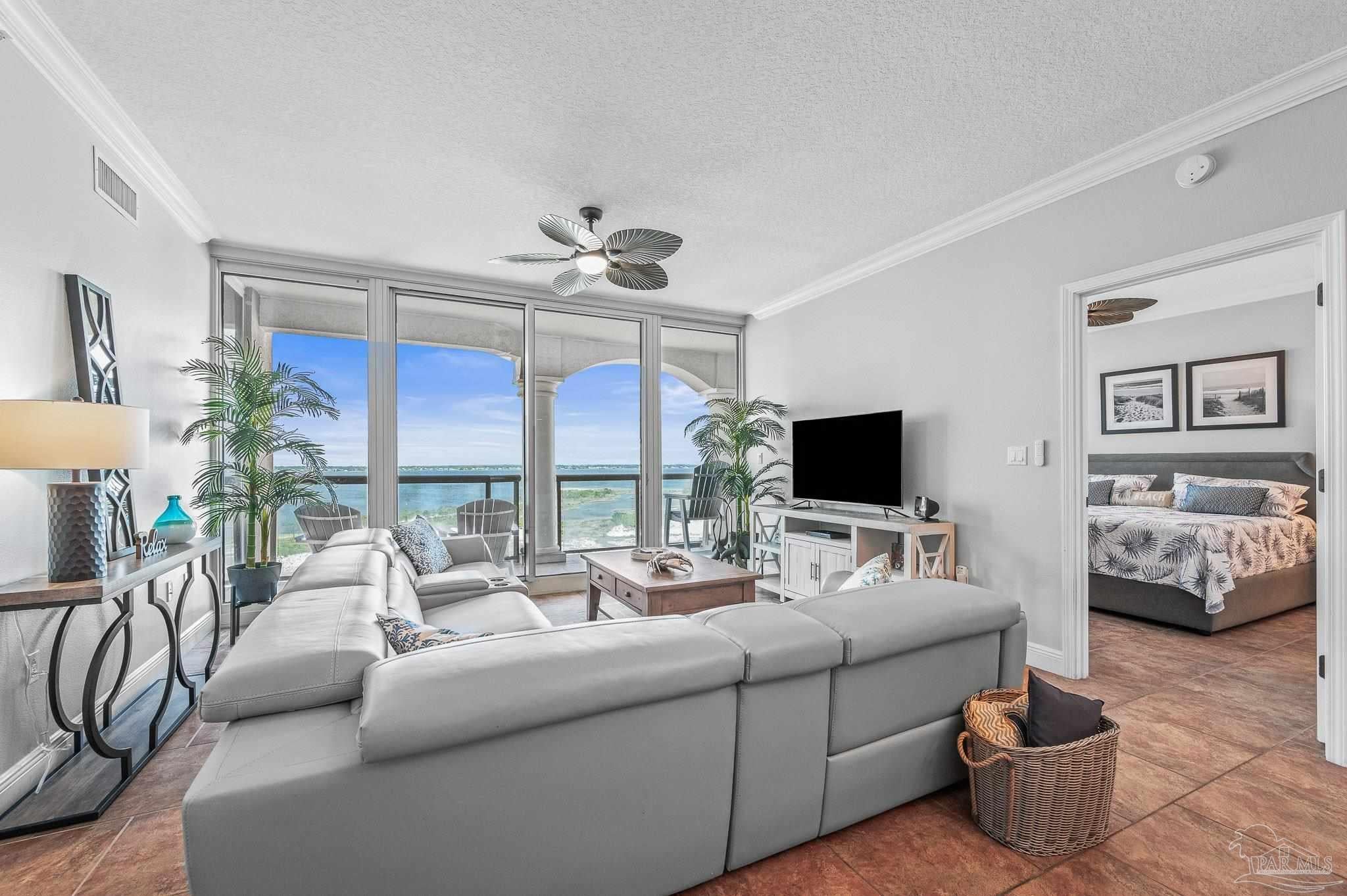 PORTOFINO ISLAND RESORT JUST STEPS FROM THE SUGAR WHITE SANDS OF PENSACOLA BEACH This condo is wonderfully appointed, meticulously maintained in Portofino tower 3. Sit on the back balcony and enjoy your morning coffee or afternoon drinks and enjoy the beautiful view of Santa Rosa Sound and the Gulf Islands National Seashore. This unit was not on a rental pool and was loved and cared for by the owners. The warm hues inside give it the beachy feel you'll come to love. There is fresh paint throughout and new appliances to include refrigerator, grill, microwave and dishwasher. This unit comes fully furnished. Portofino Island Resort offers the most complete amenities package anywhere on Pensacola Beach. Enjoy the resort lifestyle all year round. Everything is on site. The spa and lifestyle center features a state of the art fitness center, indoor spa with sauna, steam room, showers and lounge, poolside drinks and dining at the bar and grill, Starbucks, gift shop and sundries. In addition to the huge resort lagoon pools, each tower has it's own pool and hot tub. Play tennis on the rubico clay courts. With tons of resort activities and water sport rentals the fun is non-stop. This condo is ready for it's next owner or would make a great addition to a rental portfolio. It's turn-key, ready to be enjoyed immediately.
