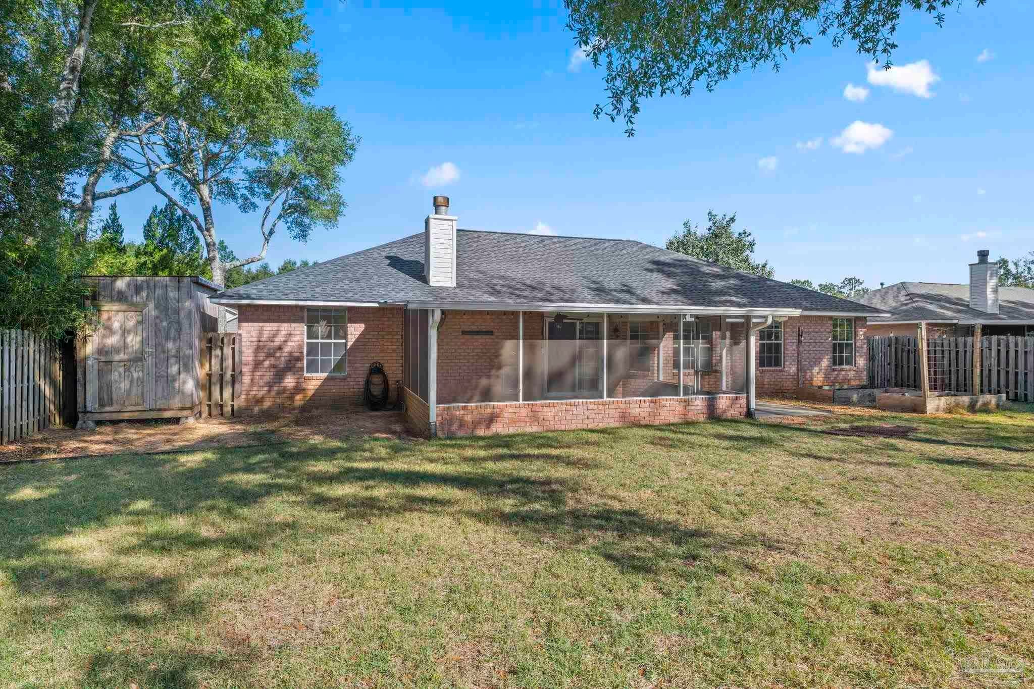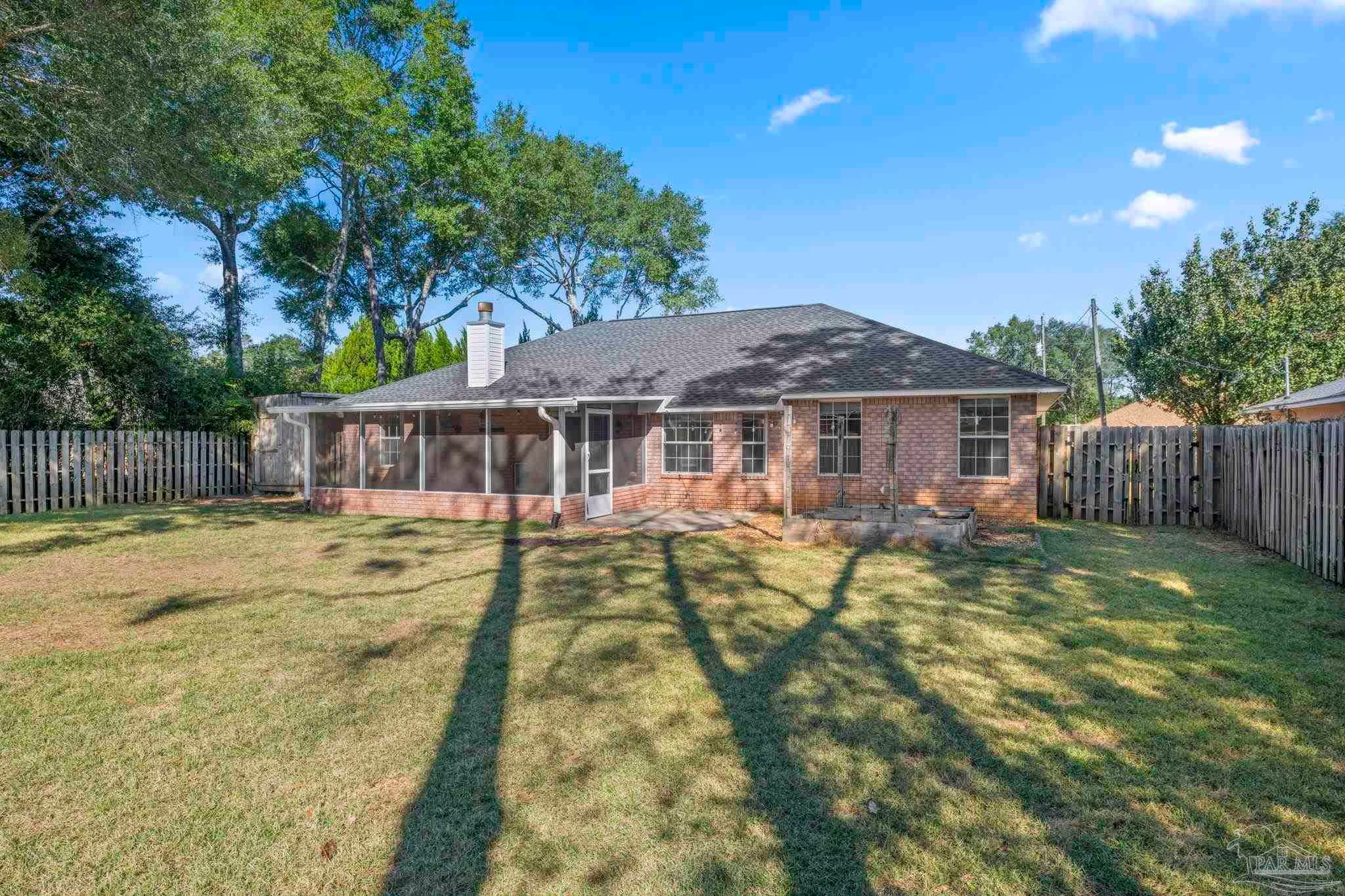 Welcome home! Conveniently located just minutes from shopping and NAS Whiting Field, this lovely all brick 4 bedroom, 2 bathroom home offers comfort, space, and thoughtful updates throughout. Step inside to find LVP flooring throughout—no carpet anywhere—creating a clean, modern look that’s easy to maintain. The home features a bright and inviting layout, with plenty of natural light, a formal dining room, and a cozy living room with a fireplace that provides the perfect gathering space. The spacious kitchen offers an abundance of cabinets, a large pantry, and a cozy breakfast nook. You’ll appreciate the updated deep kitchen sink, adding both function and style. The split floor plan allows for privacy, with generously sized bedrooms for everyone. The primary suite features two walk-in closets, a soaking tub, and a separate shower—your own retreat at the end of the day. Step outside and relax on the huge screened back porch, complete with charming string lights left by the sellers, creating the perfect warm and cozy ambiance for evenings spent outdoors. The 1/4-acre yard was resodded just a couple years ago and offers plenty of space to enjoy. Additional perks include a new roof and a 1-year home warranty for peace of mind. This home is truly move-in ready—come see it today!