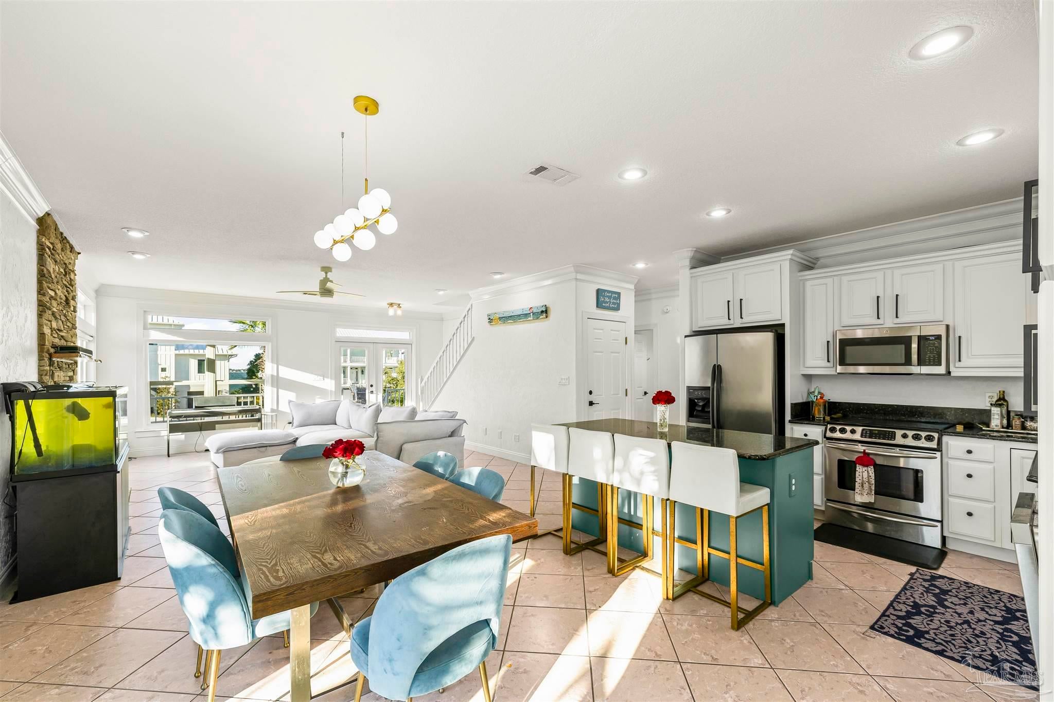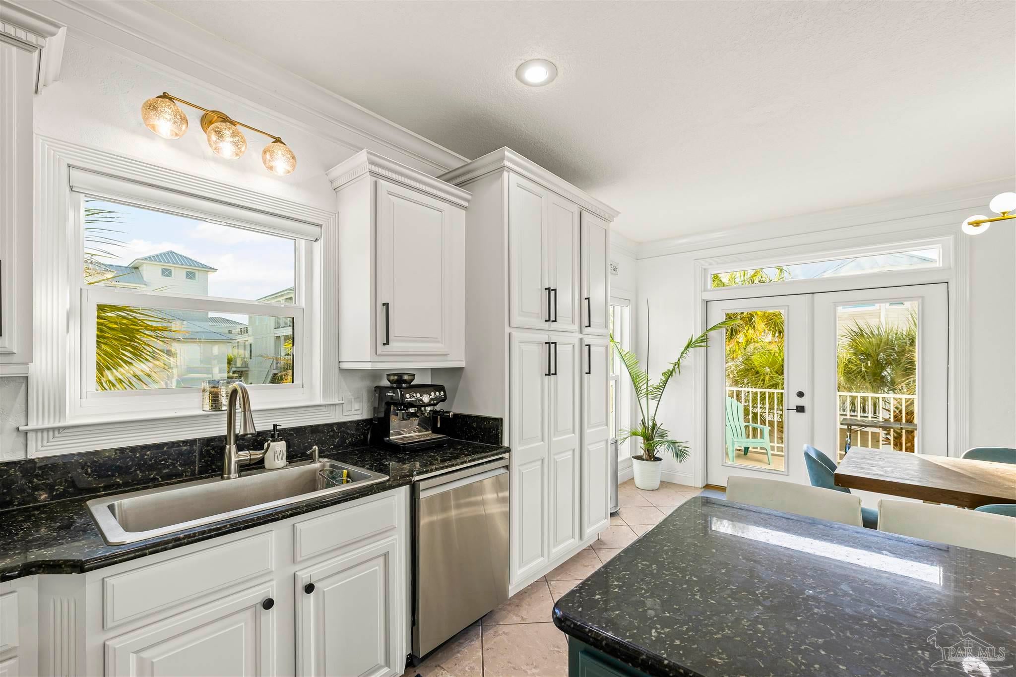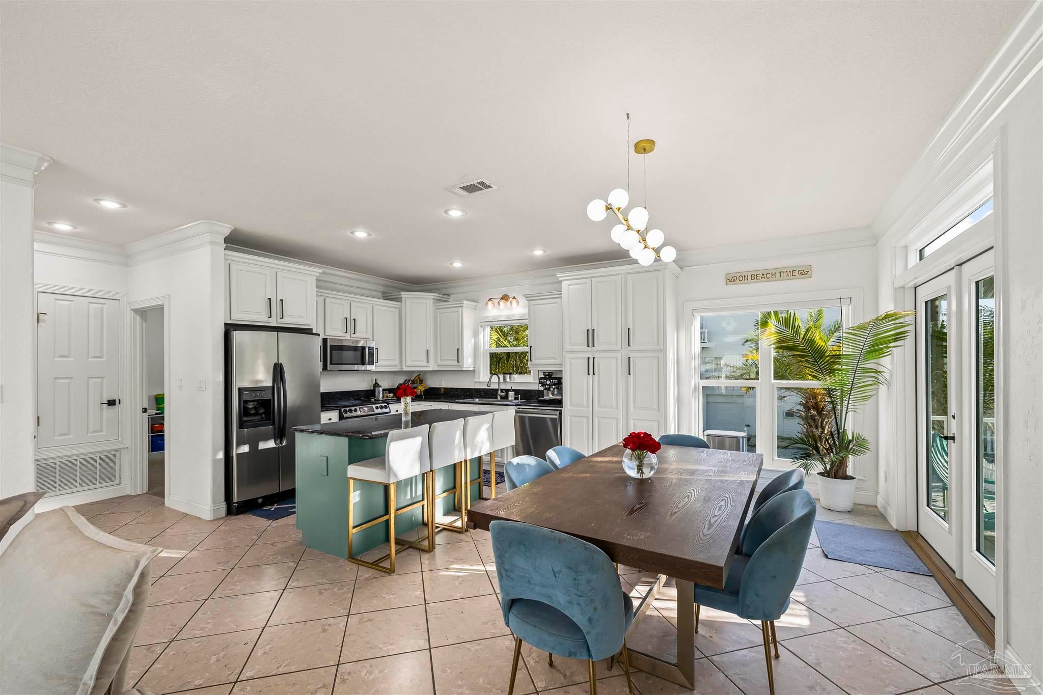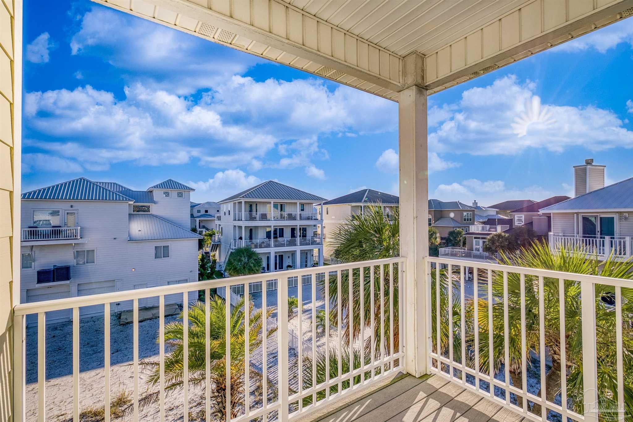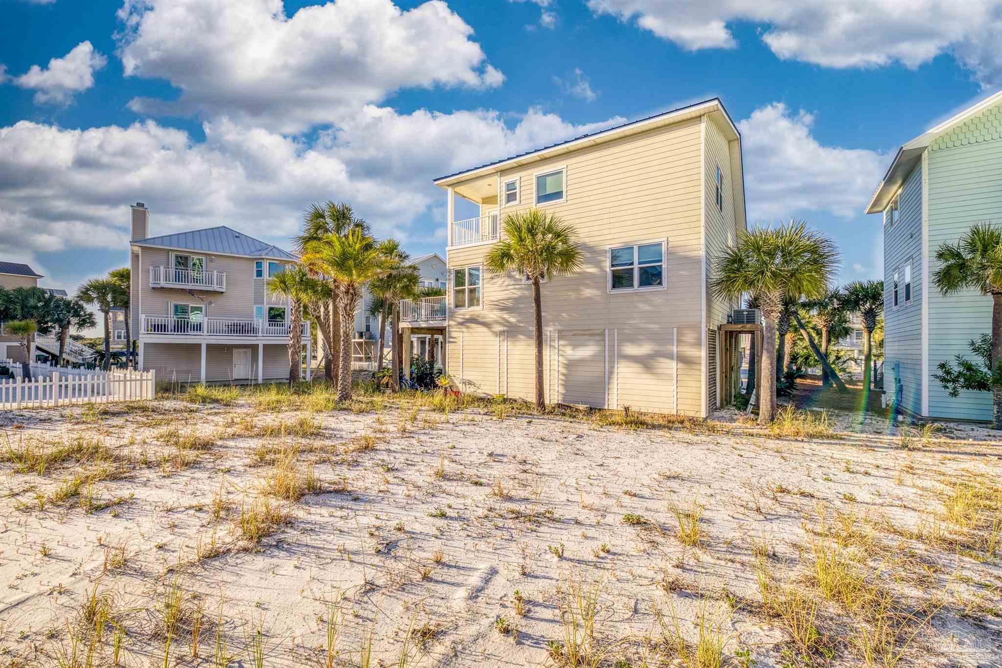 Beautifully updated and move-in ready, 22 Seashore Dr offers a rare opportunity to own a waterview retreat in the exclusive Seashore Village community of Pensacola Beach. Nestled on a quiet cul-de-sac just steps from the Gulf and Santa Rosa Sound, this 4-bedroom, 3-bathroom home blends coastal charm with thoughtful upgrades and panoramic water views. Built in 2002 and meticulously maintained, the home features hurricane-rated windows, a metal roof and a freshwater well for irrigation ensuring peace of mind and low-maintenance living. Step inside to an open-concept main level where the kitchen, dining, and living areas flow seamlessly, all oriented to capture stunning sound and Gulf views. The spacious master suite is a true sanctuary, complete with a private balcony, wet bar, and a spa-like bath with a jetted tub. The third-floor laundry room adds everyday convenience, while the oversized garage has plenty of room for a workshop, ample storage, and a bay large enough for boat and golf cart storage. Outdoor living is elevated with access to a private sound-side beach and dock, all exclusive to Seashore Village residents. Enjoy morning walks across the street to the unobstructed Gulf, or walk along the sound to nearby Portofino Island Resort amenities—optional membership includes five clay tennis courts, indoor and outdoor pools, a state-of-the-art gym, and on-site dining. With a no short-term rental policy, Seashore Village maintains a serene, residential atmosphere ideal for full-time living or a second home. Zoned for one of the nation’s top-rated Blue Ribbon schools, this home offers both luxury and lifestyle in one of Pensacola Beach’s most desirable enclaves.