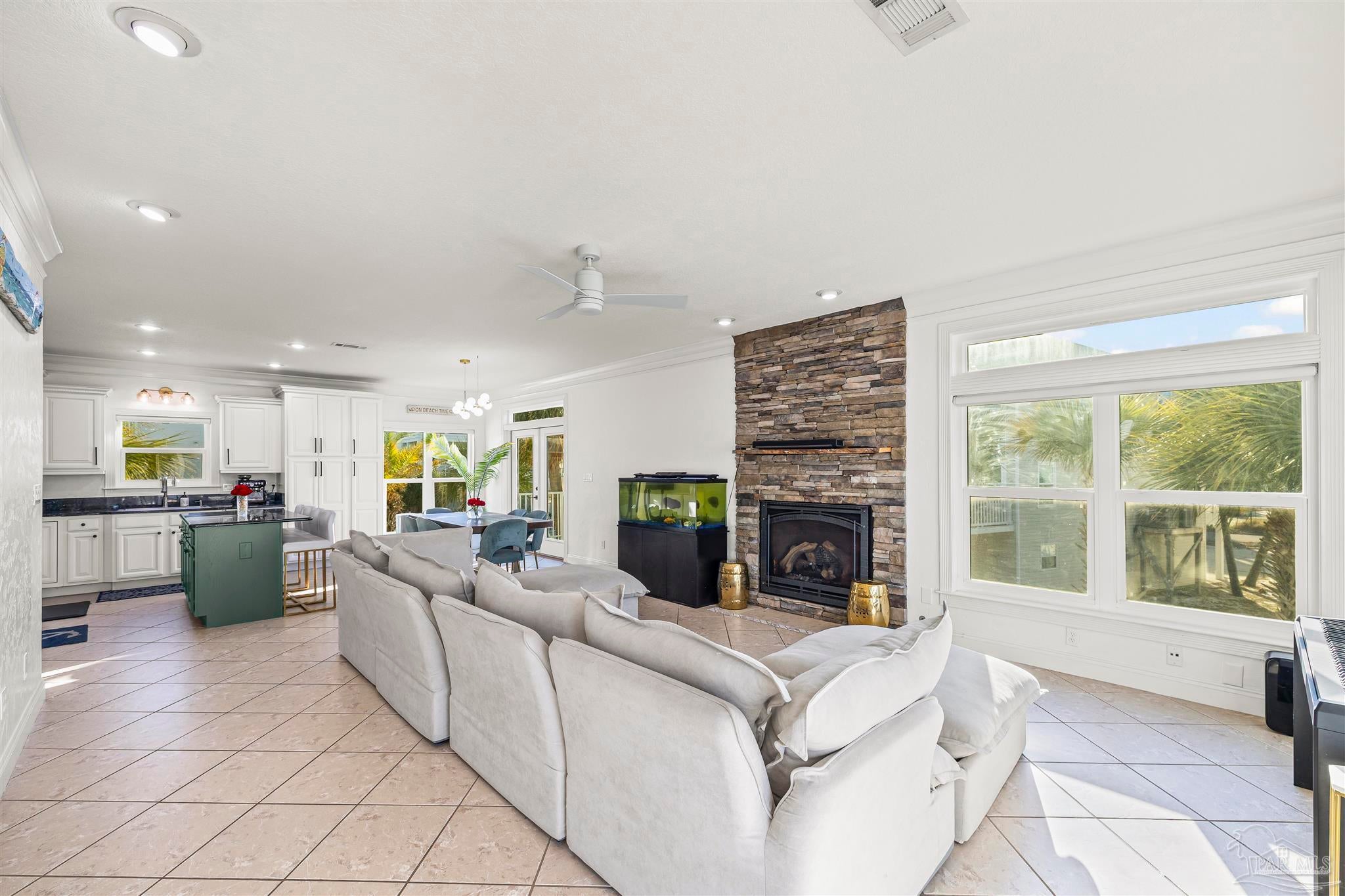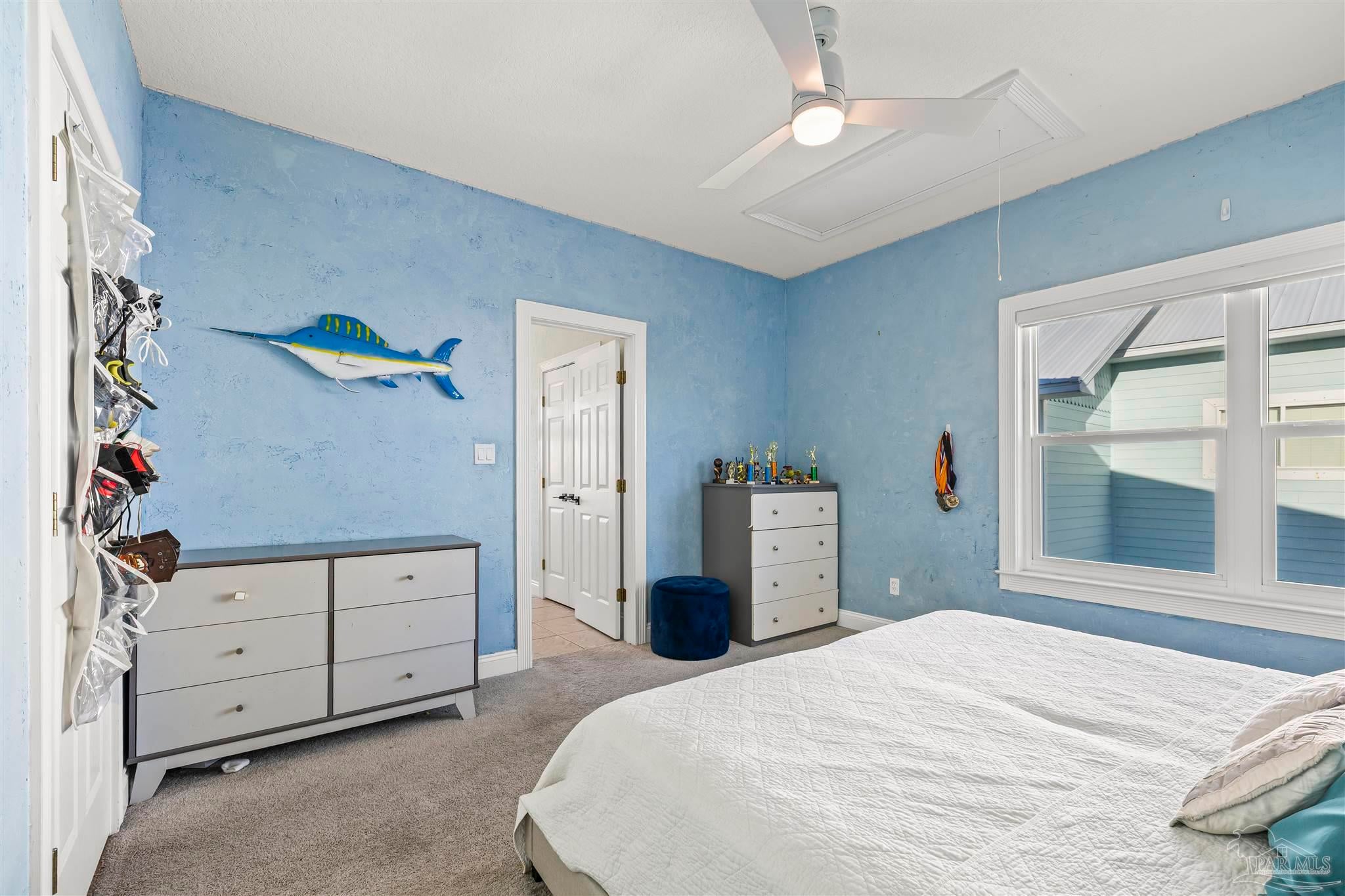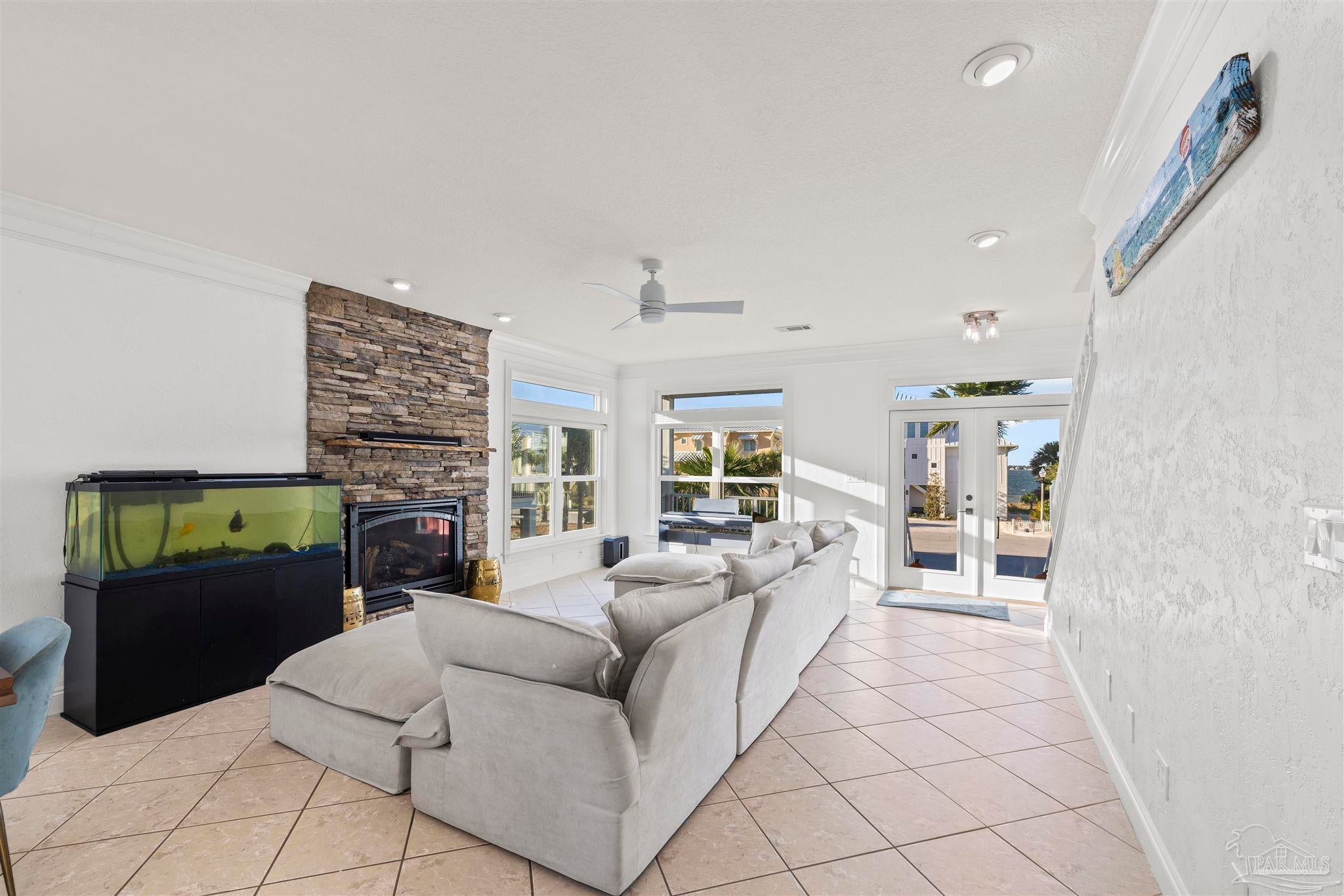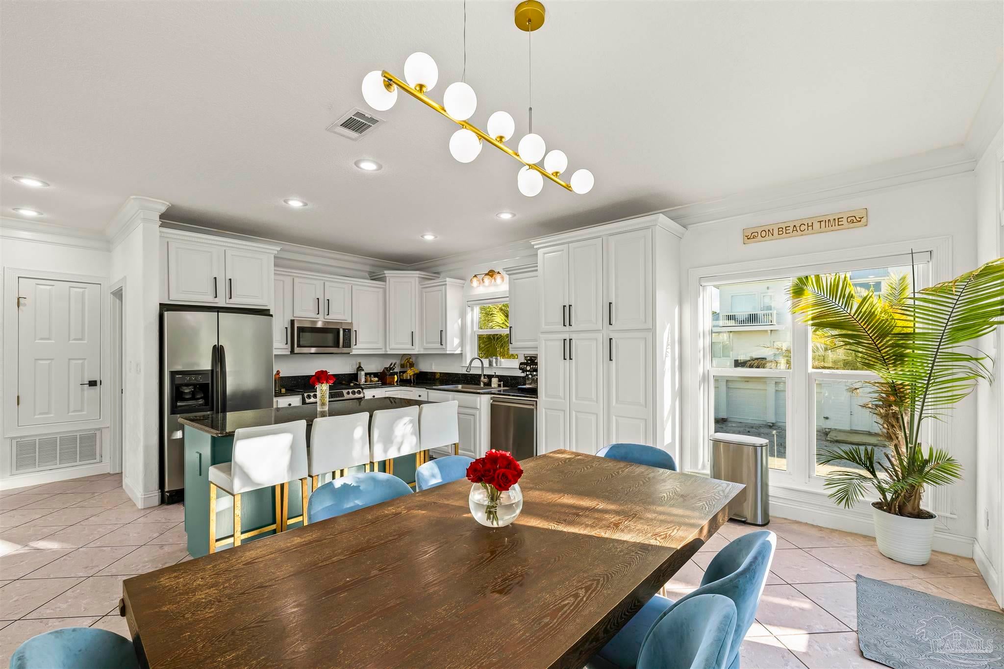 Beautifully updated and move-in ready, 22 Seashore Dr offers a rare opportunity to own a waterview retreat in the exclusive Seashore Village community of Pensacola Beach. Nestled on a quiet cul-de-sac just steps from the Gulf and Santa Rosa Sound, this 4-bedroom, 3-bathroom home blends coastal charm with thoughtful upgrades and panoramic water views. Built in 2002 and meticulously maintained, the home features hurricane-rated windows, a metal roof and a freshwater well for irrigation ensuring peace of mind and low-maintenance living. Step inside to an open-concept main level where the kitchen, dining, and living areas flow seamlessly, all oriented to capture stunning sound and Gulf views. The spacious master suite is a true sanctuary, complete with a private balcony, wet bar, and a spa-like bath with a jetted tub. The third-floor laundry room adds everyday convenience, while the oversized garage has plenty of room for a workshop, ample storage, and a bay large enough for boat and golf cart storage. Outdoor living is elevated with access to a private sound-side beach and dock, all exclusive to Seashore Village residents. Enjoy morning walks across the street to the unobstructed Gulf, or walk along the sound to nearby Portofino Island Resort amenities—optional membership includes five clay tennis courts, indoor and outdoor pools, a state-of-the-art gym, and on-site dining. With a no short-term rental policy, Seashore Village maintains a serene, residential atmosphere ideal for full-time living or a second home. Zoned for one of the nation’s top-rated Blue Ribbon schools, this home offers both luxury and lifestyle in one of Pensacola Beach’s most desirable enclaves.