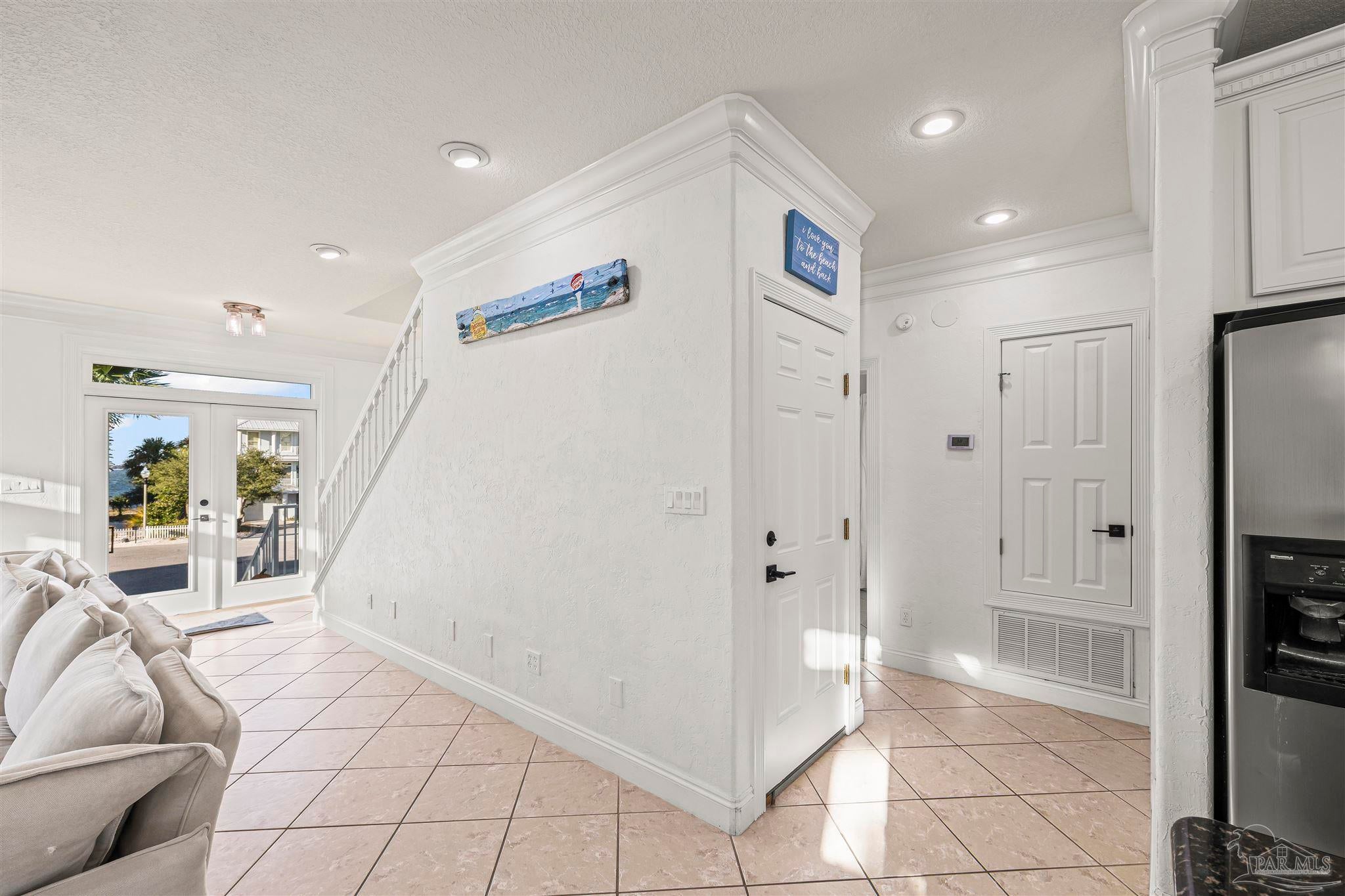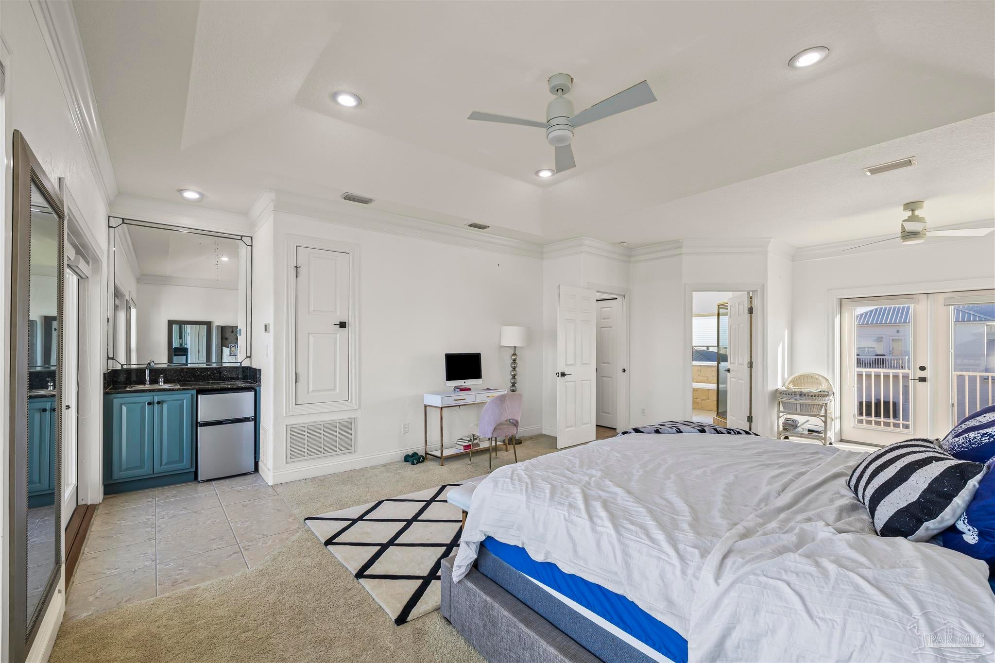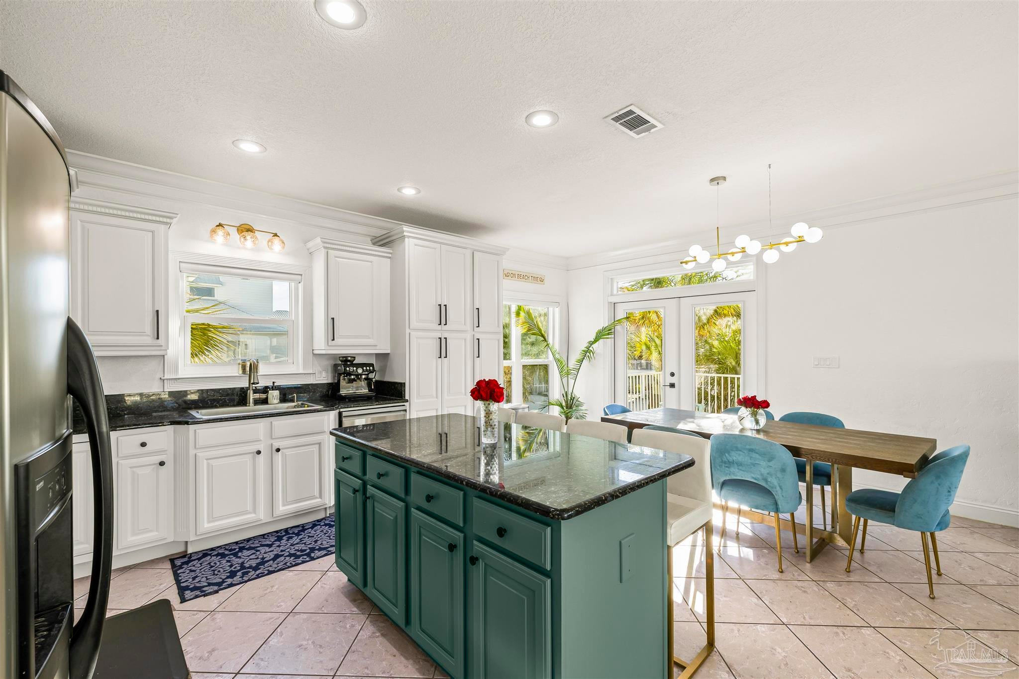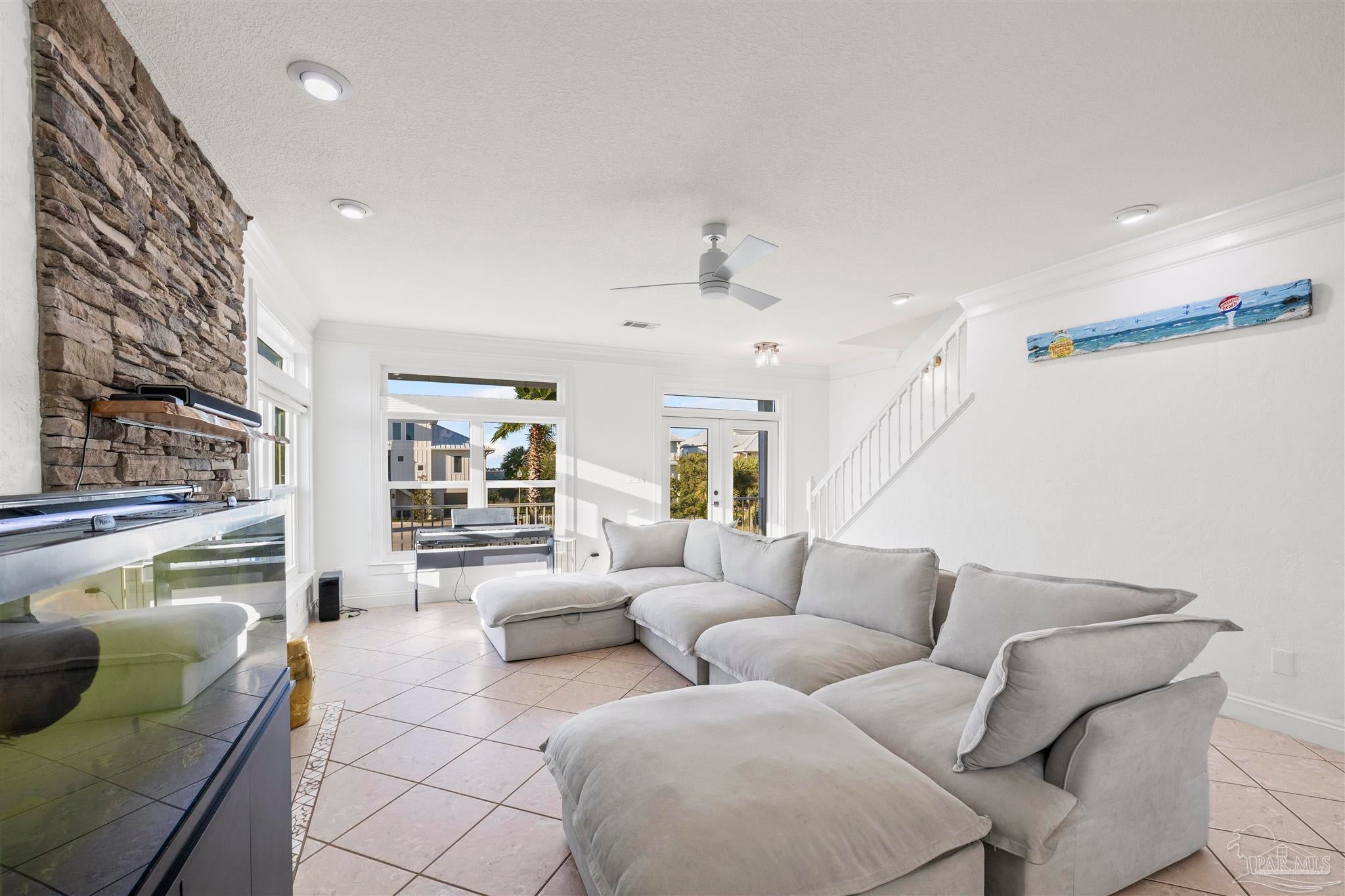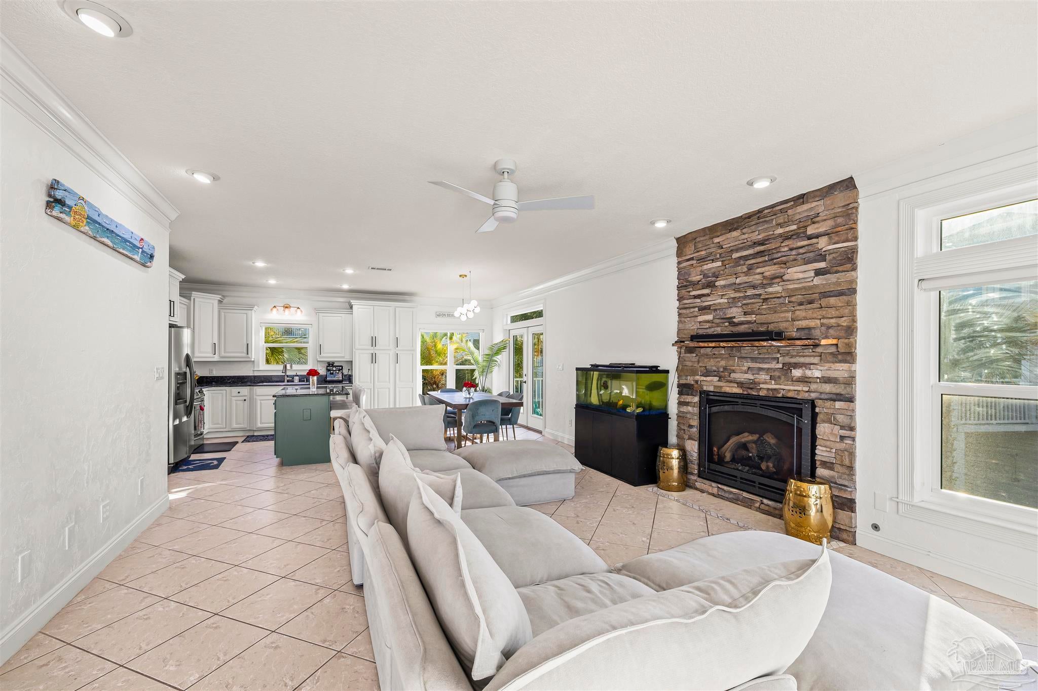 Beautifully updated and move-in ready, 22 Seashore Dr offers a rare opportunity to own a waterview retreat in the exclusive Seashore Village community of Pensacola Beach. Nestled on a quiet cul-de-sac just steps from the Gulf and Santa Rosa Sound, this 4-bedroom, 3-bathroom home blends coastal charm with thoughtful upgrades and panoramic water views. Built in 2002 and meticulously maintained, the home features hurricane-rated windows, a metal roof and a freshwater well for irrigation ensuring peace of mind and low-maintenance living. Step inside to an open-concept main level where the kitchen, dining, and living areas flow seamlessly, all oriented to capture stunning sound and Gulf views. The spacious master suite is a true sanctuary, complete with a private balcony, wet bar, and a spa-like bath with a jetted tub. The third-floor laundry room adds everyday convenience, while the oversized garage has plenty of room for a workshop, ample storage, and a bay large enough for boat and golf cart storage. Outdoor living is elevated with access to a private sound-side beach and dock, all exclusive to Seashore Village residents. Enjoy morning walks across the street to the unobstructed Gulf, or walk along the sound to nearby Portofino Island Resort amenities—optional membership includes five clay tennis courts, indoor and outdoor pools, a state-of-the-art gym, and on-site dining. With a no short-term rental policy, Seashore Village maintains a serene, residential atmosphere ideal for full-time living or a second home. Zoned for one of the nation’s top-rated Blue Ribbon schools, this home offers both luxury and lifestyle in one of Pensacola Beach’s most desirable enclaves.