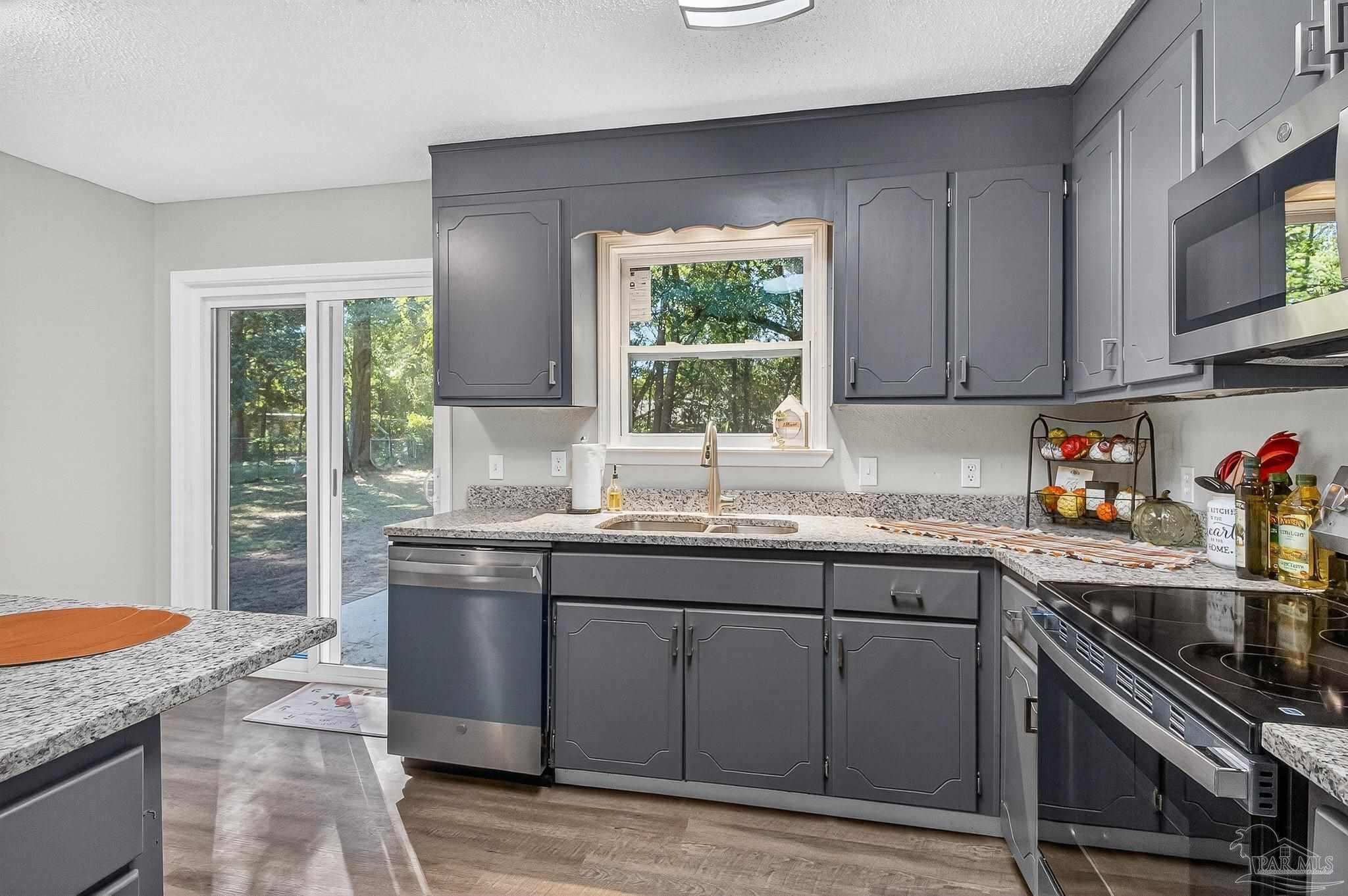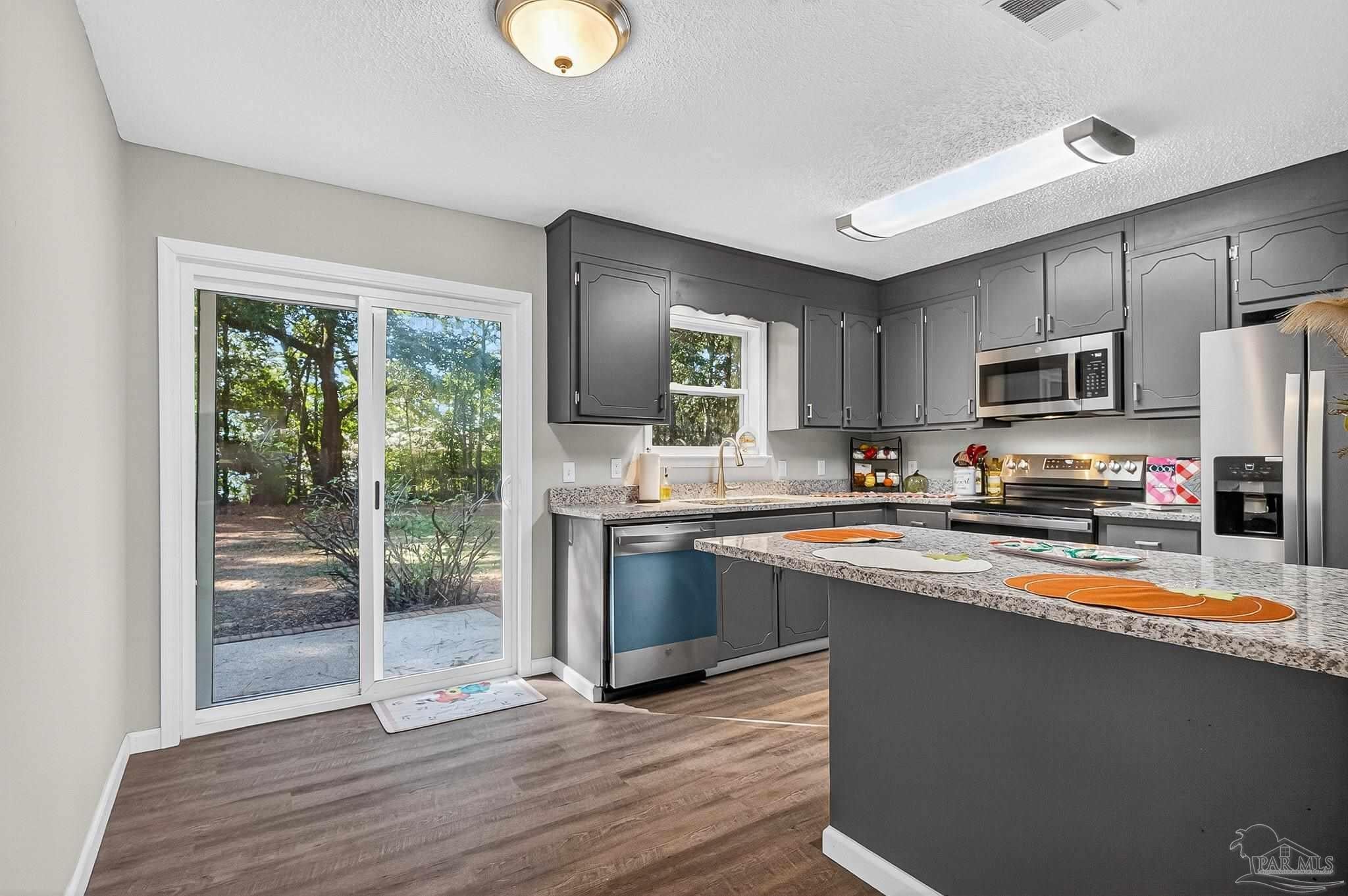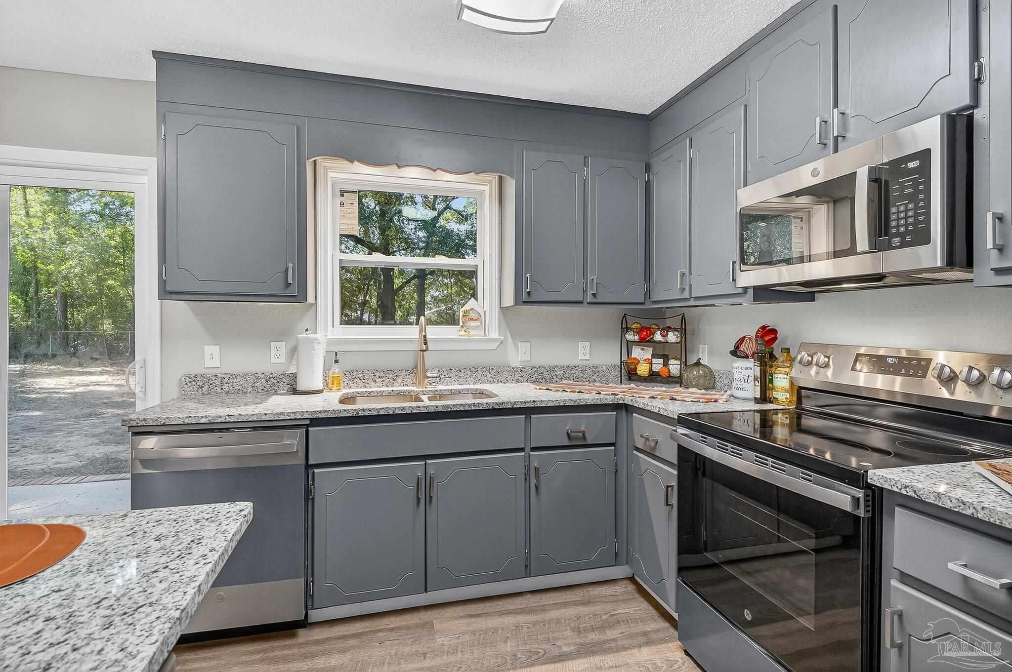 WELCOME HOME ....THIS Perfect Starter Home or Investment Opportunity! This beautifully renovated 3-bedroom, 2-bathroom home in Milton sits on a spacious 1/3 acre lot and is packed with many updates — all at an affordable price! Move-in ready and fully refreshed, this home features: Brand new vinyl plank flooring throughout, Fresh interior & exterior paint, New windows and doors, ceiling fans with light fixtures. Upgraded bathrooms with new vanities, fixtures, and toilets, Modern kitchen with granite countertops, breakfast bar, built-in microwave, electric cooktop stove/self cleaning oven, refrigerator, all stainless steel. (Nov 2025) New roof (Aug 2024) and HVAC system (Aug 2023) New hot water heater, garage door, and opener (Nov 2025) Sliding glass doors leading to a huge backyard — perfect for entertaining or relaxing. Enjoy peace of mind with smoke detectors installed front and back. Conveniently located to shopping, schools, and Whiting Field. This home truly has it all — comfort, character, and contemporary upgrades. Don’t miss your chance to own this turn-key gem — schedule your private showing today!