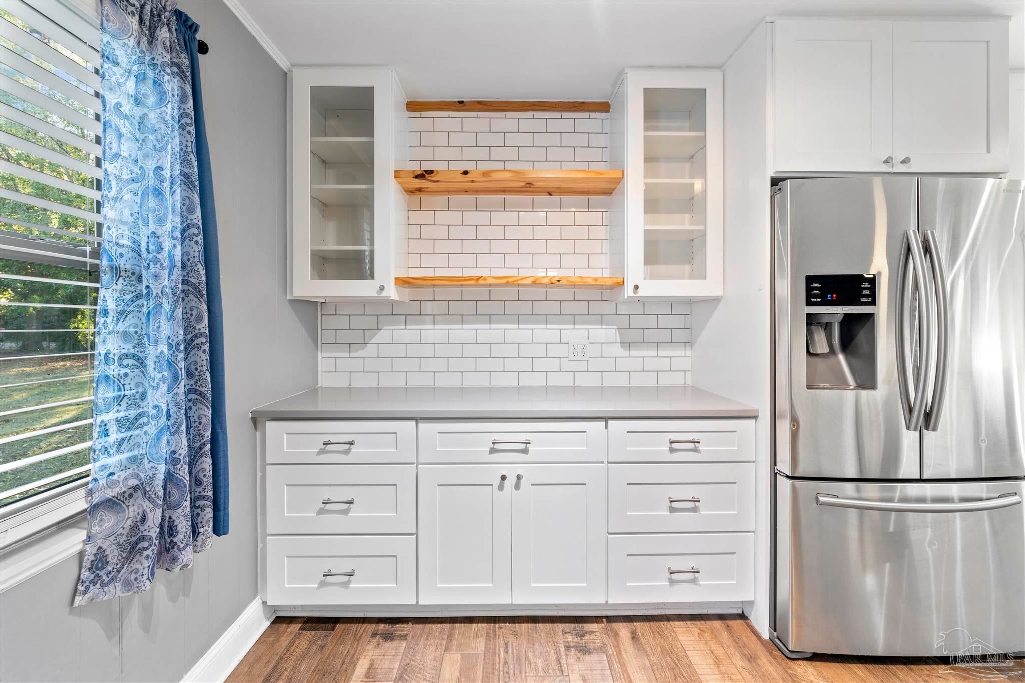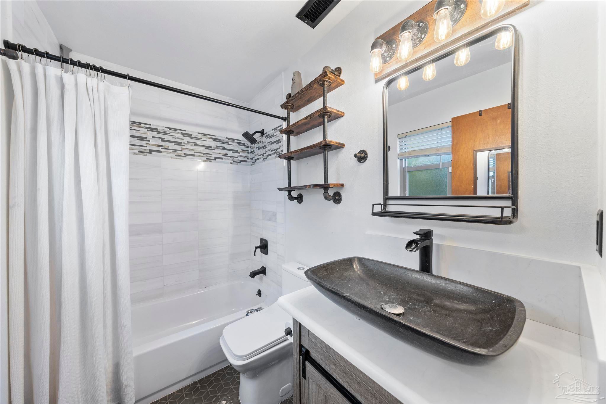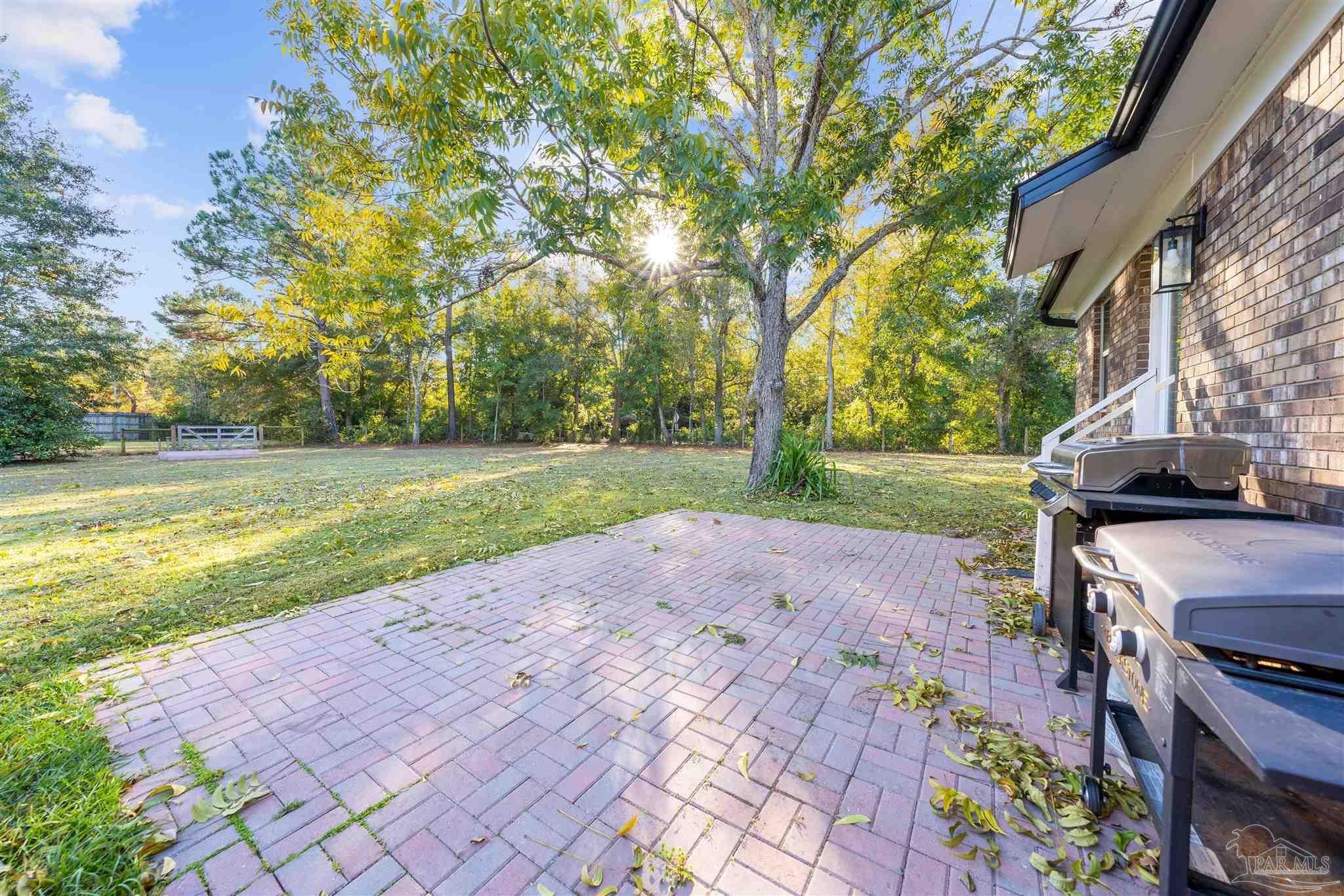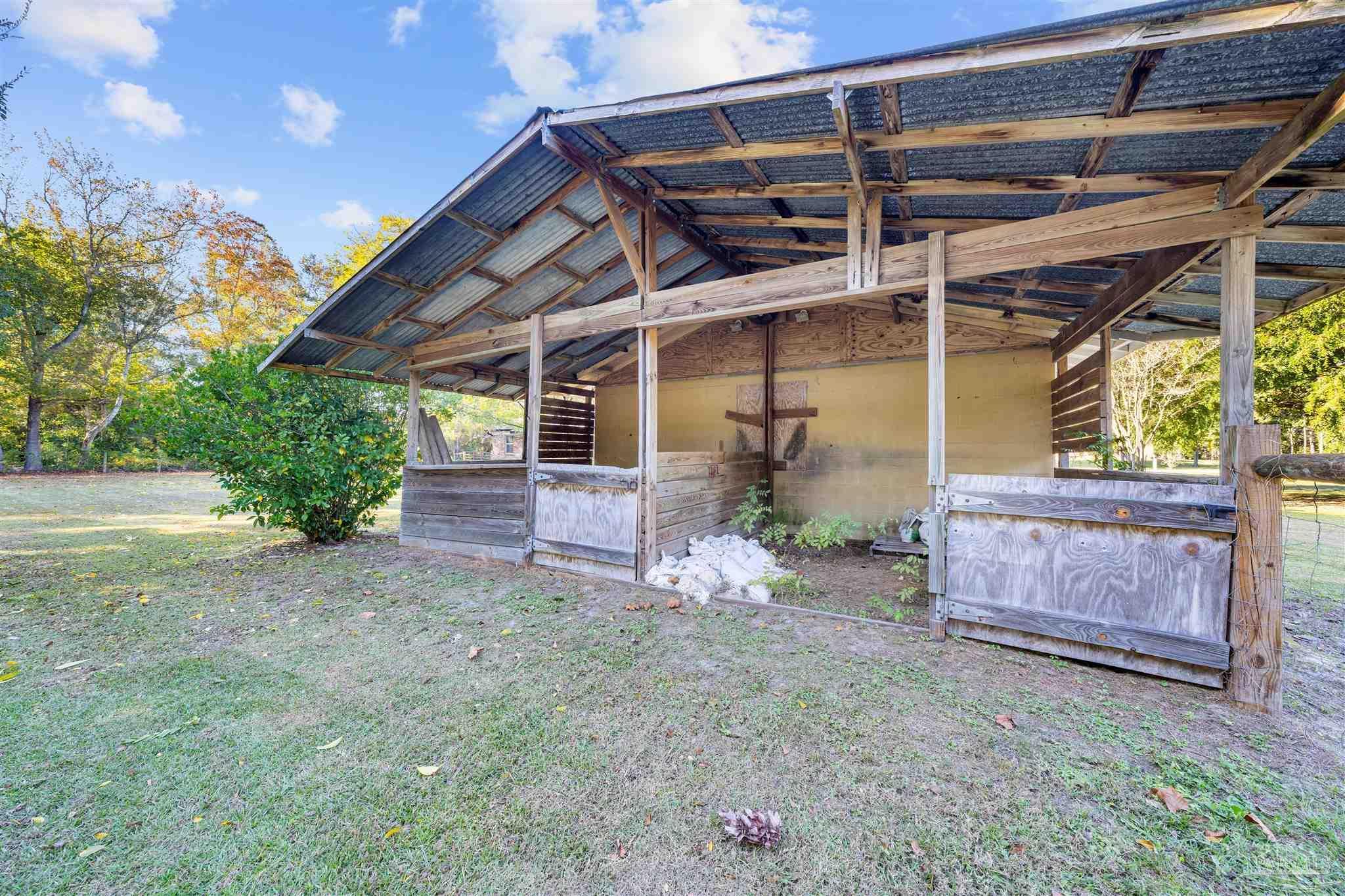 Set on a 1.16-acre corner lot, this beautifully updated ranch-style home offers the perfect blend of modern comfort and country living. The 3-bedroom, 2-bath layout features recent updates including fresh paint, new flooring, lighting, and a newer roof (2022). The kitchen is a true highlight with quartz countertops, custom cabinetry, a pine bar top, stainless steel appliances, and a wine cooler—perfect for cooking and entertaining. The spacious living area flows easily throughout the home, while the primary suite includes a fully renovated bath with marble tile and upscale finishes. Step outside and enjoy the space this property offers. The fenced-in backyard provides room for pets or outdoor gatherings, while the detached 2-car carport and oversized garage/workshop add ample space for storage, hobbies, or larger projects. Two horse stables are also located on-site, offering flexible use for equestrian needs or extra storage. Mature trees add shade and privacy, creating a peaceful outdoor setting with room to grow. Conveniently located less than two miles from the NAS Pensacola West Gate and under a mile from Walmart, Target, and Aldi, this property offers the best of both worlds—plenty of space with quick access to everyday conveniences. Plus, it’s just a short 15-minute drive to local beaches, making it easy to enjoy the coastal lifestyle Pensacola is known for. Whether you’re looking for room to spread out or a move-in ready home close to everything, this one checks all the boxes.