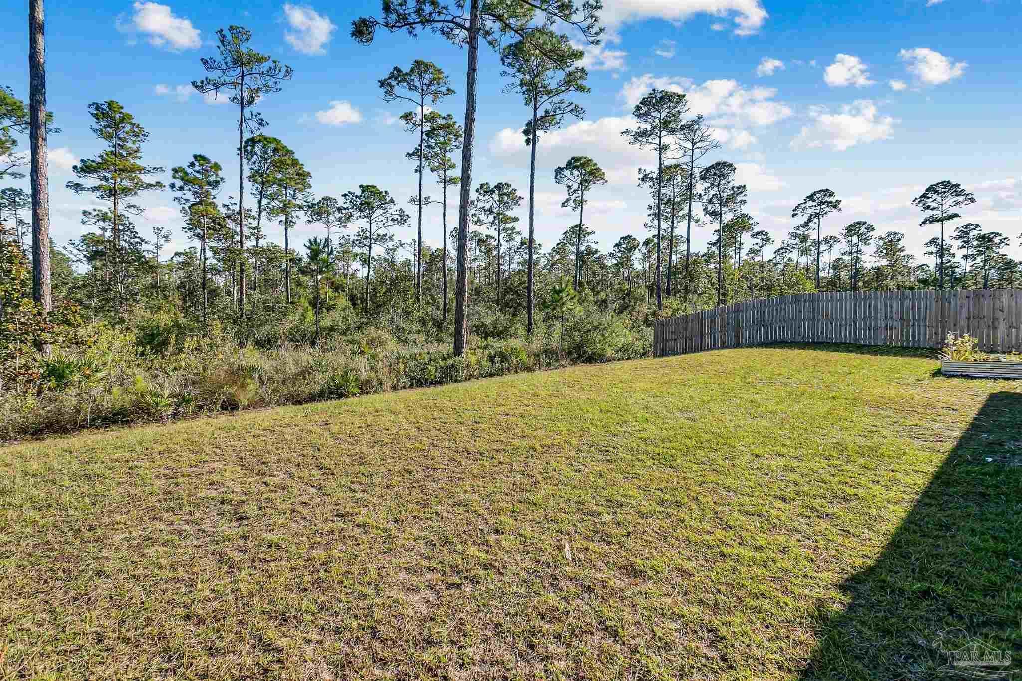 Welcome to Forest Bay Estates! Highly desirable East Gulf Breeze location with a beautiful community pool. The Destin floor plan features 4 bedrooms, 3 baths, a covered patio, and a 3-car Epoxy coated garage floor—3rd bay perfect for a small car or golf cart. As you walk in the front door, you will notice the added front storm door. The laundry room has additional cabinetry for more storage. Enjoy an open-concept layout with a large breakfast nook featuring a built-in buffet with extra cabinets and a separate dining area ideal for entertaining. The kitchen offers granite countertops, stainless steel appliances, a smooth-top range, quiet dishwasher, large island bar, and a corner pantry with wood shelving. The primary suite includes a spacious walk-in closet with double rods with wood shelves, additional bathroom cabinets, double granite vanity, garden tub, and separate shower. A new screened-in patio with added fan and light enhances your outdoor living space with peaceful views of nature. Conveniently located near Tiger Point’s championship golf course and the Arnold Palmer–designed 18-hole course. Close to East Bay and Santa Rosa Sound with public boat ramps within 5–10 miles.