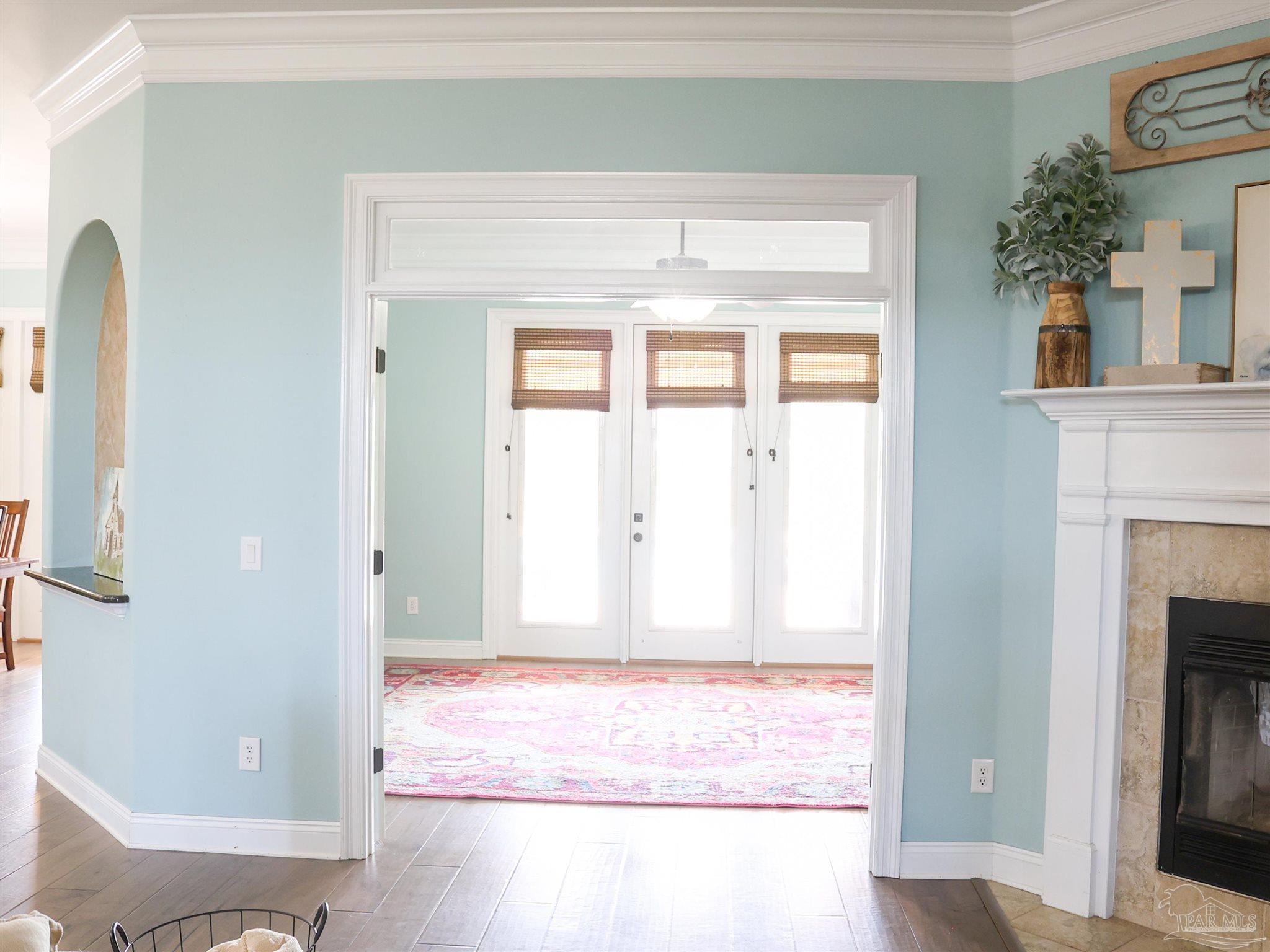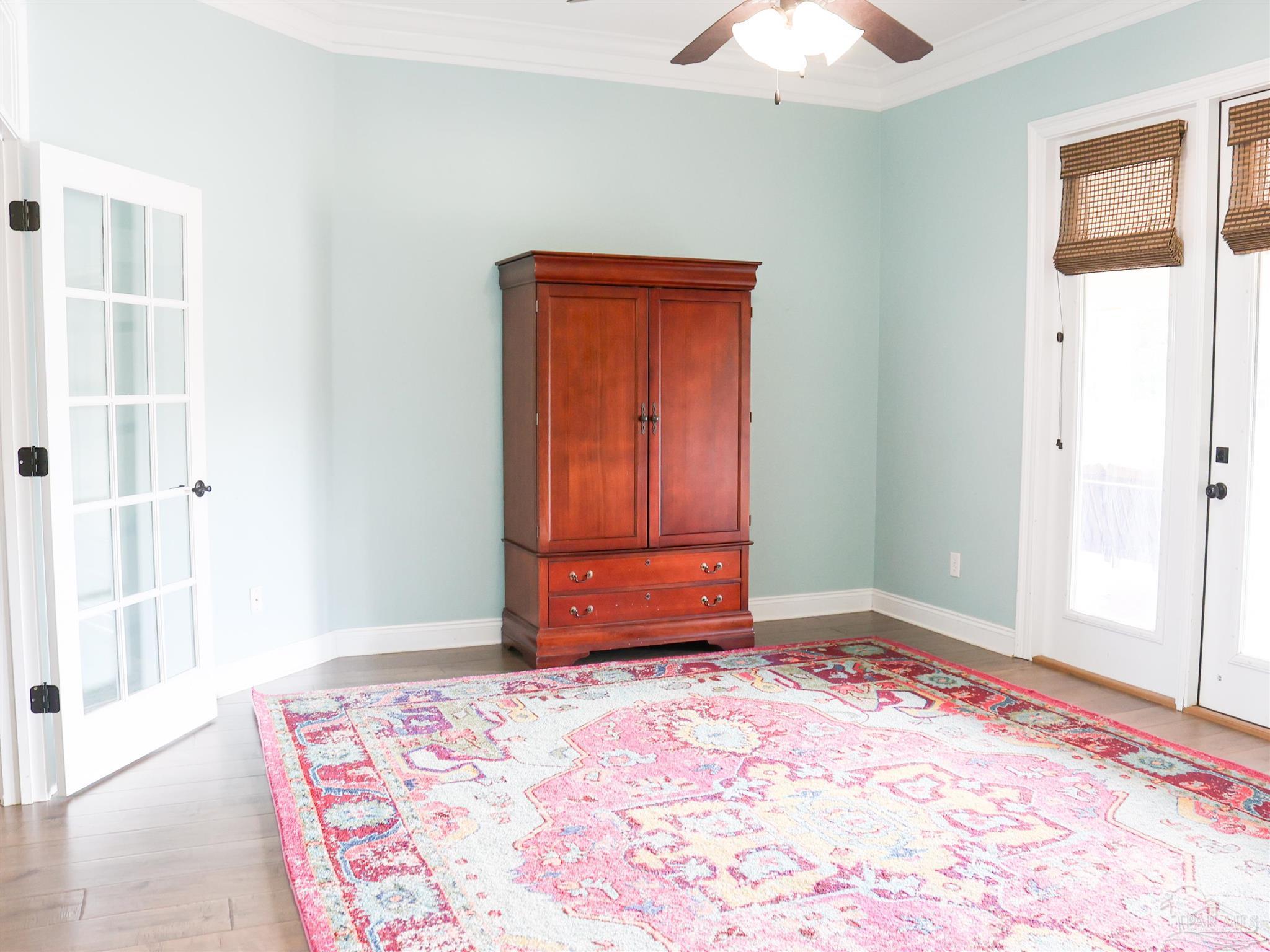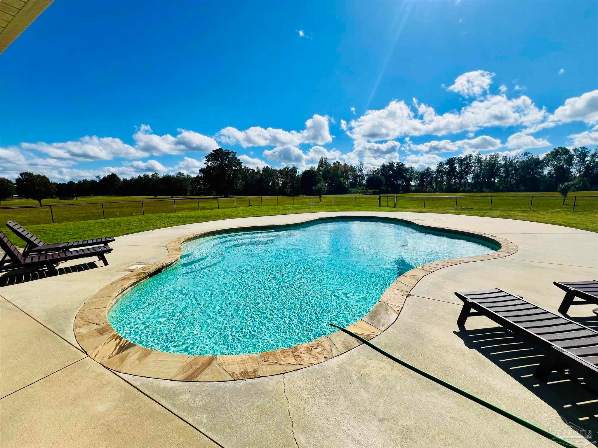 Welcome Home— a Southern retreat nestled on just over 4 private acres in the prestigious, gated community of Nobles Plantation. This 4-bedroom, 3.5-bath home offers the perfect blend of sophistication, comfort, and leisure outdoor living. Step inside to find hardwood floors and high ceilings throughout the main living areas, a formal dining room, and a spacious study perfect for working from home. The split floor plan offers privacy and flexibility, with an inviting open-concept kitchen with double ovens for the baker's dream and huge breakfast nook with custom cabinetry, that overlook the expansive backyard. The primary suite is a true owner’s retreat featuring a flex space that can serve as a nursery, fitness room, or private office with views of and direct access to the backyard and pool. The spa-inspired master bath includes separate vanities, a jacuzzi tub, walk-in shower, and his-and-hers closets. Two guest bedrooms share a convenient hallway bath, while a fourth bedroom functions perfectly as a mother-in-law suite or for extended stays, complete with its own living area and private bath. That living area is off of the main living room through French doors and could also be used as a play room, sitting area, or fitness room that has direct access to the back porch and pool. The large laundry room with folding table and half bath are conveniently located at the three car garage entrance. Enjoy year-round outdoor living on the large covered back porch with warm wood ceilings, overlooking a gunite pool with tanning shelf and a sprawling backyard ready for your personal touch—ideal for entertaining or peaceful country living. Among other estate homes in Nobles Plantation, this property offers the perfect blend of craftsmanship, comfort, and privacy, all in an unbeatable Pace location just minutes from top rated schools, shopping, and dining.