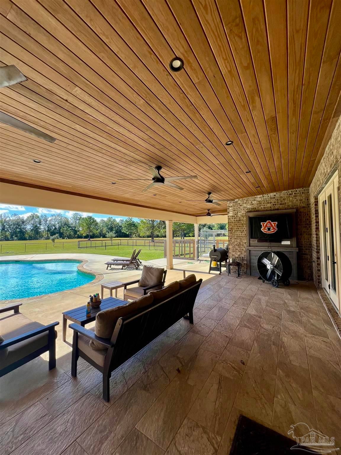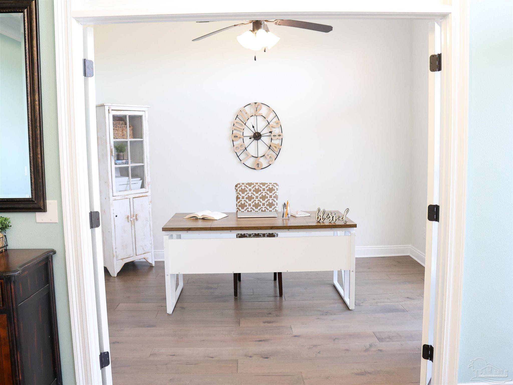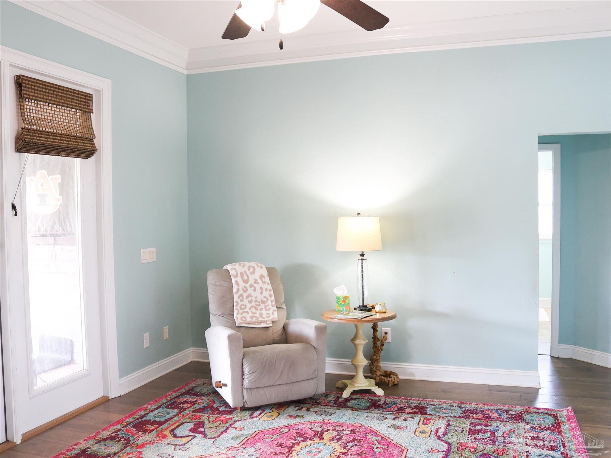 Welcome Home— a Southern retreat nestled on just over 4 private acres in the prestigious, gated community of Nobles Plantation. This 4-bedroom, 3.5-bath home offers the perfect blend of sophistication, comfort, and leisure outdoor living. Step inside to find hardwood floors and high ceilings throughout the main living areas, a formal dining room, and a spacious study perfect for working from home. The split floor plan offers privacy and flexibility, with an inviting open-concept kitchen with double ovens for the baker's dream and huge breakfast nook with custom cabinetry, that overlook the expansive backyard. The primary suite is a true owner’s retreat featuring a flex space that can serve as a nursery, fitness room, or private office with views of and direct access to the backyard and pool. The spa-inspired master bath includes separate vanities, a jacuzzi tub, walk-in shower, and his-and-hers closets. Two guest bedrooms share a convenient hallway bath, while a fourth bedroom functions perfectly as a mother-in-law suite or for extended stays, complete with its own living area and private bath. That living area is off of the main living room through French doors and could also be used as a play room, sitting area, or fitness room that has direct access to the back porch and pool. The large laundry room with folding table and half bath are conveniently located at the three car garage entrance. Enjoy year-round outdoor living on the large covered back porch with warm wood ceilings, overlooking a gunite pool with tanning shelf and a sprawling backyard ready for your personal touch—ideal for entertaining or peaceful country living. Among other estate homes in Nobles Plantation, this property offers the perfect blend of craftsmanship, comfort, and privacy, all in an unbeatable Pace location just minutes from top rated schools, shopping, and dining.