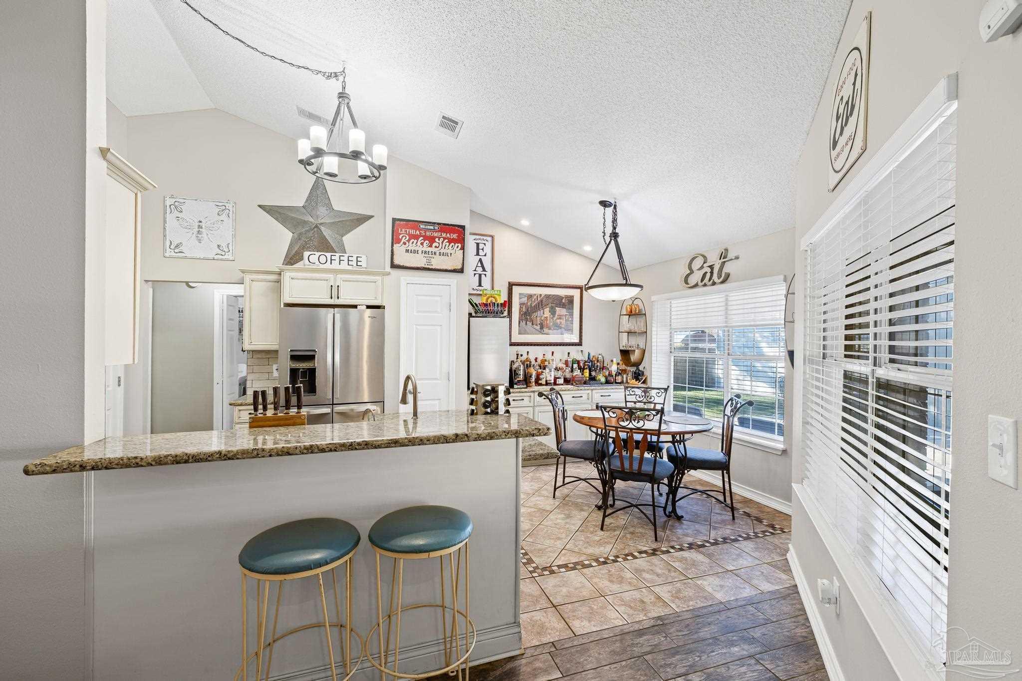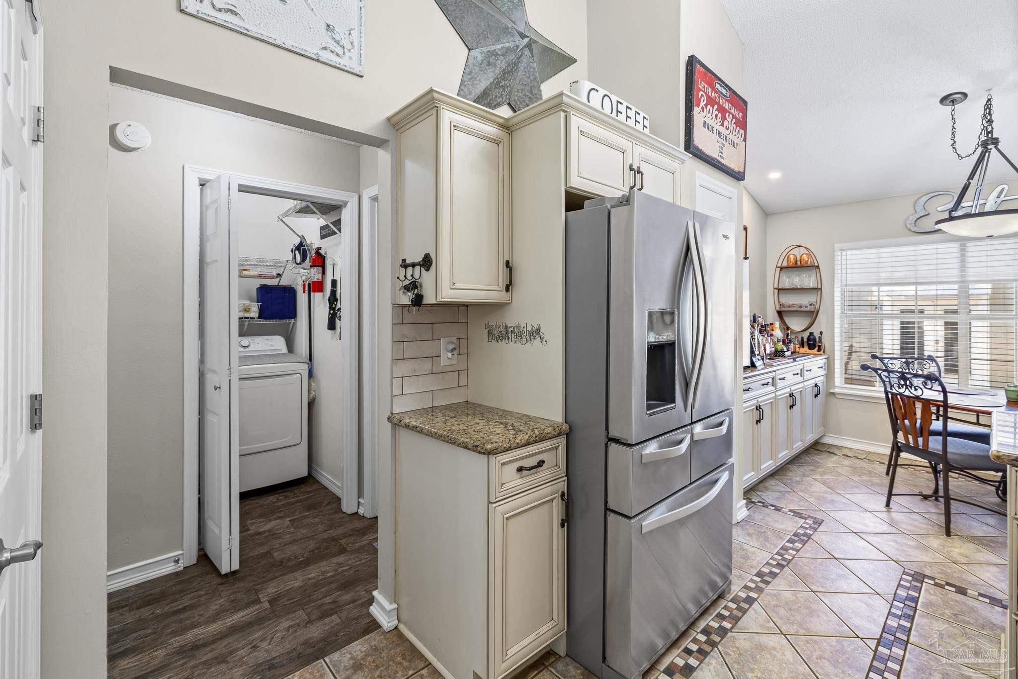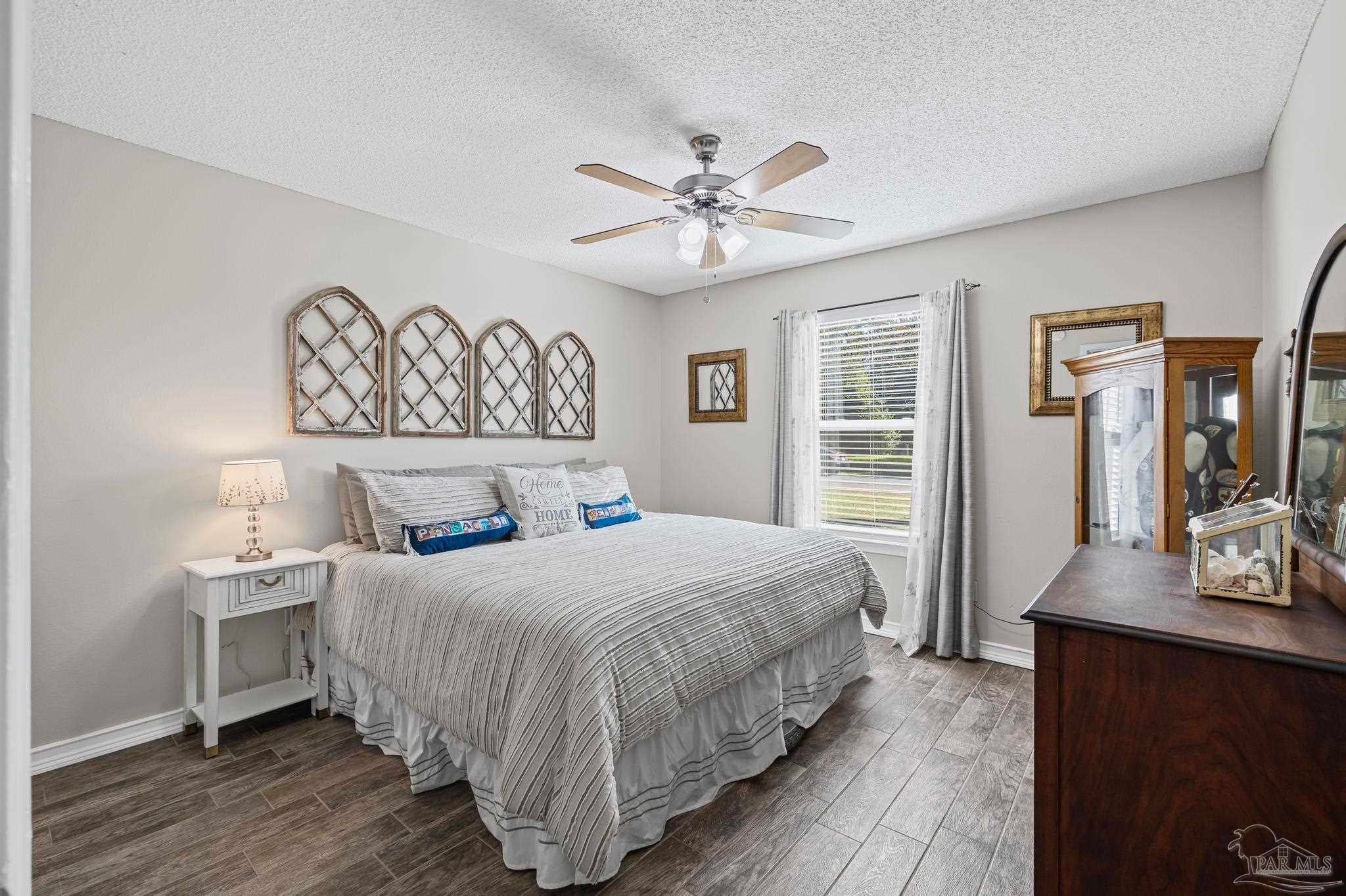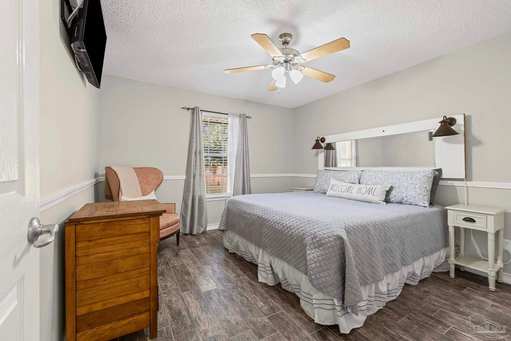 Welcome to this stunning brick family home in Pensacola, featuring 3 bedrooms, 2 bathrooms, and a spacious detached guest suite — perfect for extended family, visitors, or potential short-term rental income. Inside, you’ll find wood-look tile floors throughout, an open and inviting living area with a fireplace, and a fully renovated kitchen with granite countertops, stainless steel appliances, soft-close cabinets, and decorative tile flooring. Enjoy both a breakfast nook and a formal dining space, ideal for everyday living or entertaining. The primary bedroom suite offers a large walk-in closet, soaking tub, glass-enclosed tiled shower, and granite vanity. Two additional bedrooms and a second full bath provide comfortable space for family or guests. Step outside to your expansive covered patio with electrical, ceiling fans, and TV hookup — perfect for outdoor dining and relaxing. The fenced backyard features lush green space plus a 625 sq. ft. detached living unit with a kitchenette, full bathroom, dining and seating area, and its own mini-split HVAC system for heating and cooling. This versatile space has proven successful as a rental opportunity through third-party hosting platforms, offering excellent flexibility and added value. Additional features include a covered RV pad with full electrical hookups, a metal workshop building with power and roll-up door, and recent upgrades such as a new roof and hot water heater (2023) for worry-free ownership. This move-in ready Pensacola family home delivers it all — modern updates, outdoor living, guest or rental flexibility, and a prime location close to schools, shopping, and local beaches. Don’t miss the chance to make this your next home in Pensacola, FL.