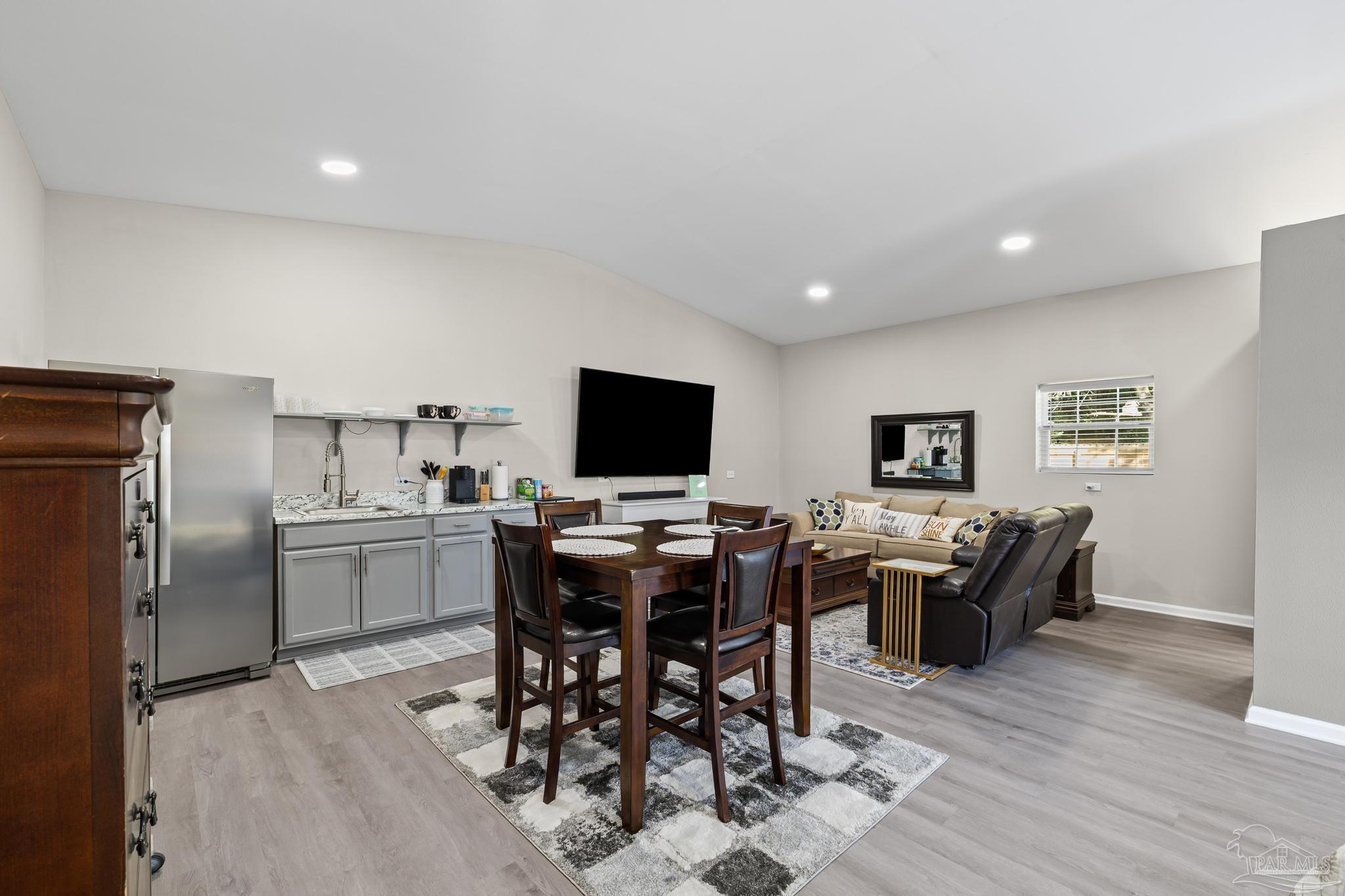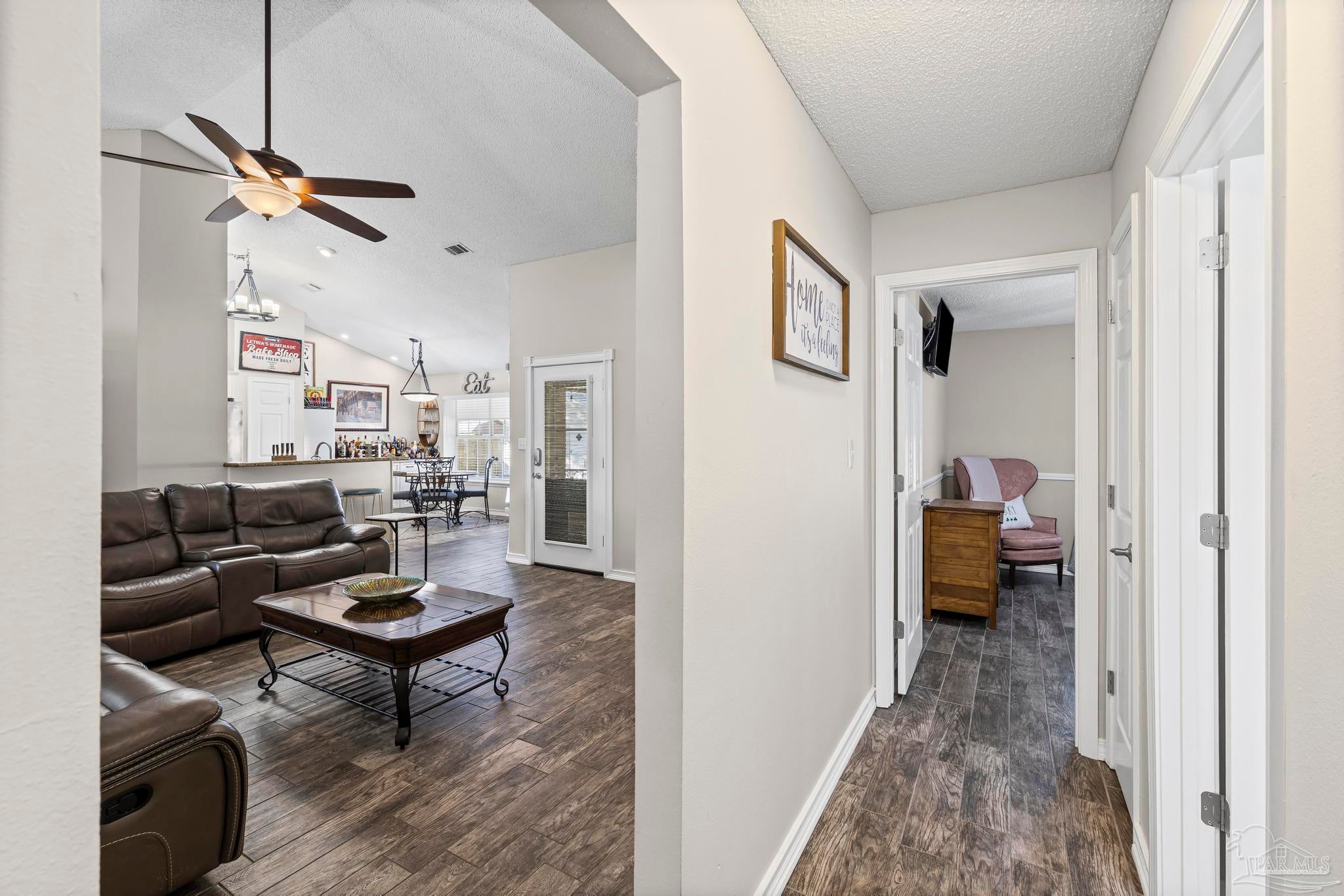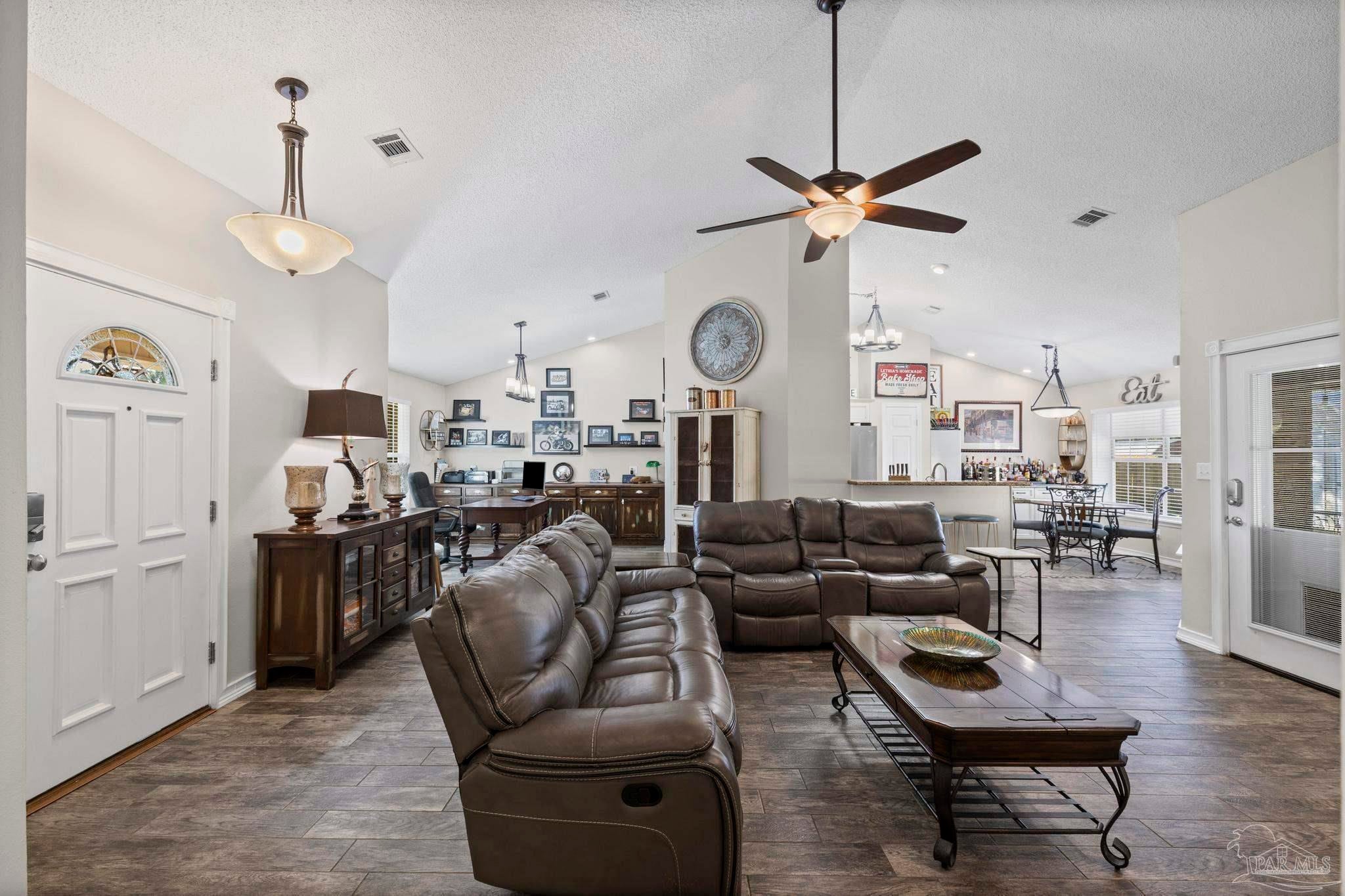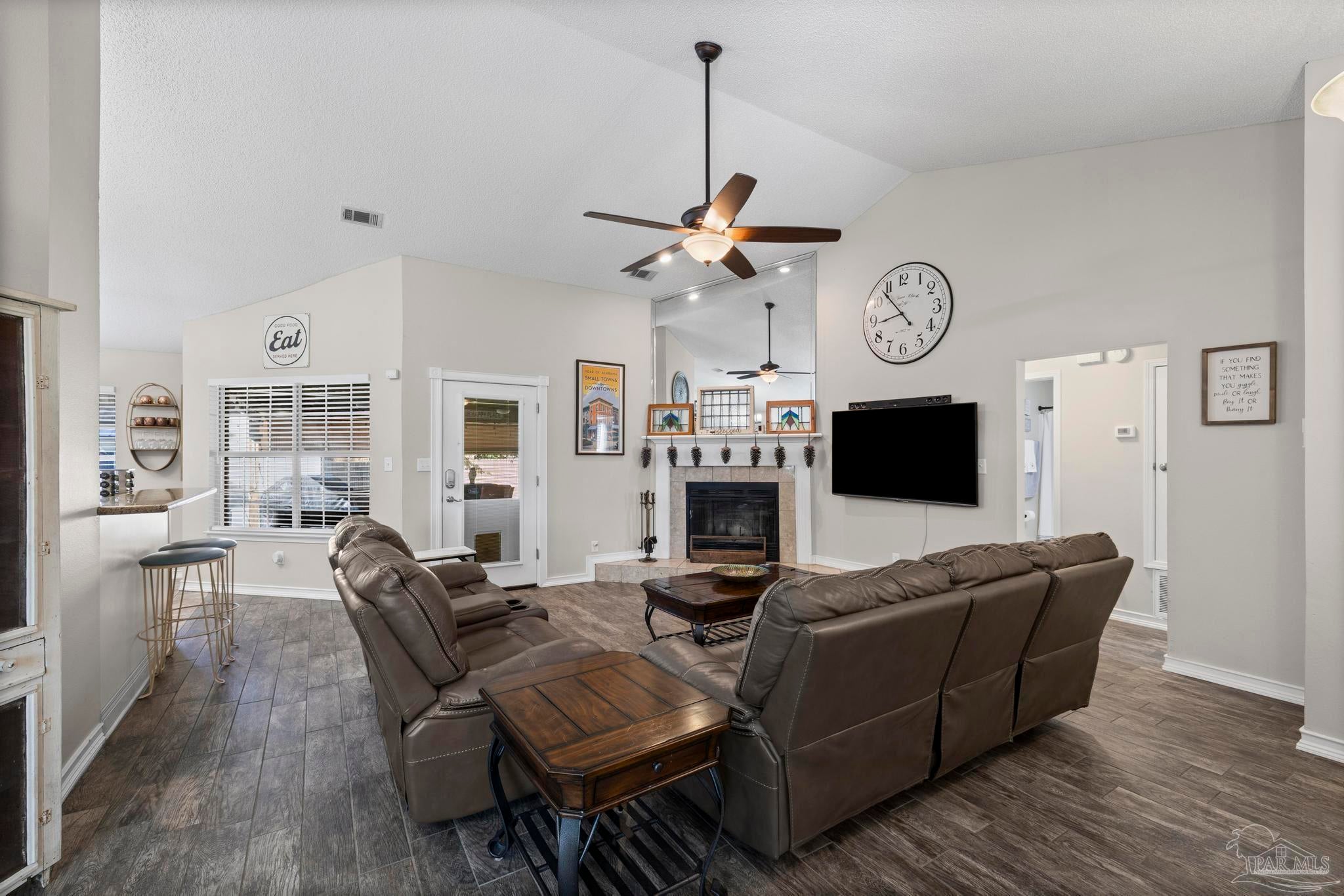 Welcome to this stunning brick family home in Pensacola, featuring 3 bedrooms, 2 bathrooms, and a spacious detached guest suite — perfect for extended family, visitors, or potential short-term rental income. Inside, you’ll find wood-look tile floors throughout, an open and inviting living area with a fireplace, and a fully renovated kitchen with granite countertops, stainless steel appliances, soft-close cabinets, and decorative tile flooring. Enjoy both a breakfast nook and a formal dining space, ideal for everyday living or entertaining. The primary bedroom suite offers a large walk-in closet, soaking tub, glass-enclosed tiled shower, and granite vanity. Two additional bedrooms and a second full bath provide comfortable space for family or guests. Step outside to your expansive covered patio with electrical, ceiling fans, and TV hookup — perfect for outdoor dining and relaxing. The fenced backyard features lush green space plus a 625 sq. ft. detached living unit with a kitchenette, full bathroom, dining and seating area, and its own mini-split HVAC system for heating and cooling. This versatile space has proven successful as a rental opportunity through third-party hosting platforms, offering excellent flexibility and added value. Additional features include a covered RV pad with full electrical hookups, a metal workshop building with power and roll-up door, and recent upgrades such as a new roof and hot water heater (2023) for worry-free ownership. This move-in ready Pensacola family home delivers it all — modern updates, outdoor living, guest or rental flexibility, and a prime location close to schools, shopping, and local beaches. Don’t miss the chance to make this your next home in Pensacola, FL.