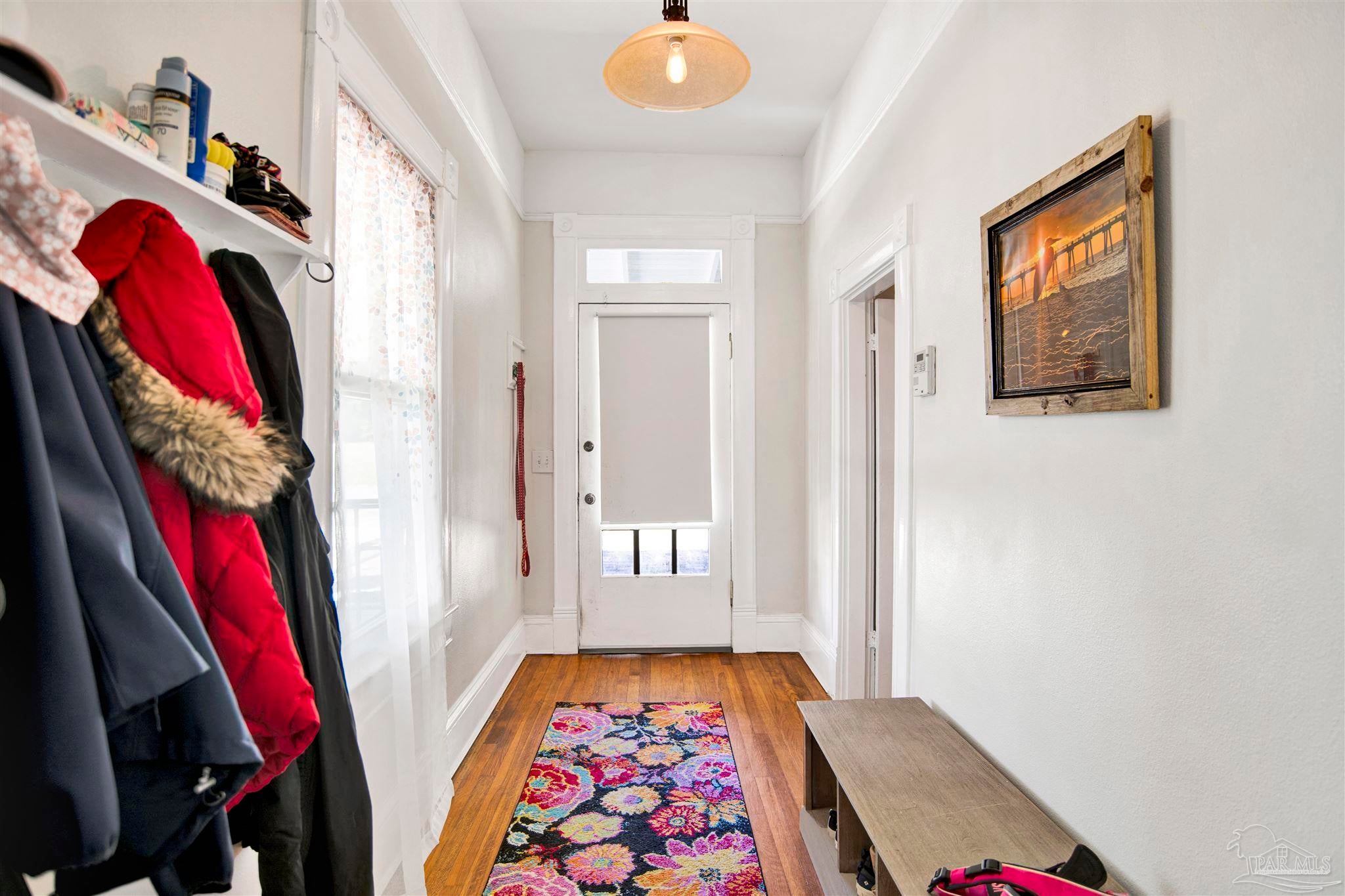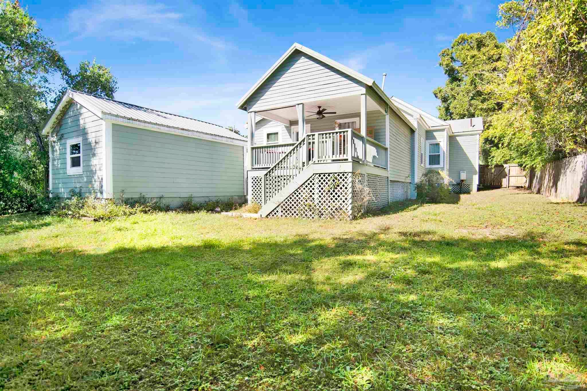 Step back in time while enjoying modern comforts in this beautifully remodeled East Hill home. Built in 1916 and thoughtfully updated in 2015, this 3-bedroom, 2-bath residence exudes timeless charm and character. From the deep wrap-around front porch—perfect for relaxing and greeting neighbors—you enter a welcoming foyer featuring high ceilings and stunning hardwood floors that flow throughout much of the home. The spacious living room is filled with natural light from an abundance of windows and opens seamlessly into the dining area, which features tile flooring and connects to the updated kitchen. A true cook’s delight, the kitchen boasts granite countertops, a breakfast bar, pantry, and stainless steel appliances—including a gas stove. The split bedroom floor plan ensures privacy for the primary suite, which features cozy carpeted floors. The primary bath offers modern tile finishes, a walk-in shower, and direct access to the spacious laundry room. The two additional bedrooms are generously sized and share a charming Jack-and-Jill bath complete with tile flooring, a pedestal sink, and a classic claw-foot tub. Enjoy outdoor living on the large covered back deck overlooking a privacy-fenced backyard shaded by mature trees along the perimeter. A detached single-car garage provides extra storage and functionality. Blending vintage charm with modern updates, this East Hill treasure is move-in ready and waiting for its next lucky owner.