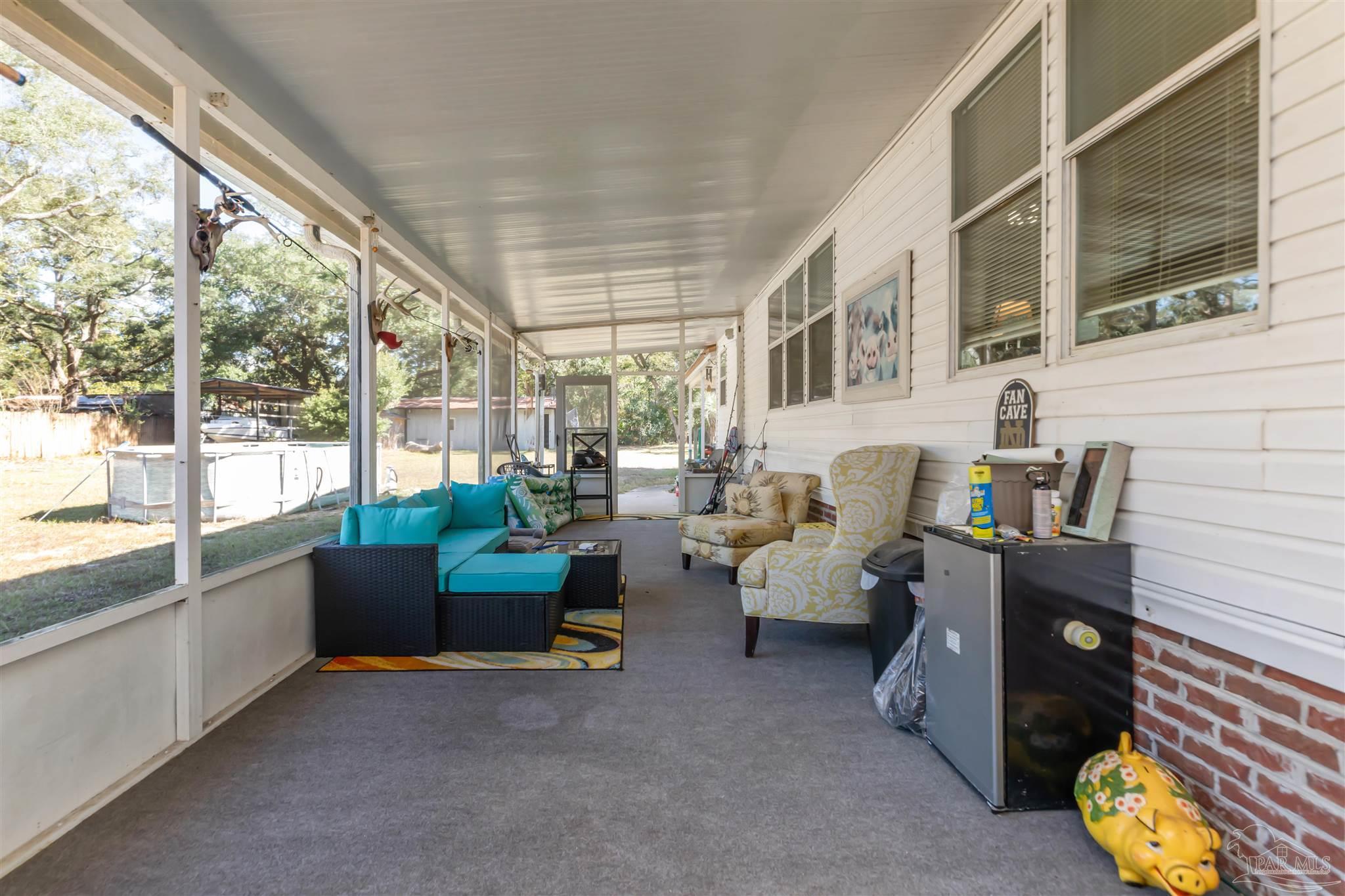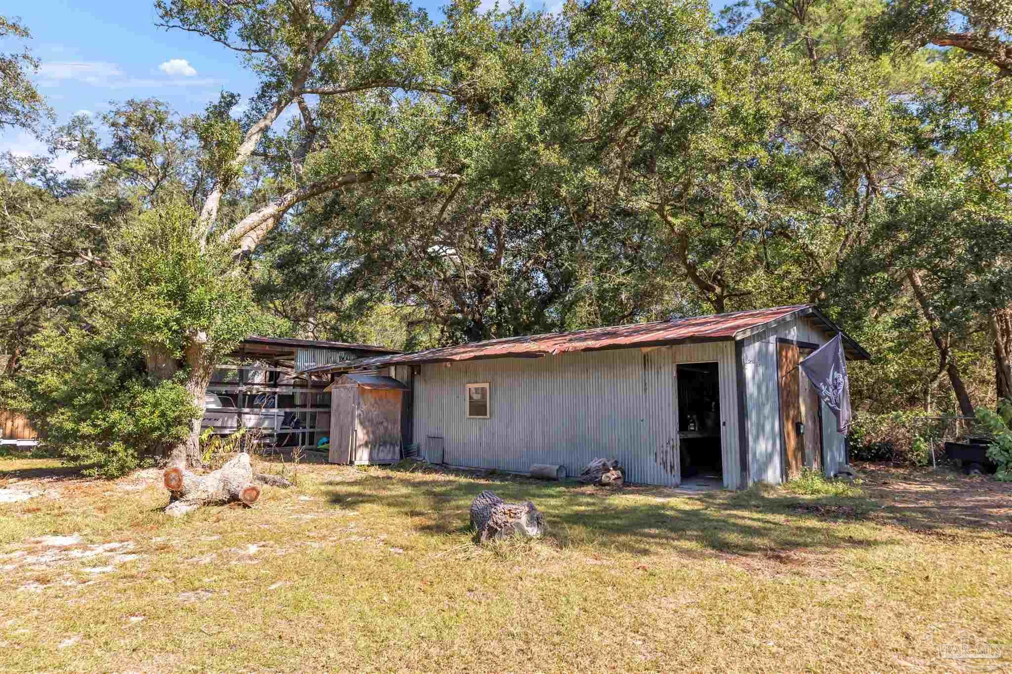 Situated on nearly an acre, this beautifully maintained Navarre home offers 1,606 heated square feet and 2,901 total square feet under roof—providing space, comfort, and true Florida living. Inside, you'll find vaulted ceilings, tile flooring throughout, and a wood-burning fireplace that adds warmth and character. The primary suite features a jacuzzi tub, separate shower, and walk-in closet. Step outside to enjoy the screened-in Florida room, perfect for relaxing year-round, or cool off in the above-ground pool. The property also includes a metal roof, covered workshop, two-car carport, an RV Port, and plenty of parking for your boat, or extra vehicles. A boat and lawnmower convey with the sale for added convenience. Located just one mile from the Live Oak Street Dock boat ramp, this home offers easy water access while being close to shopping, schools, and Navarre Beach. This property blends privacy and accessibility ideal for those seeking low-maintenance living with room to work, play, and unwind. Message me for early access before it hits the market.