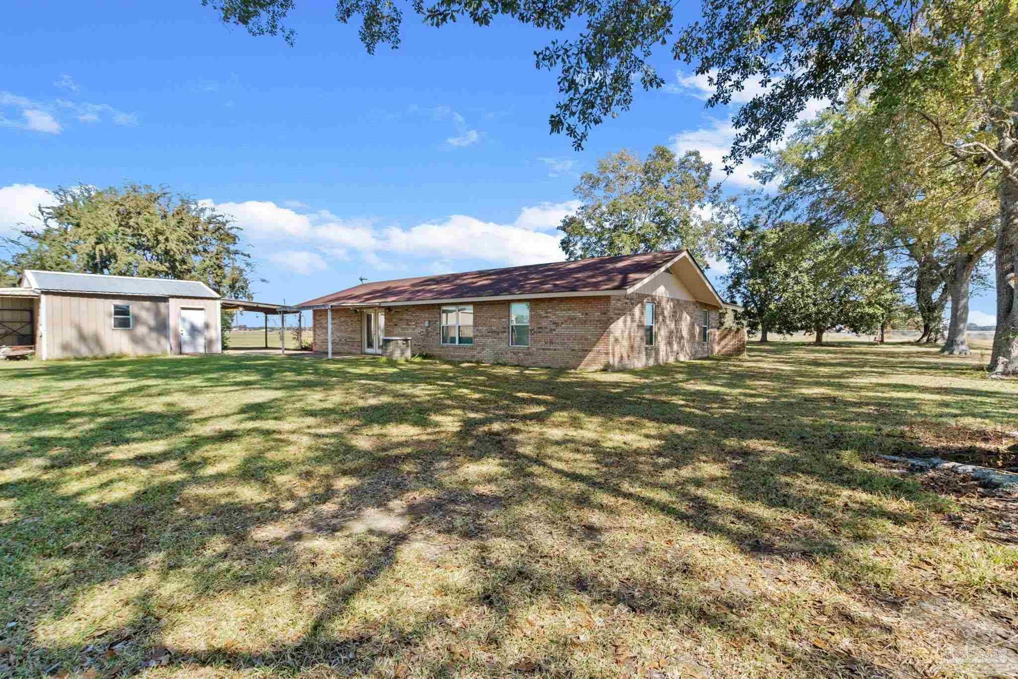 Tucked at the very end of a quiet dead-end road, this 3-bedroom, 2-bath brick home sits on about 2.5 acres of peaceful, open land surrounded by fruit trees—pecans, apples, muscadines, and scuppernongs. It’s the kind of place where mornings start with coffee on the porch and end with sunset views and the sound of crickets. Inside, you’ll find over 1,600 sq ft of comfortable living space with a warm, welcoming feel. The layout includes a formal dining room, an electric fireplace insert for cozy nights, and durable bamboo laminate flooring installed in 2019. Big upgrades have already been handled, too—new roof (2021), HVAC (2021), water heater (2021), windows (2017), and a brand-new septic system (2024)—so you can move right in and focus on enjoying your space instead of fixing it up. Out back, there’s plenty of room for your hobbies, projects, or small farm setup. The 16x38 detached garage has power and water—perfect for a workshop or extra storage—and the 30x40 pole barn offers space for a tractor, boat, or equipment. Even the chicken coop is ready and waiting if you’ve dreamed of collecting your own fresh eggs. If you’ve been searching for a home that feels private, peaceful, and still close to town, this is the one. Homes with this much land and so many updates don’t come along often. Come take a look—you’ll see why this little slice of country living is worth the wait.