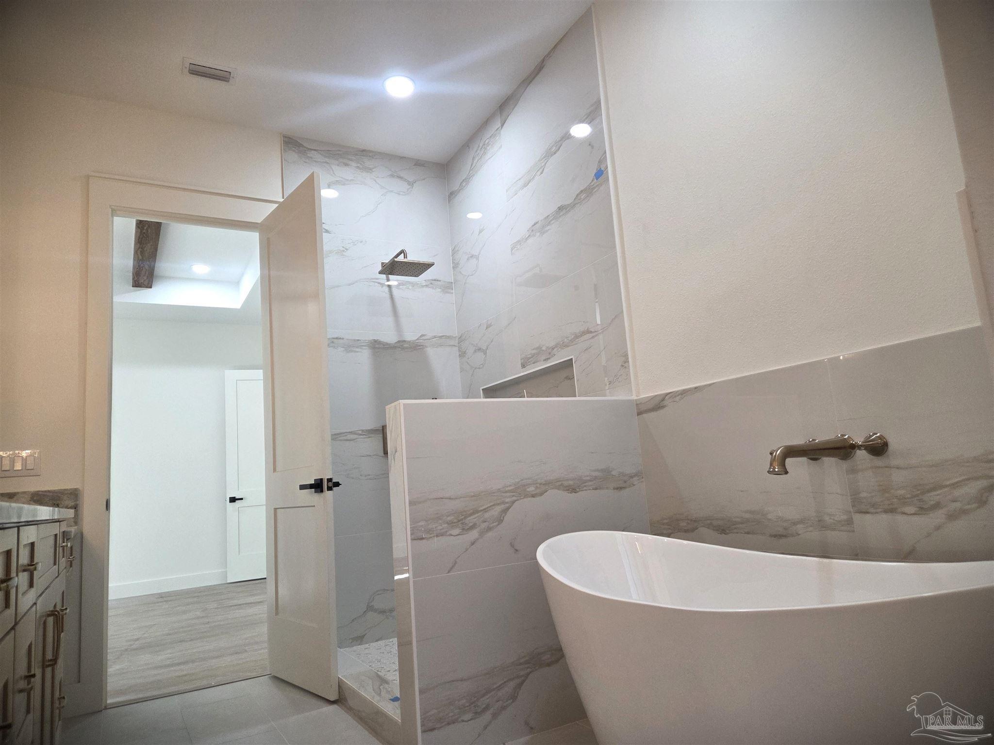 STRIKING & UPDATED NEW CONSTRUCTION!! .. "Seeing Is Believing! " 5 Bedroom, 3 Full Baths, Up Stairs Uniquely Created Bonus Room & 3 Car Garage. Modern Living + Timeless Comfort! Welcome Home to Your Luxurious Dream Home! Skillfully Crafted and Ornately Designed Residence in Gated Community. Nestled in Wooded Backyard Setting, w/Glorious View! Ready for Its New Owners! CONSTRUCTION Showcases Contemporary, yet Modern Amenities. High-Quality Fiber Cement Hardy Board & Brick with Architectural Roofing. Intricate Custom Features to Allow for a “Care-Free” Lifestyle. Architectural Details Include 10' Ceilings, 8' Doors & 6' Windows (with the Exception of the Main Bathroom Window.) Stained Yellow Pine Beams, Tongue & Groove, Real Wood Shutters & Accent Beams (Stained American Chestnut.) Kitchen Custom Cabinetry w/ Crown Molding Reflects Elegance. Modern Homebuilding Integrating Energy-Efficient Systems / Smart Home Wiring Further Indicates its Forward-Thinking Construction. Bask in a Split-Level Floor Plan with Approx. 2996 Sq.Ft of Living Space, Including 5 Bedrooms and 3 Full Bathrooms (Main Bathroom Sports Brushed Gold Fixtures.) The Chef’s Kitchen Features "Venus" Quartzite “Fantasy Brown” Counter Tops with “Trenton Swap White” Cabinetry, Stained American Chestnut Accents. 36” Hybrid Z Line Electric Oven & Propane Gas Top. Custom Cabinet Hood with Exhaust and an “Eat-In” Island w/ Built-In Microwave. Stainless Steel Appliances (*Buyer to Choose Refrigerator.), Elegant Picture Window & French Doors. Prewired for TV & Surround Sound in Kitchen and Back Patio Which Has 2 Ceiling Fans & Recessed Lighting — Ideal for Entertaining and Family Gatherings. Eloquent Main Ste. Shines With Trey & Beam Ceiling and SPACIOUS Walk-In Closet. Ensuite Bathroom Provides Double Vanity, Shower w/ Alluring Tiling/Inserts, Double Lighted Vanity, 15' Cabinetry and Garden Tub. Exterior w/Dimmable Can Lights & Mood Ring, Plus Ring Doorbell. Timed Rainbird Irrigation.