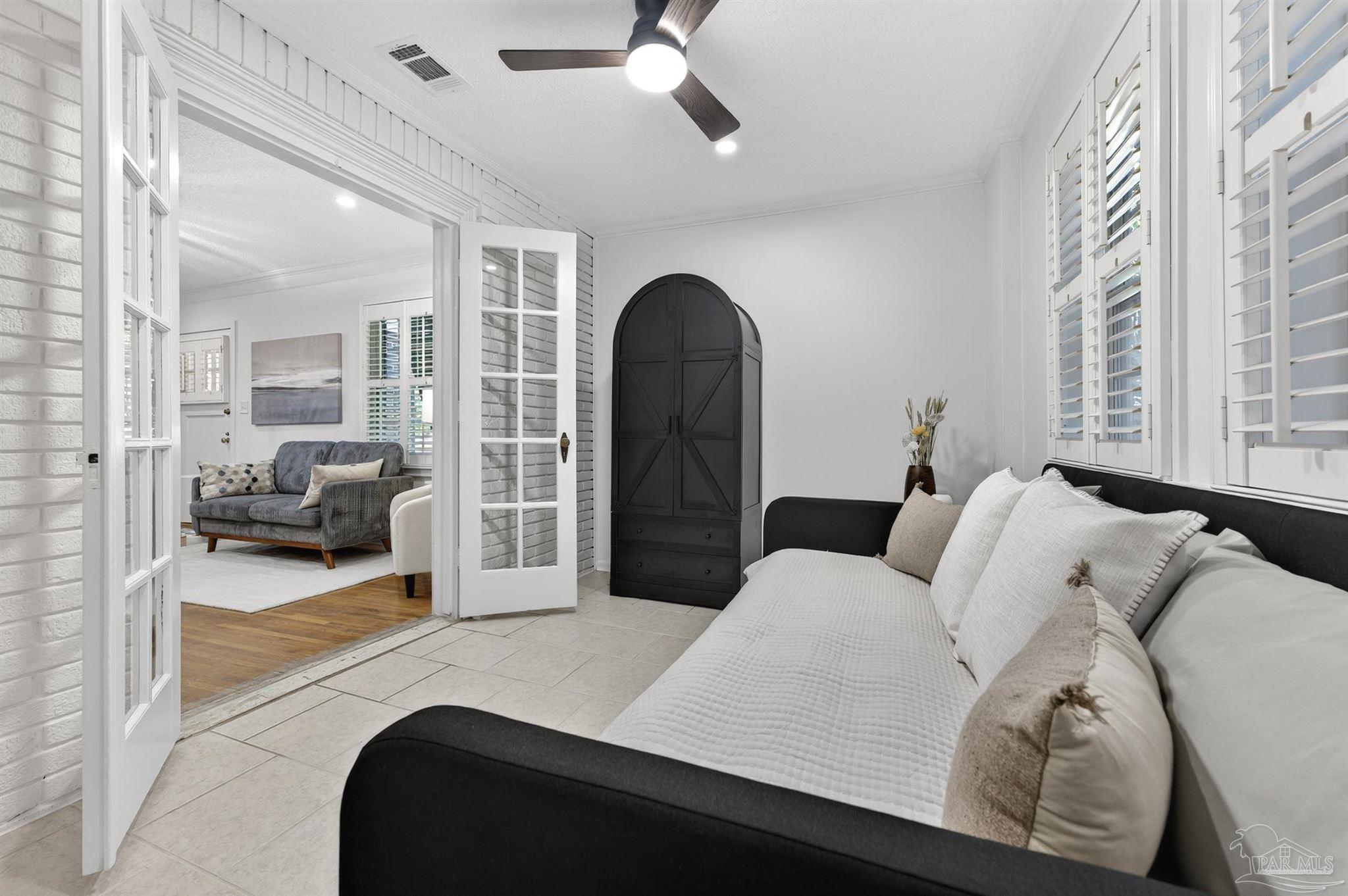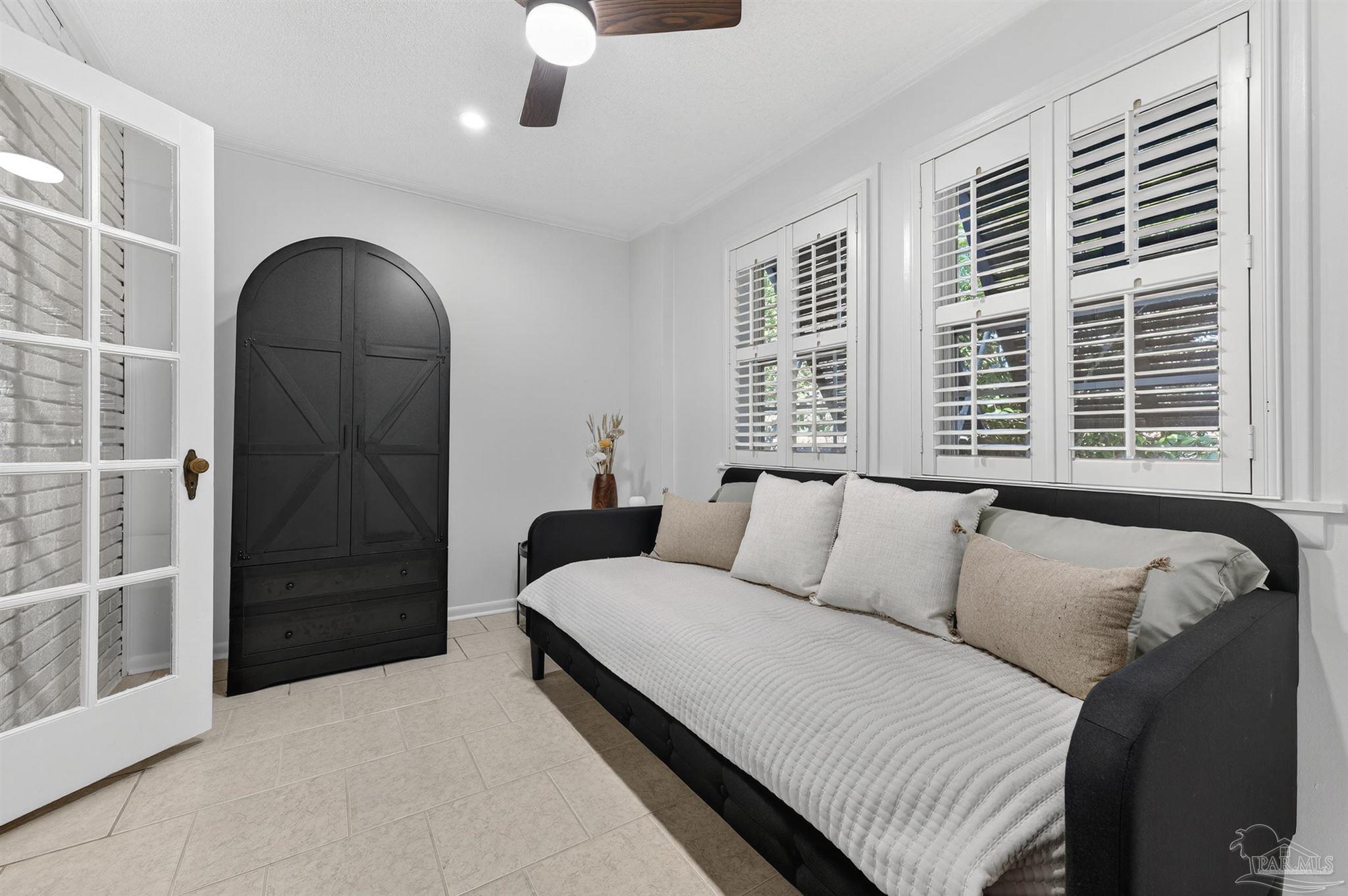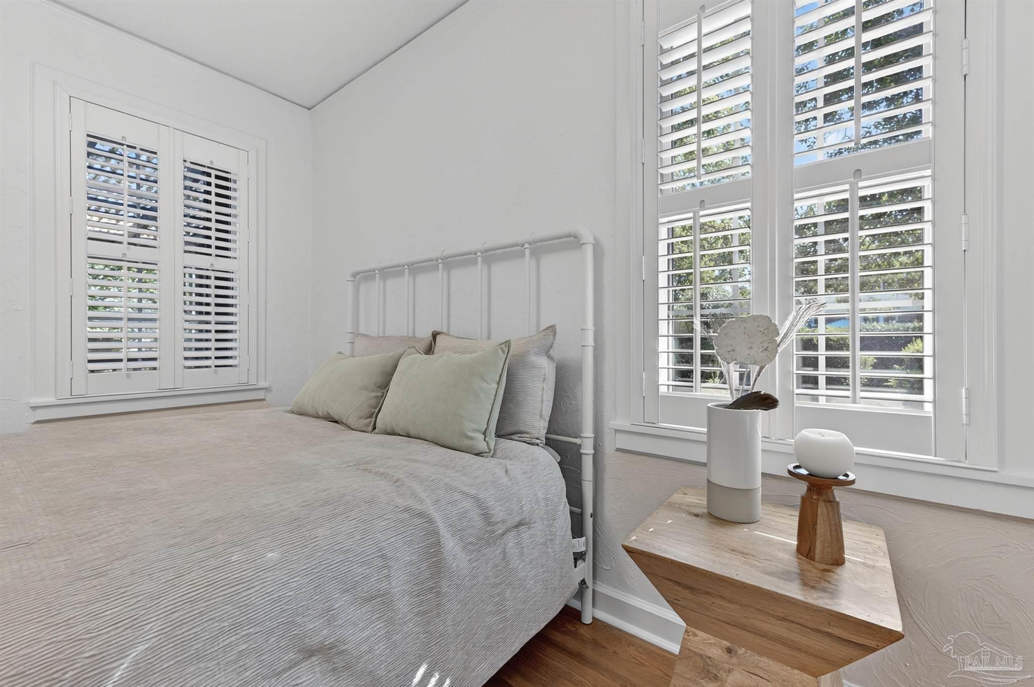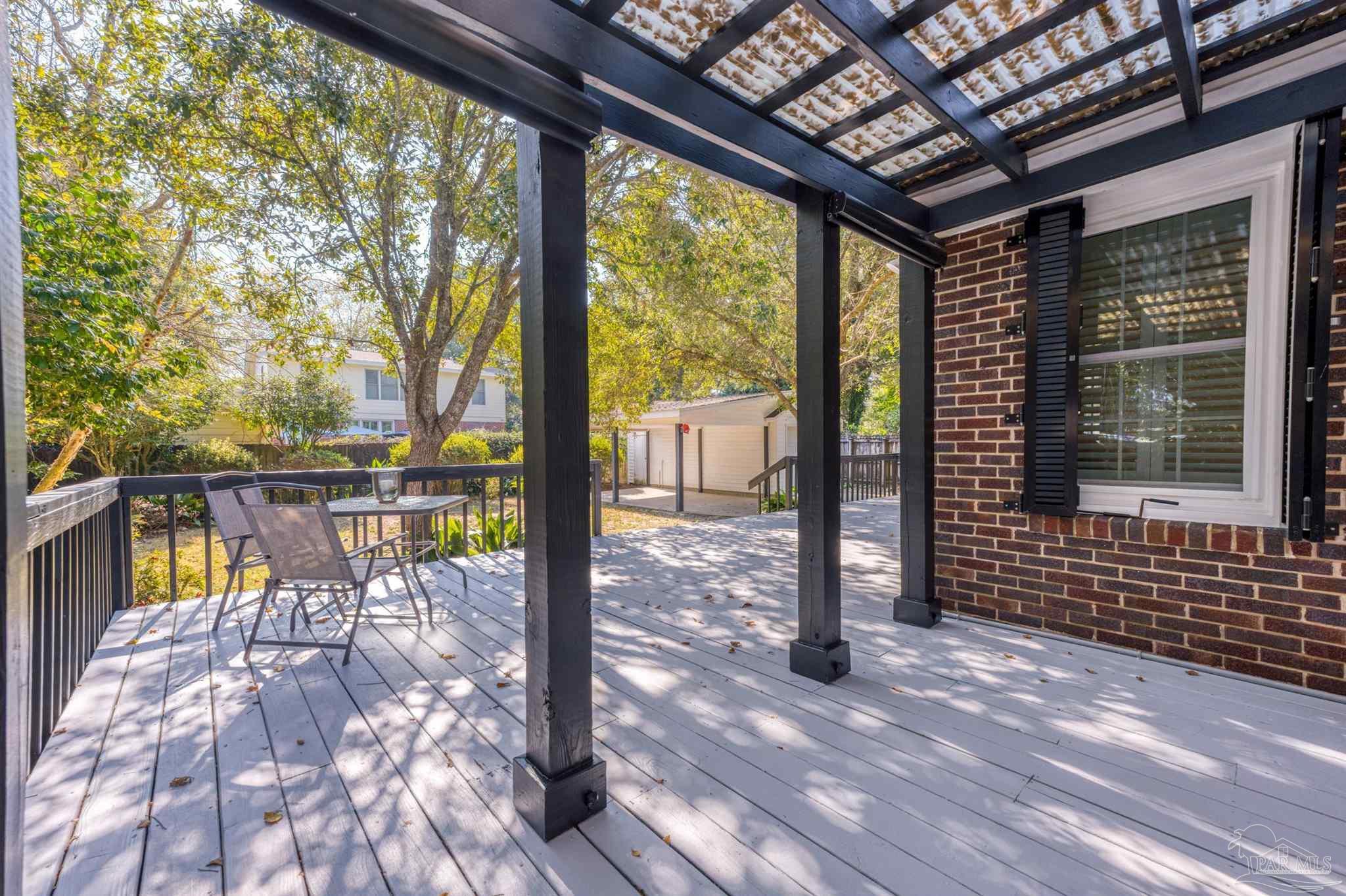 Timeless East Hill Brick Home! This beautifully maintained 1941 brick home is located in the highly sought-after East Hill neighborhood, just a short walk from Bayou Texar and Bayview Park. Offering 3 bedrooms and 2 full baths, this residence combines classic charm with thoughtful modern updates. The home features original hardwood flooring, a cozy gas fireplace, and an updated kitchen with granite countertops, a 6-burner Jenn-Air gas range, and a brand-new dishwasher. Fresh interior paint enhances every room, while the exterior has been refreshed with newly painted doors, windows, and decking. Additional improvements include new light fixtures, a complete electrical rewire, and a 1-car (269 sq. ft.) garage with electric and water, complemented by an attached carport. Outdoor living is easy to enjoy on the expansive 680 sq. ft. back deck—freshly painted and wired for a hot tub—overlooking the backyard while birdwatching. Notable upgrades include a Briggs & Stratton natural gas generator (installed 2022), new Lexon windows, and a new roof on both the home and garage (installed December 2023). For added protection and efficiency, Bahama shutters and Therma-Tru storm doors were installed in 2016, along with a Rain Bird sprinkler system. A transferable Sentricon pest control contract is paid through November 2026. Ideally located just blocks from Bayview Park and Bayou Texar, residents can enjoy tennis, kayaking, paddleboarding, or launching a boat just minutes from home. A short drive to the beautiful beaches at Pensacola Beach, while having the convenience of being close to shopping, amenities, & the airport.
