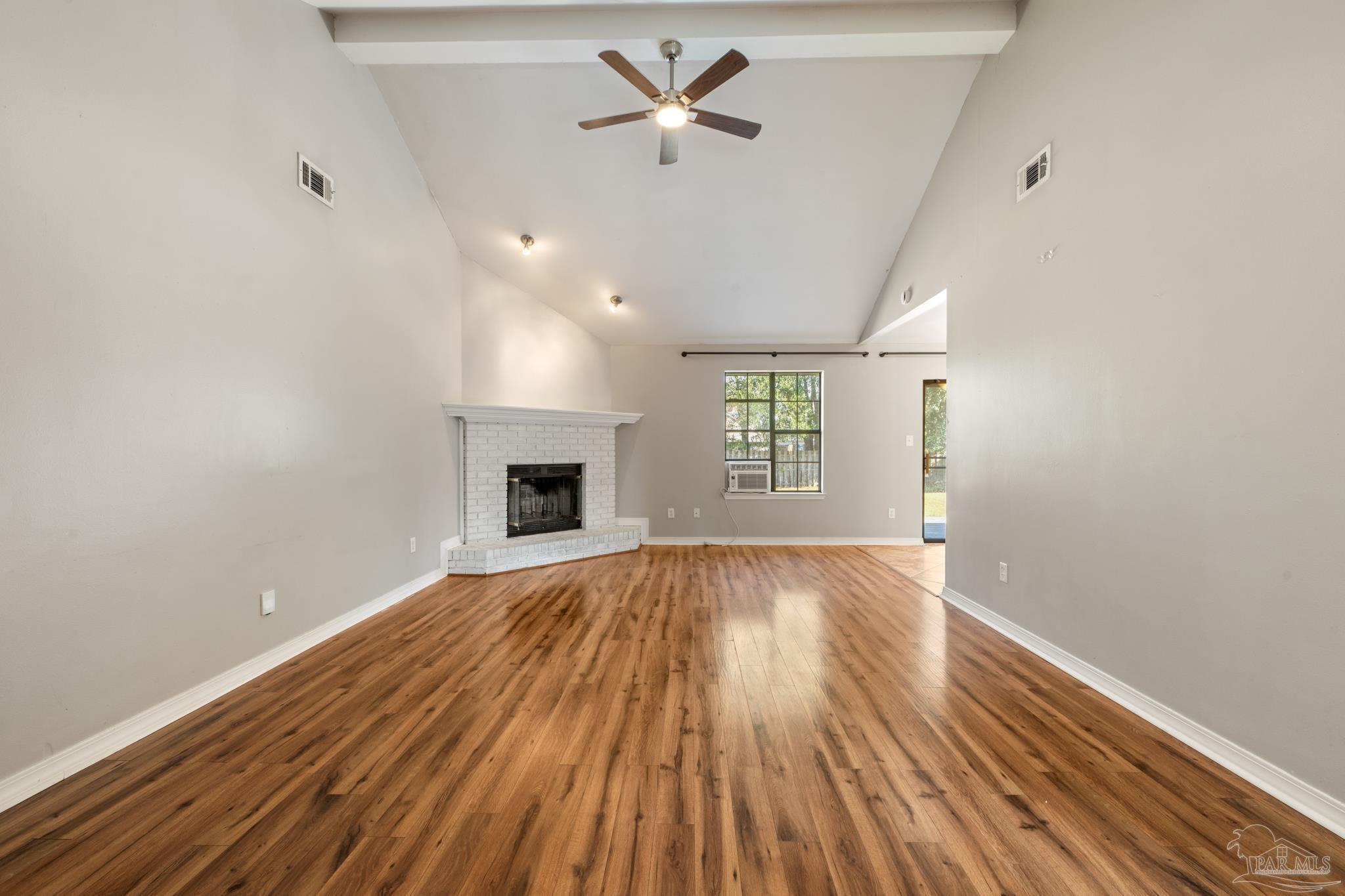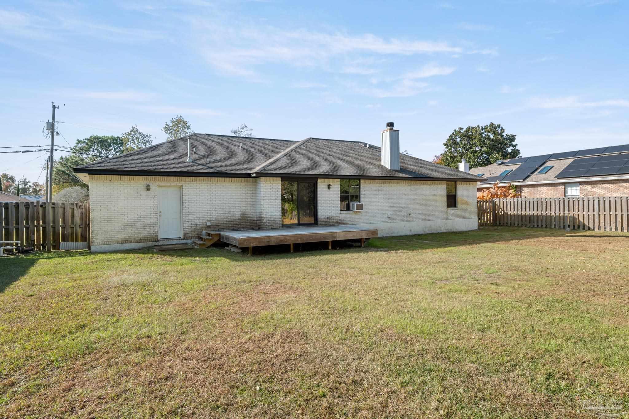 Welcome to Fox Den Villages in east Navarre, where this well-maintained ranch-style home blends everyday comfort with recent upgrades. Offering 3 bedrooms, 2 baths, and 1,601 square feet, the semi-open floorplan features a spacious galley kitchen, engineered hardwood floors in the living room and bedrooms, and tile in the kitchen and baths for easy care. A versatile flex room adds value and options; it can serve as a dining room, home office, playroom, or even be converted into a true fourth bedroom to fit your needs. What's new? This home now includes a full set of new appliances (stove, refrigerator, washer, and dryer), a new HVAC system, and a new 40-gallon water heater in the garage; all updates that provide lasting peace of mind. Out back, you'll find a private yard with an open deck and a storage shed, perfect for relaxing or entertaining. The quarter-acre lot and two-car garage round out the property's appeal. Its location makes commuting a breeze, just minutes to Hurlburt Field and about a half-hour to Eglin AFB.