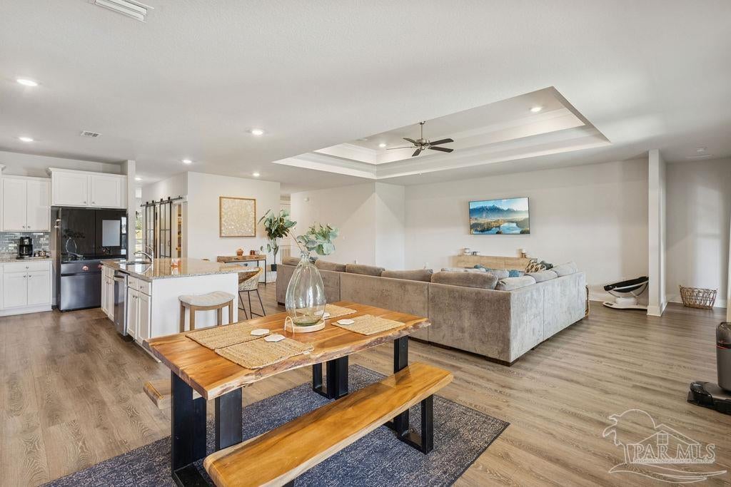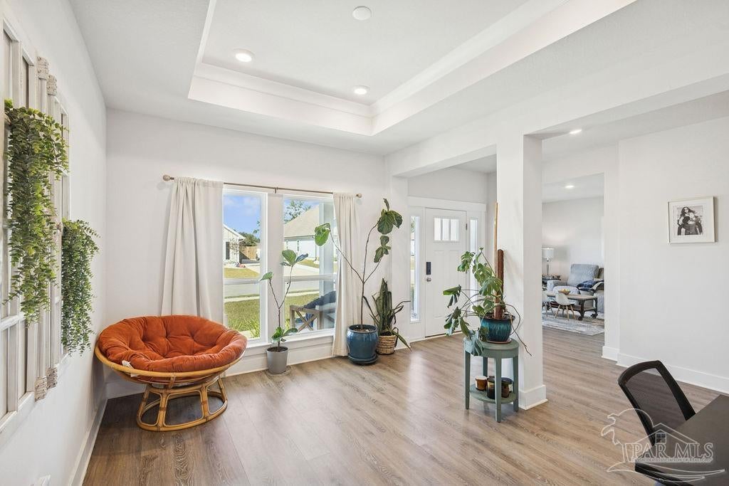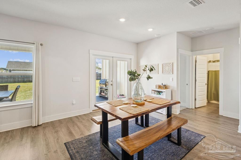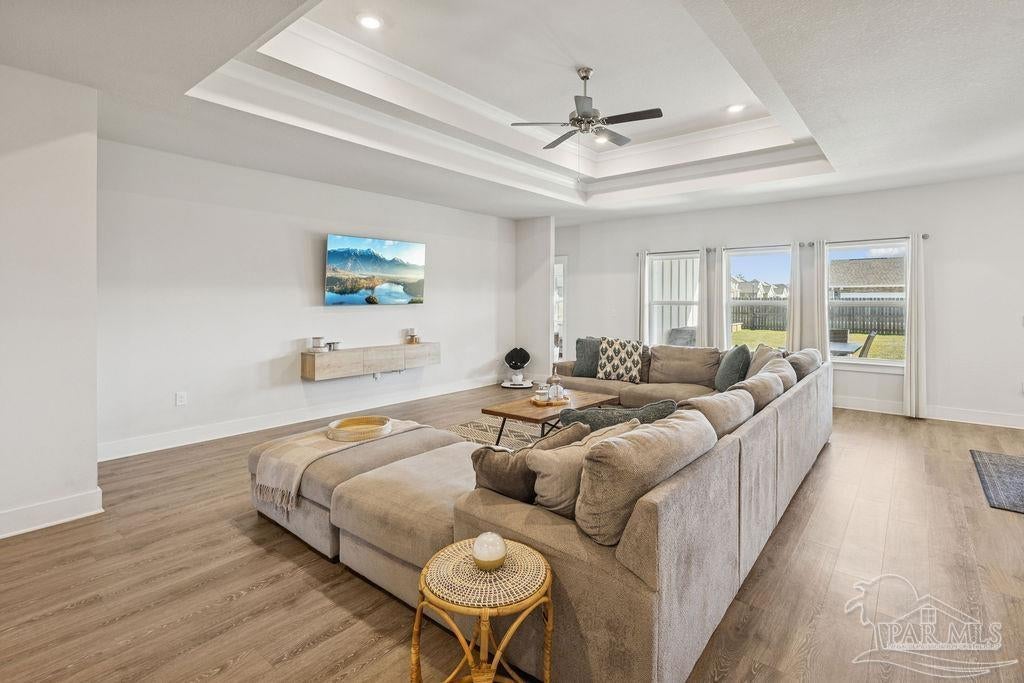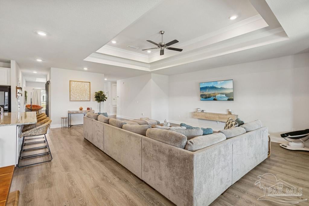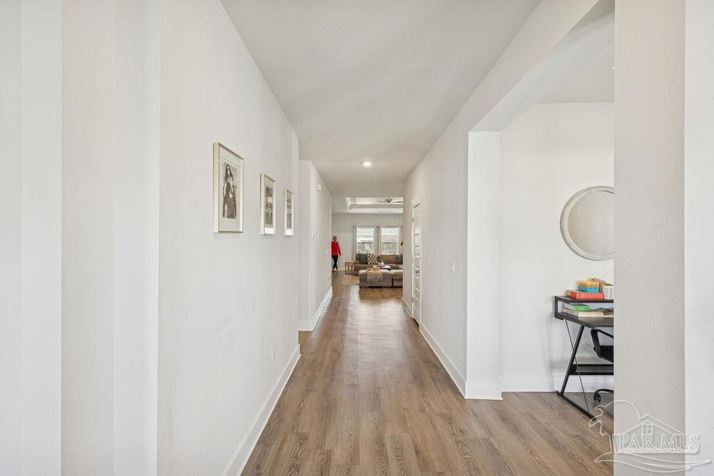 Welcome home to the highly sought-after McKenzie plan, offering 5 bedrooms, 3 full bathrooms, and 3,141 sq ft of spacious, modern living in Robinson Estates, one of Pace’s premier communities. Situated on a .386-acre corner lot, this home features thoughtful upgrades, stylish finishes, and a functional layout designed for both everyday living and entertaining. Step inside to an open-concept living area with custom built-ins in pantry, a floating entertainment center, and durable LVP flooring throughout the main spaces. The gourmet kitchen includes a large granite island, stainless-steel appliances, tile backsplash, and ample cabinet space. The primary suite offers generous space and an en-suite bath with double vanities, soaking tub, separate shower, and a large walk-in closet. Four additional bedrooms + 2 additional full baths ensure comfort for family, guests, or a dedicated office/flex space. Outside, enjoy a fully fenced backyard, gutters with soffit lighting, and a 2-car garage with extra storage located above garage doors. Located in the popular Robinson Estates community, residents have access to a neighborhood pool & pavilion area!