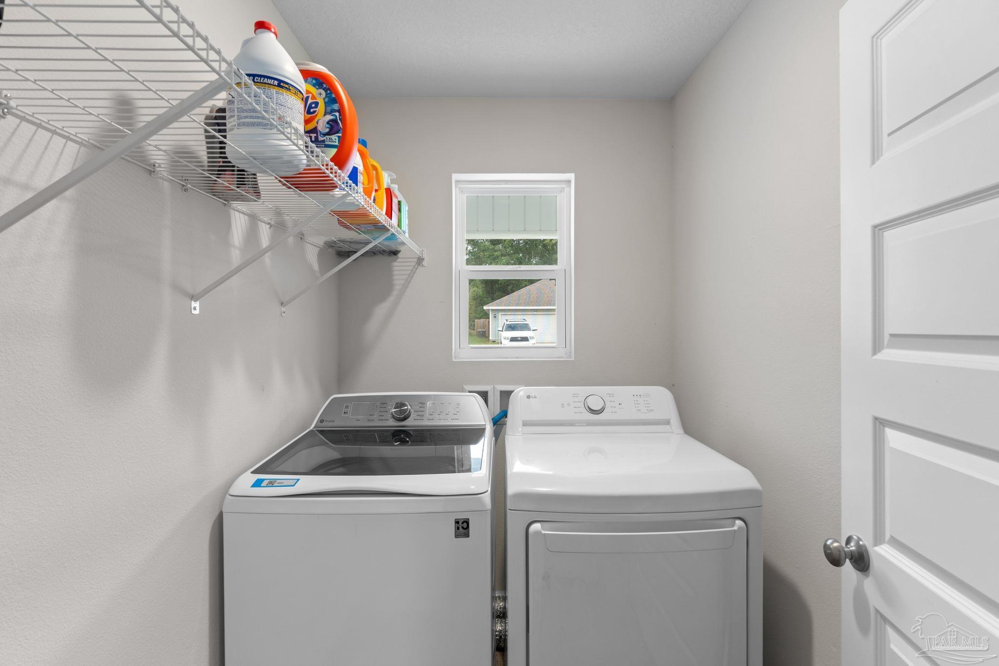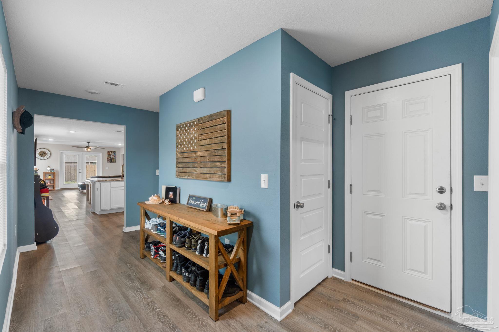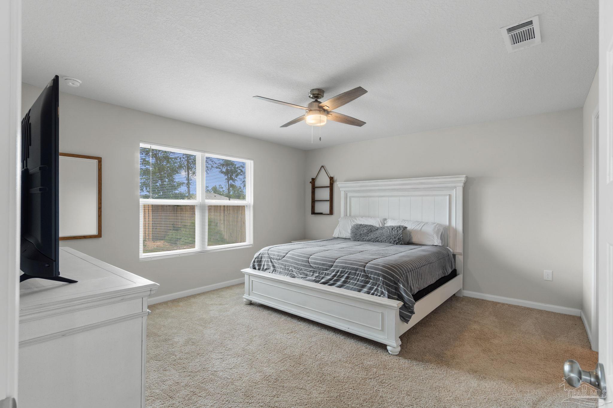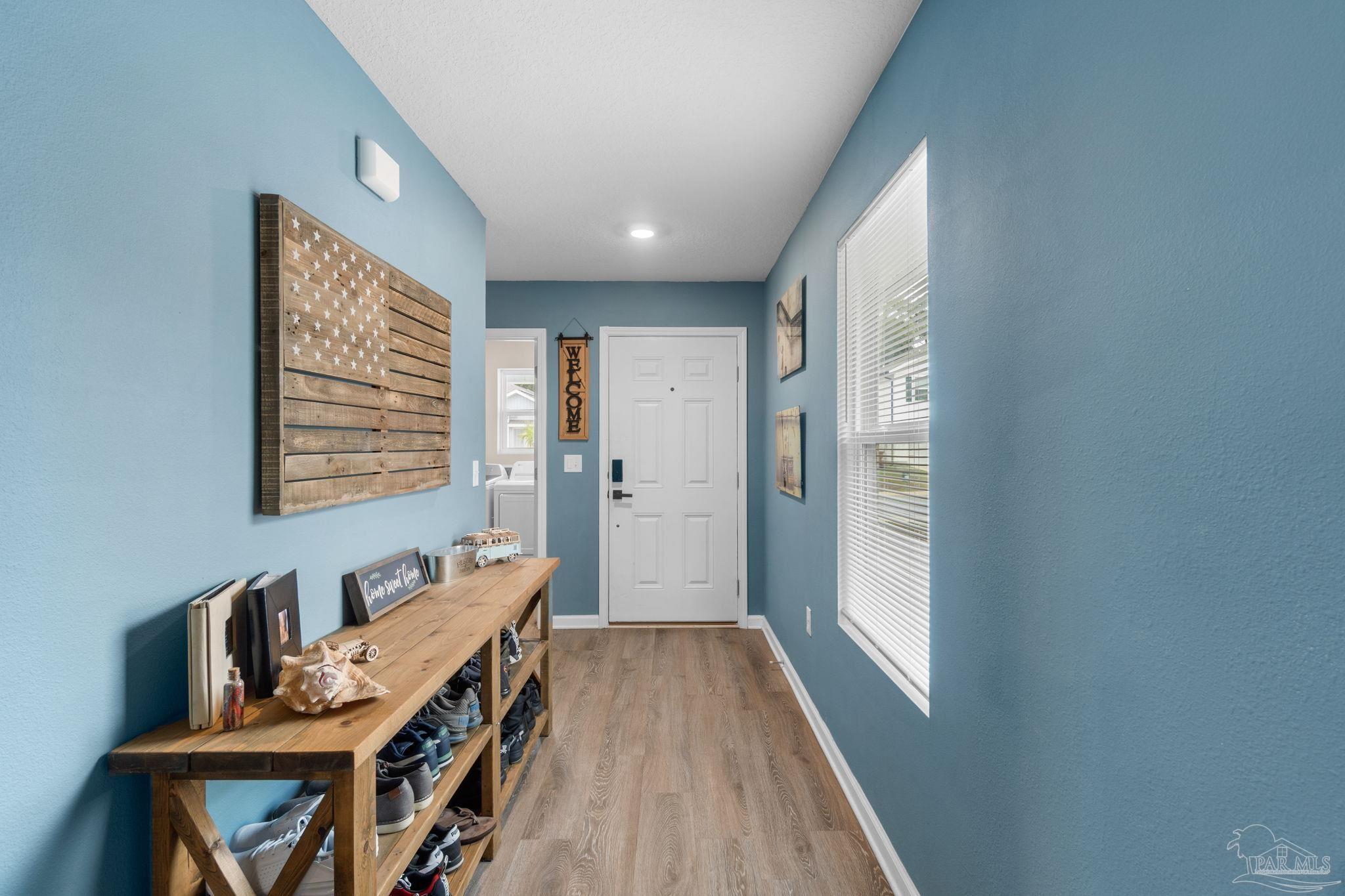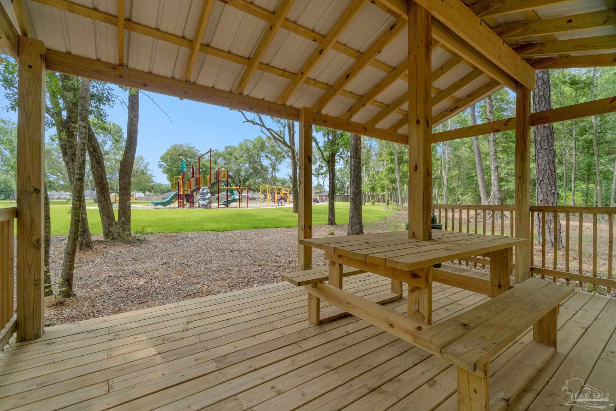 Welcome home to this beautifully updated 3 bedroom, 2 bathroom home in the sought-after Woodlands community, centrally located in Pace and just minutes from I-10, Hwy 90, NAS Whiting Field, UWF, shopping, restaurants, and the Emerald Coast’s stunning beaches. As you enter the neighborhood, you’ll appreciate the inviting sidewalks, streetlights, underground utilities, and access to a community park, playground, and splash pad - perfect for enjoying warm Florida days. Built in 2022, this home feels better than new and features a desirable split floor plan and luxury vinyl plank flooring throughout the main living areas. The spacious kitchen is a showstopper with upgraded granite countertops, a stylish subway tile backsplash, stainless steel appliances, a large walk-in pantry, and a generously sized island ideal for meal prep and gathering. The open layout flows seamlessly into the living room, where you’ll find a built-in electric fireplace surrounded by floor to ceiling shiplap and a massive 85” mounted smart TV that conveys with the home. The primary suite offers a peaceful retreat with space for a king-sized bed and an ensuite bathroom featuring double vanities, a walk-in shower, private water closet, and a large walk-in closet. Two additional guest bedrooms share a full bathroom, providing comfort and flexibility for family or visitors. The interior laundry room includes a conveying washer and dryer for added convenience. Step outside to a covered back patio overlooking the fully fenced backyard, an ideal spot for relaxing or entertaining. This move-in ready home combines modern style, thoughtful upgrades, and an unbeatable location. Schedule your showing today! (living room tv, washer, dryer, and cameras all convey, all other furniture negotiable!)
