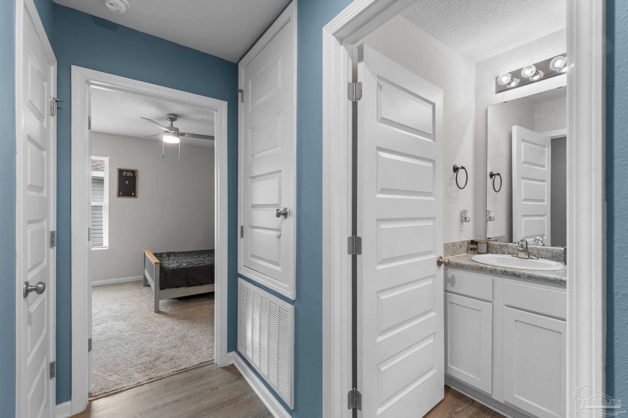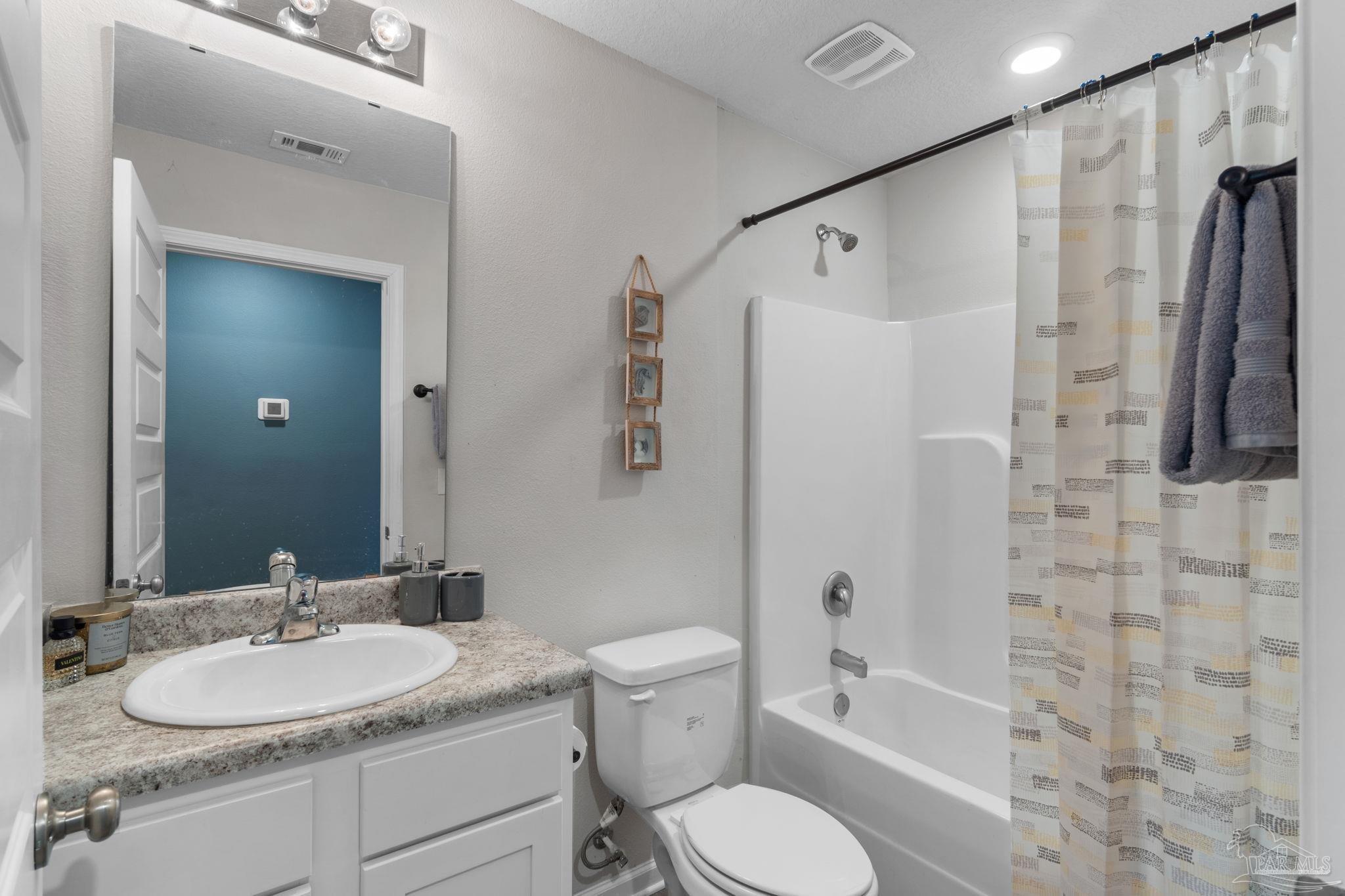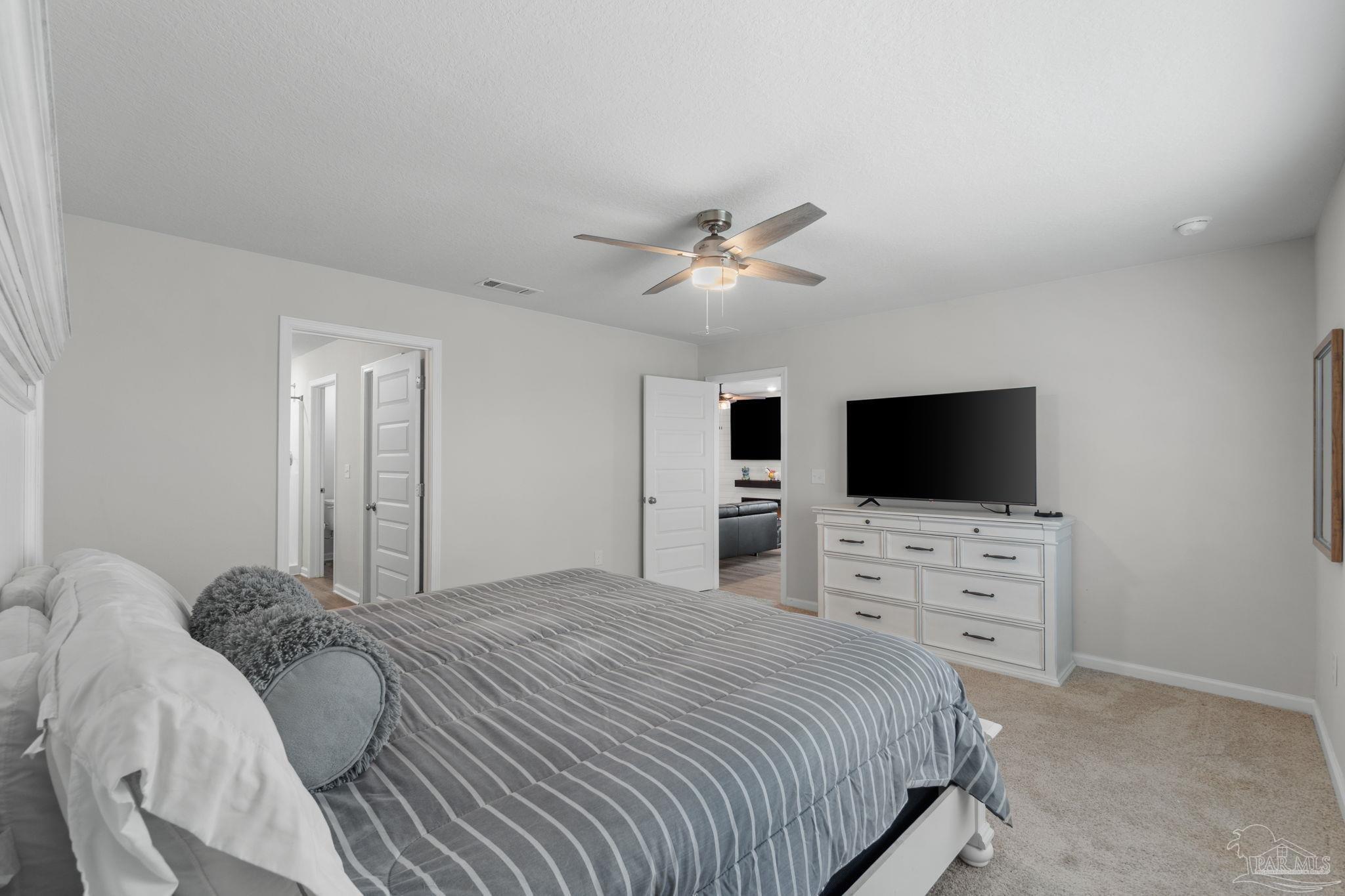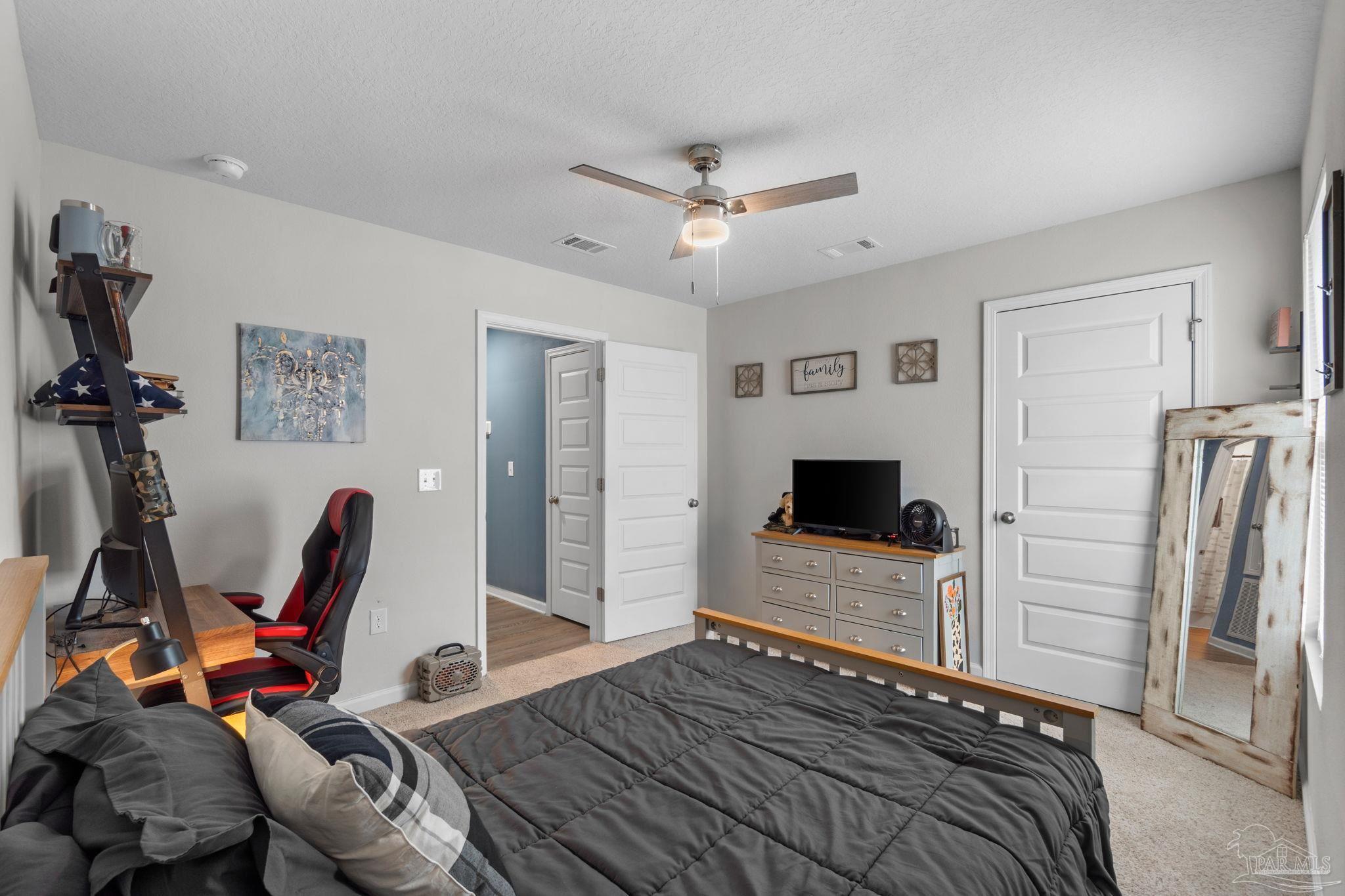 Welcome home to this beautifully updated 3 bedroom, 2 bathroom home in the sought-after Woodlands community, centrally located in Pace and just minutes from I-10, Hwy 90, NAS Whiting Field, UWF, shopping, restaurants, and the Emerald Coast’s stunning beaches. As you enter the neighborhood, you’ll appreciate the inviting sidewalks, streetlights, underground utilities, and access to a community park, playground, and splash pad - perfect for enjoying warm Florida days. Built in 2022, this home feels better than new and features a desirable split floor plan and luxury vinyl plank flooring throughout the main living areas. The spacious kitchen is a showstopper with upgraded granite countertops, a stylish subway tile backsplash, stainless steel appliances, a large walk-in pantry, and a generously sized island ideal for meal prep and gathering. The open layout flows seamlessly into the living room, where you’ll find a built-in electric fireplace surrounded by floor to ceiling shiplap and a massive 85” mounted smart TV that conveys with the home. The primary suite offers a peaceful retreat with space for a king-sized bed and an ensuite bathroom featuring double vanities, a walk-in shower, private water closet, and a large walk-in closet. Two additional guest bedrooms share a full bathroom, providing comfort and flexibility for family or visitors. The interior laundry room includes a conveying washer and dryer for added convenience. Step outside to a covered back patio overlooking the fully fenced backyard, an ideal spot for relaxing or entertaining. This move-in ready home combines modern style, thoughtful upgrades, and an unbeatable location. Schedule your showing today! (living room tv, washer, dryer, and cameras all convey, all other furniture negotiable!)