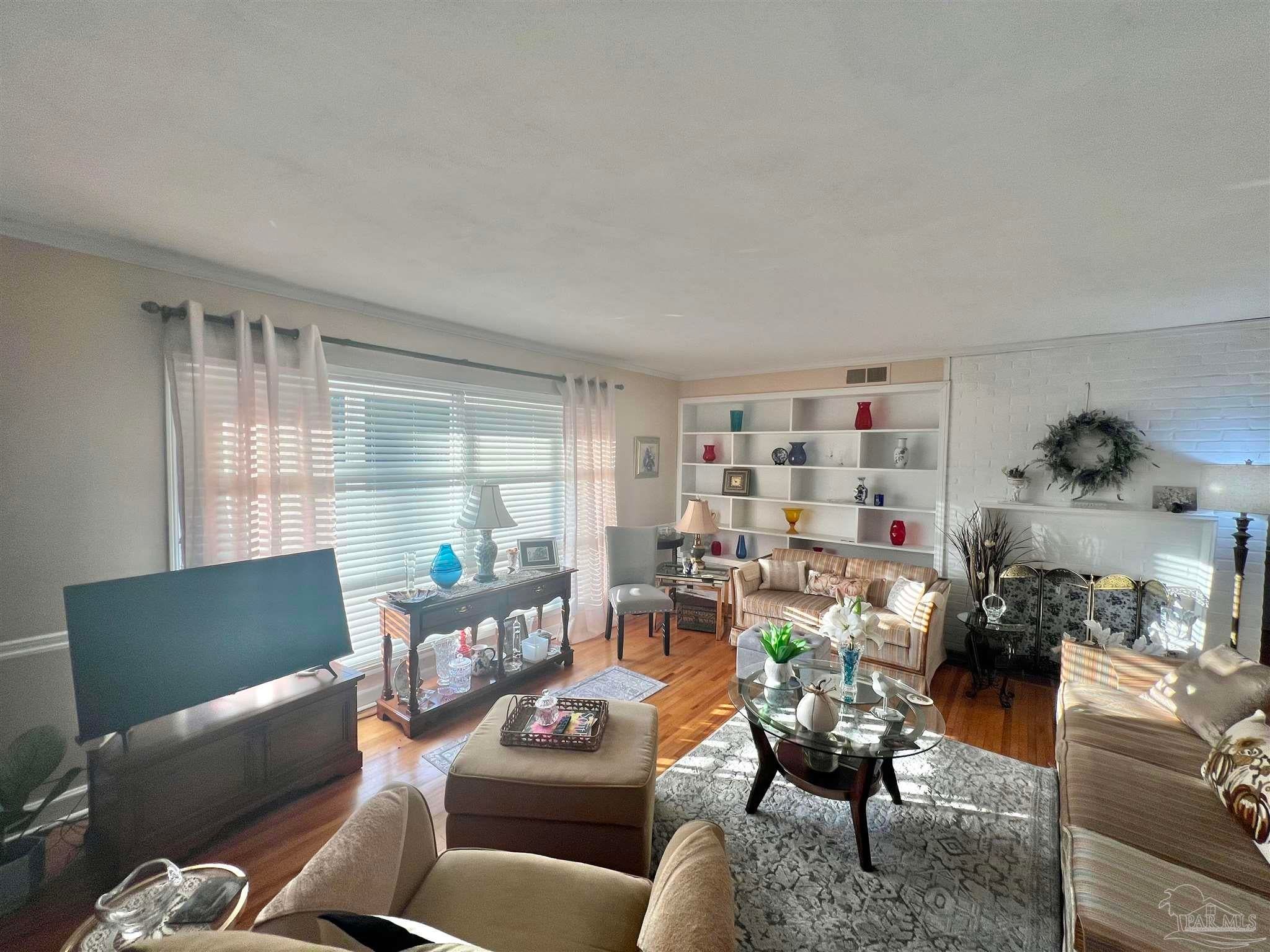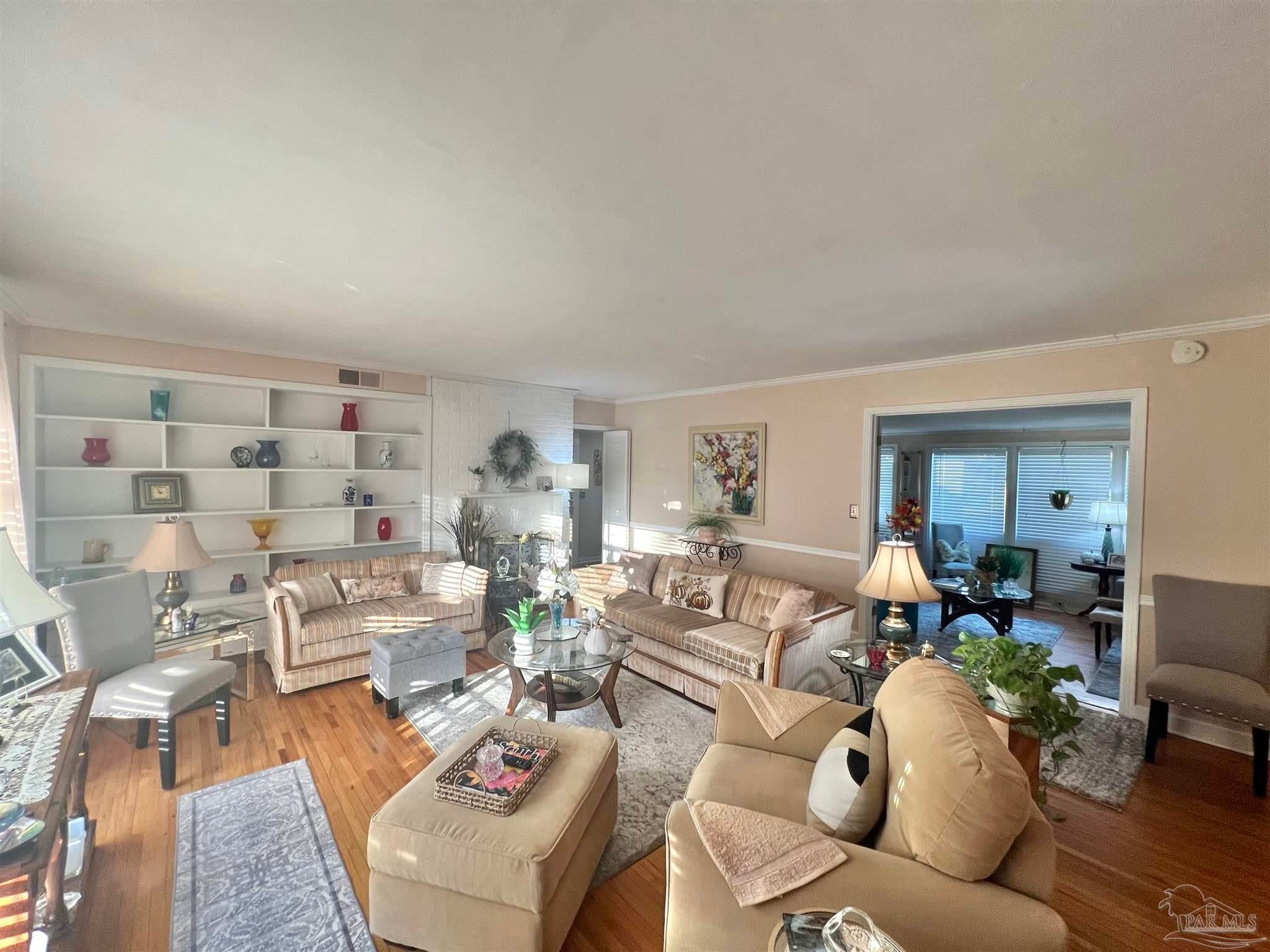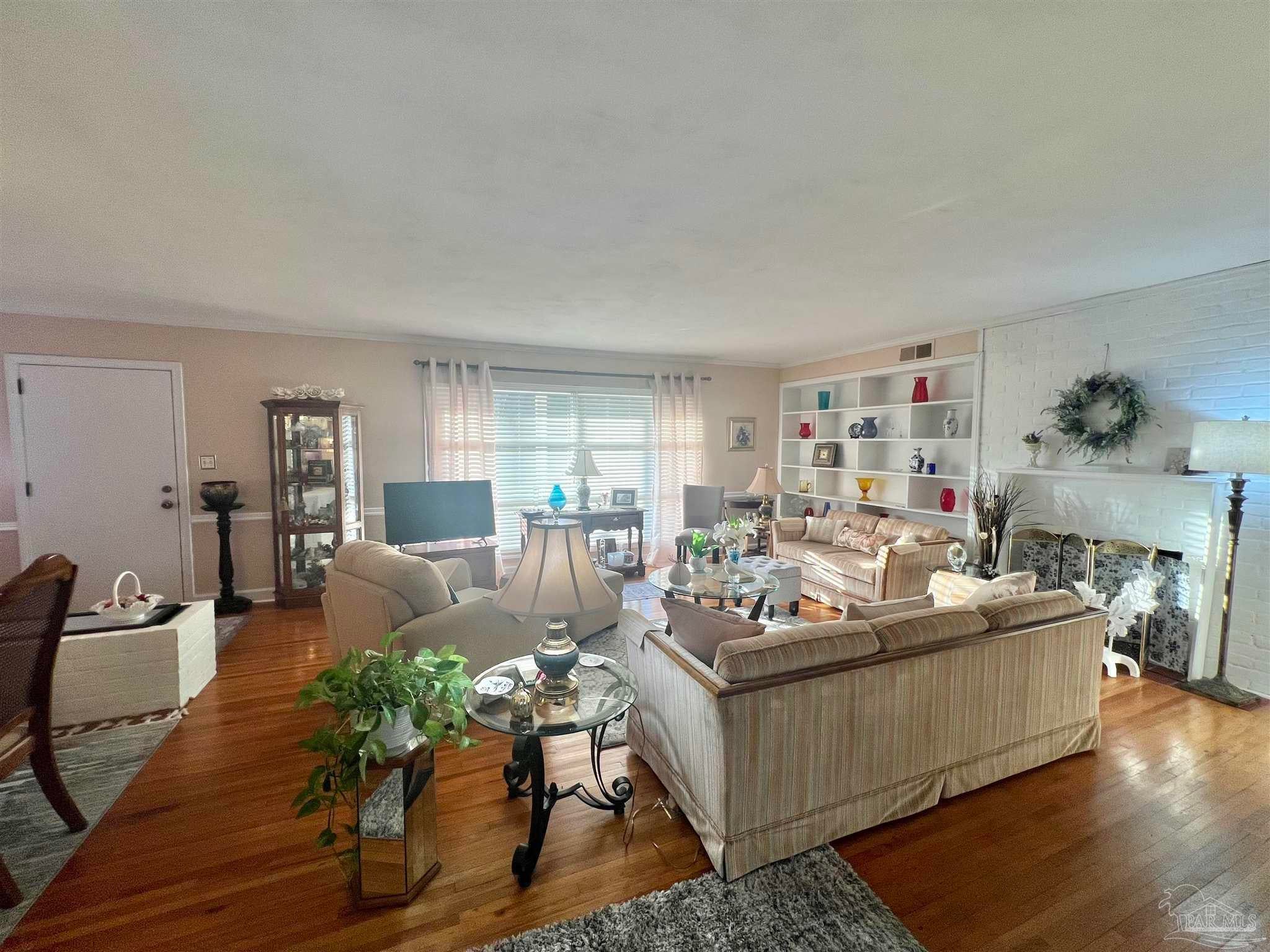 Discover the charm of this traditional home nestled in a wonderful, established neighborhood. Boasting an oversized lot and 2,282 square feet of meticulously maintained living space, this residence offers a super convenient floorplan designed for comfortable living. Enjoy the bright kitchen with breakfast area, an inviting dining and living room featuring a pristine, never-used wood-burning fireplace, and a cozy den or sunroom perfect for relaxation. Three spacious bedrooms provide ample closet and built-in storage, complemented by original hardwood flooring and durable wood laminate throughout. Step outside to the attached triple carport, cleverly doubled as a patio space ideal for outdoor entertaining. Lovingly cared for and thoughtfully preserved, this home is a must-see to truly appreciate its charm and quality. FORTIFIED ROOF PLACED 2023. WALL HUNG SHELVING IN SUN ROOM DOES NOT CONVEY ALL SQ. FOOTAGE AND DIMENSIONS ARE APPROXIMATE AND IS THE BUYER'S RESPONSIBILITY TO VERIFY DURING DUE DILIGENCE. SELLER REQUIRES 2 HR NOTICE BEFORE SHOWING PLEASE
