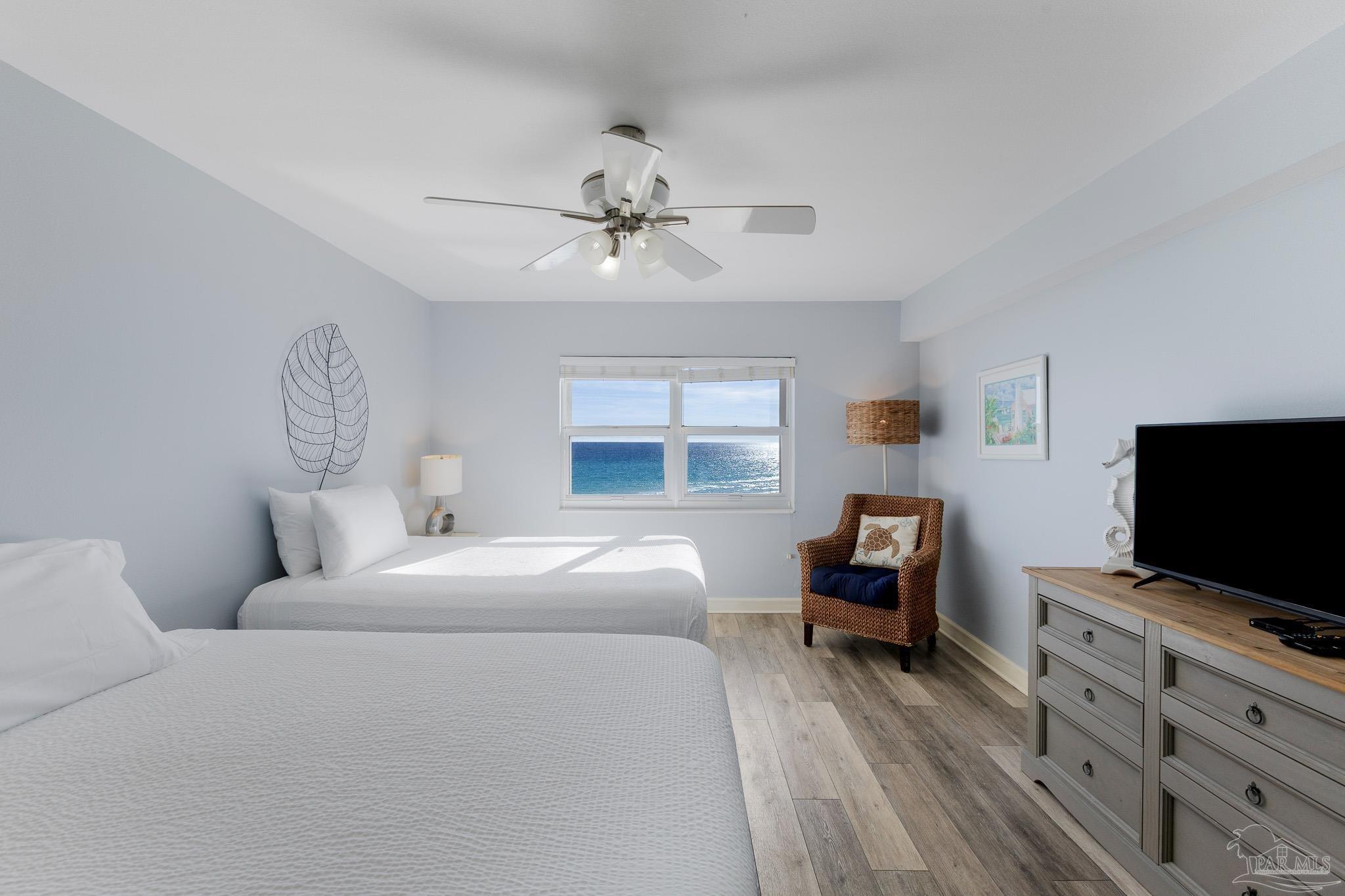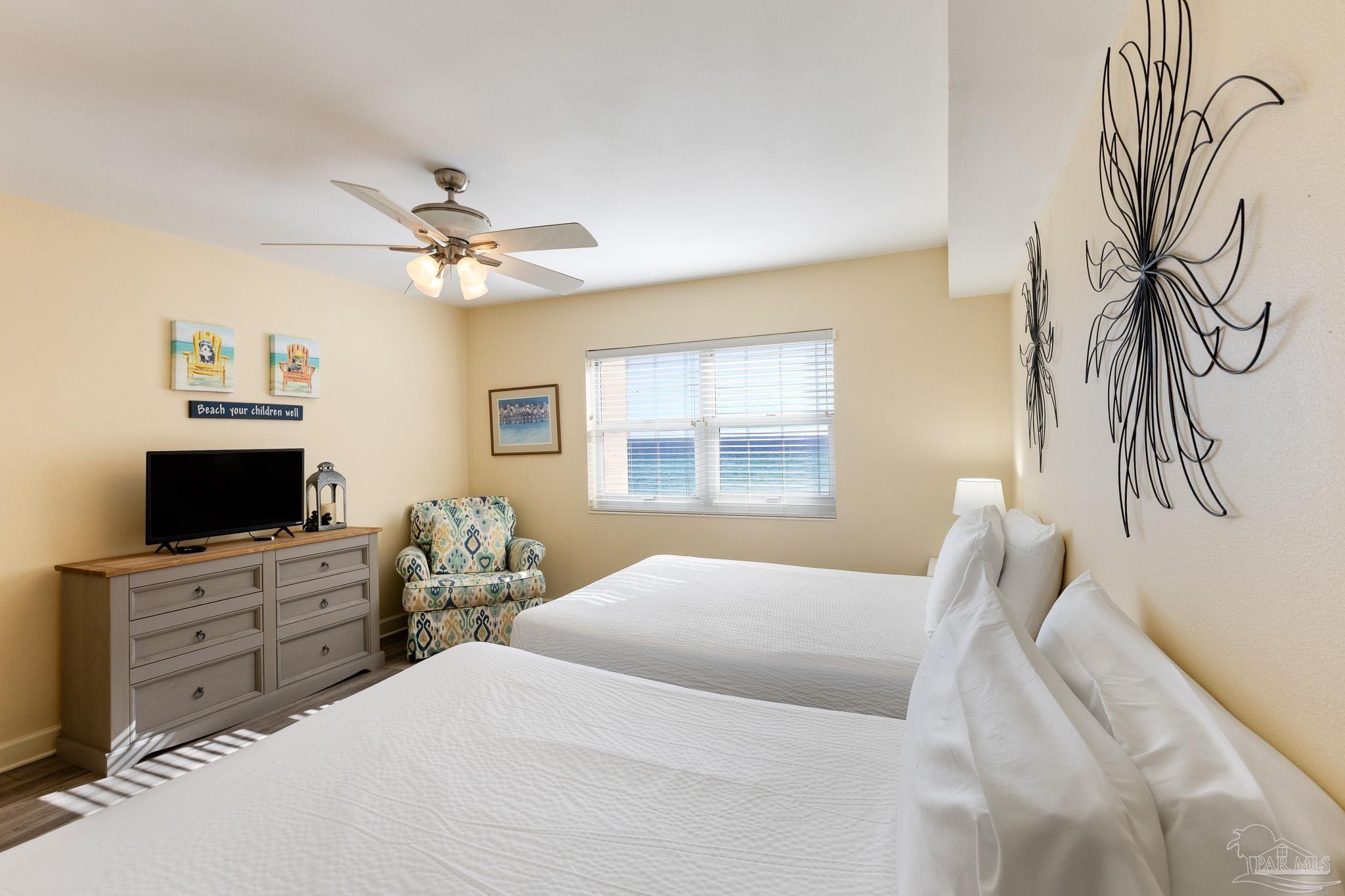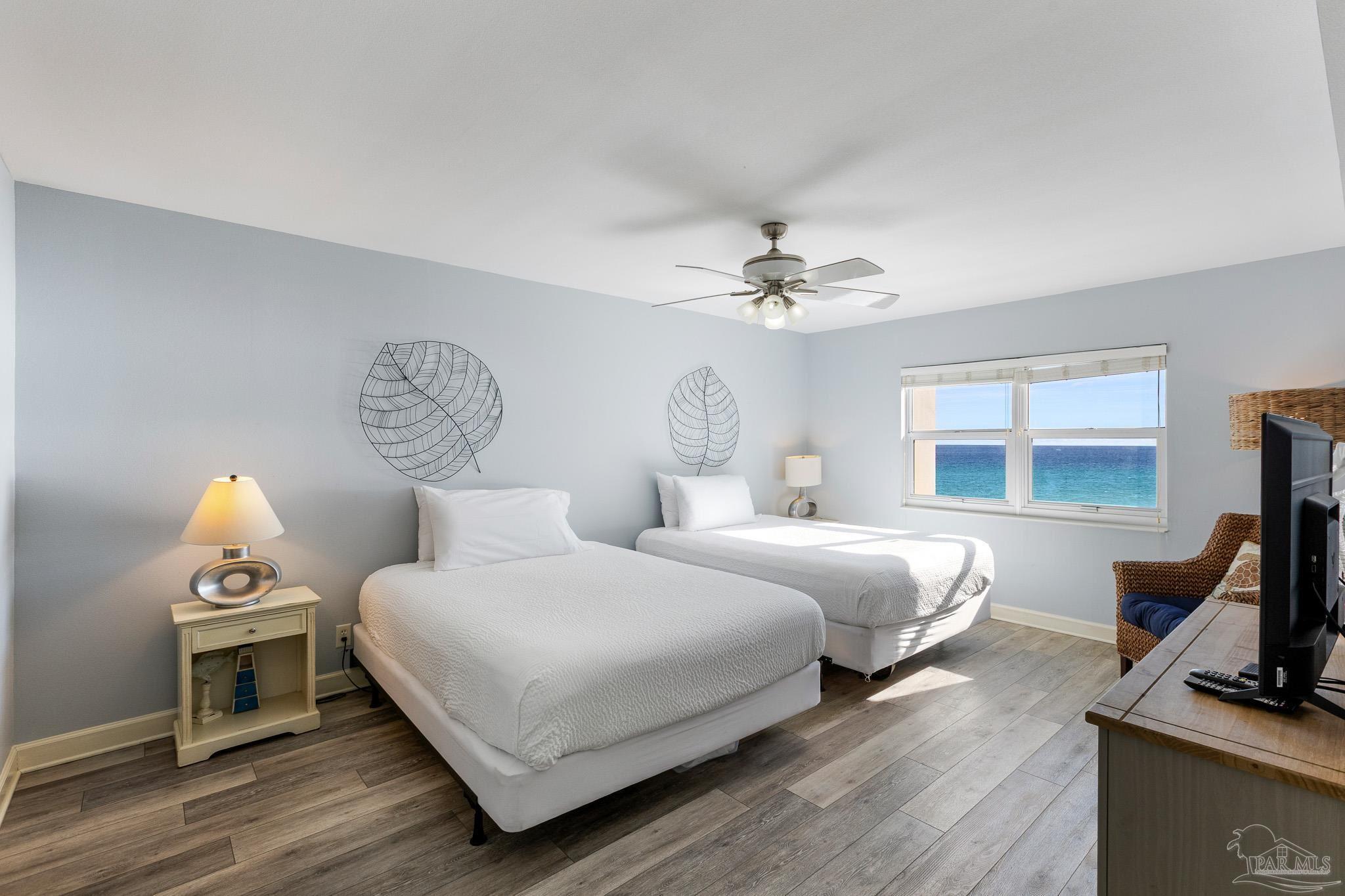 One of the most sought after locations on Pensacola Beach. Looking out your windows or relaxing on your private balcony, you will be captivated by the sweeping beauty of the Gulf of Mexico. From soaring seabirds and peaceful beach life to the iconic Blue Angels tipping their wings overhead, the view alone makes this 2-bedroom, 2-bath condo unforgettable. Perfectly positioned in the interior of the building, this residence offers enhanced comfort and quiet while still delivering the stunning gulf vistas you came for. Step inside and discover a fully furnished, thoughtfully designed layout with an open living area that maximizes space for gathering, unwinding, and taking in the scenery. The fully stocked kitchen leads right into the dining/living room creating more room in the main living area for relaxation or play. Both bedrooms feature private en-suite baths and picturesque views, making each space feel like its own retreat. The private balcony includes a convenient storage room—ideal for keeping beach toys, chairs, and gear close at hand. Regency Towers surrounds you with a resort-style atmosphere, offering a host of amenities including a fitness center, tennis courts, a clubhouse overlooking a tranquil lagoon, and a large community pool with front-row views of the beach. Located on the quieter side of the beach, the condo is just a free trolley ride or easy bike cruise to beachside dining, shopping, and entertainment—and only a short drive over the bridge to the charm and culture of Pensacola. Whether you’re seeking an investment, a vacation haven, or a full time living by the sea, this gulf-view gem has everything you’ve been looking for.