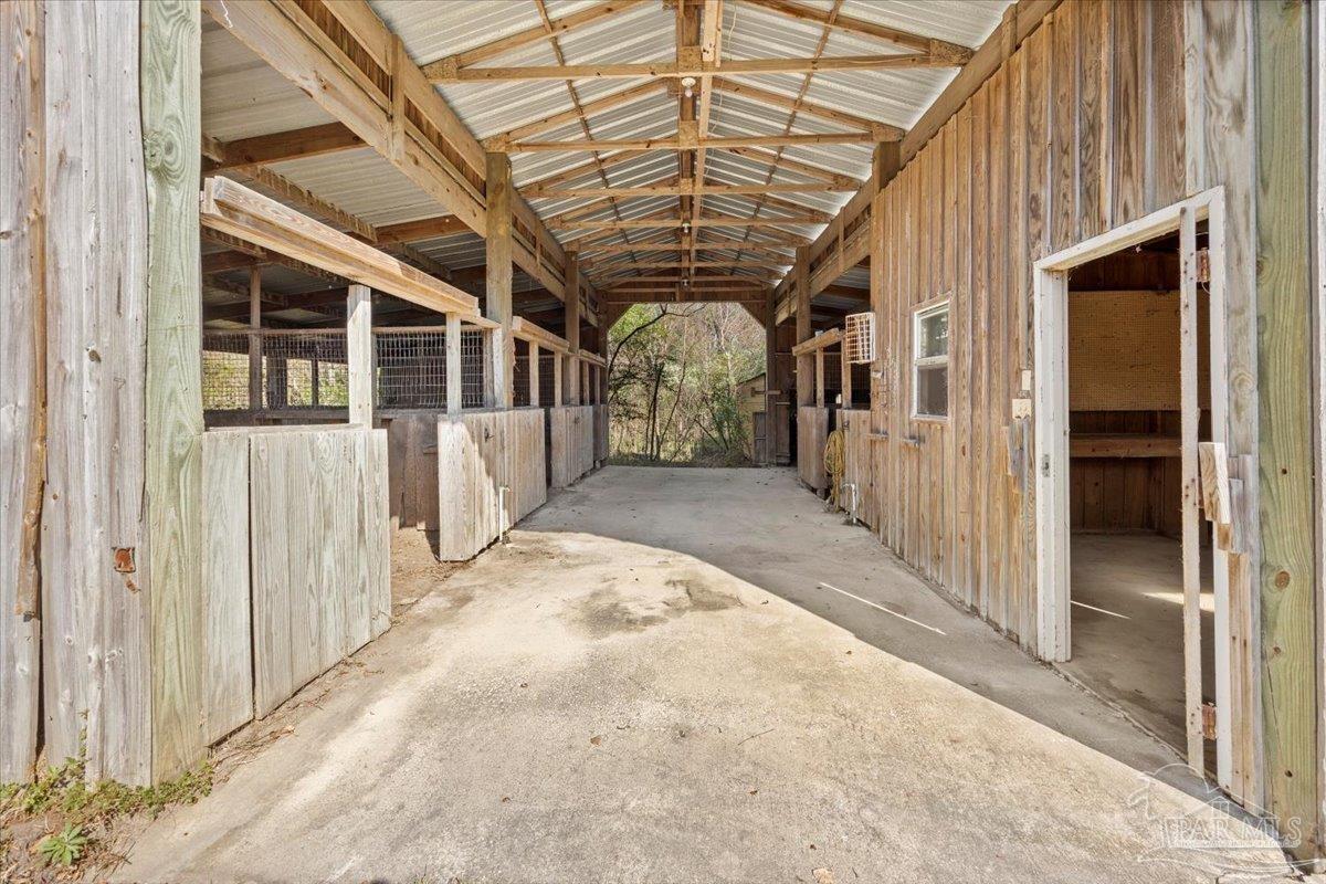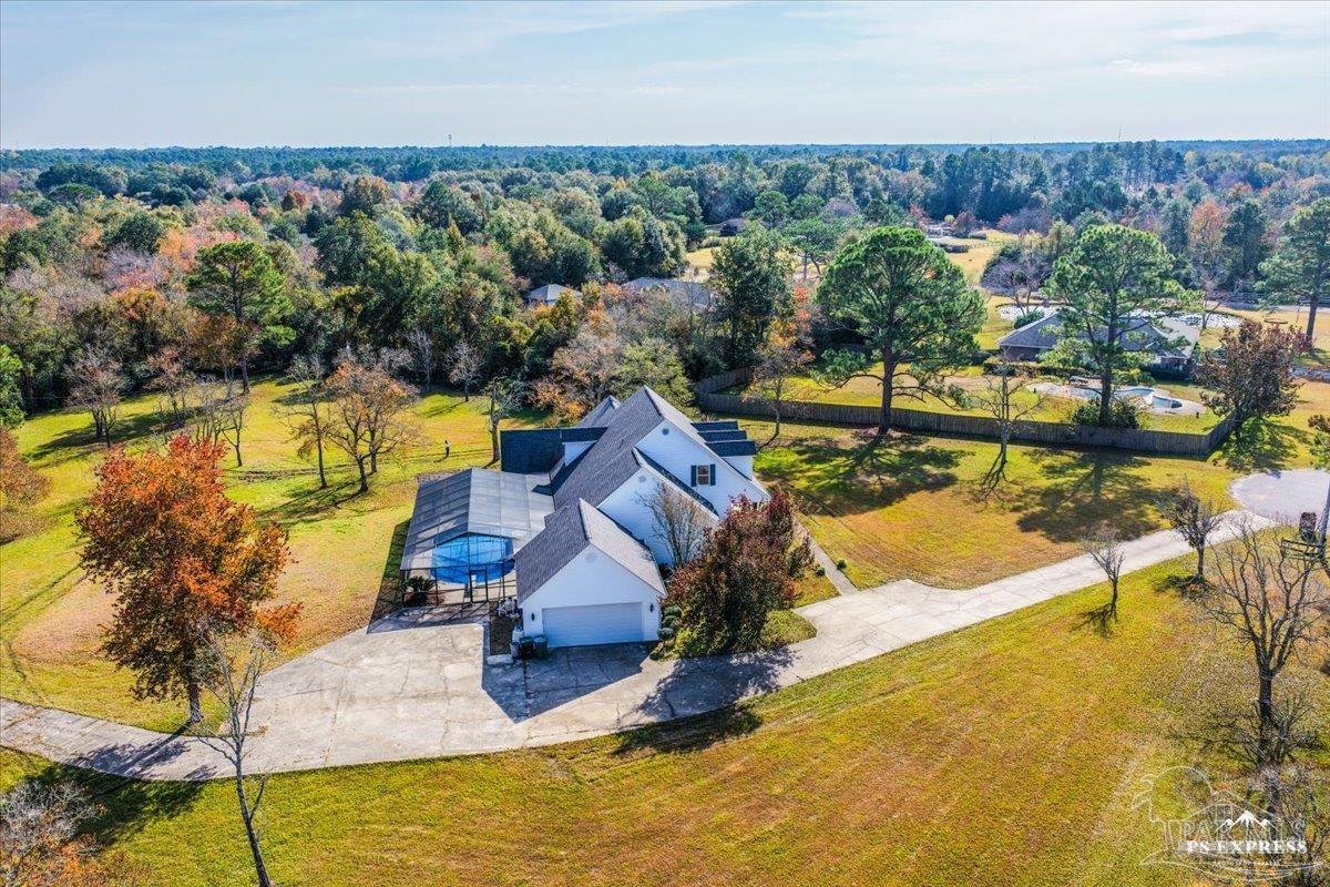 Located in the highly sought-after Meander Farm Estates, this beautiful four-bedroom, three-and-a-half-bath home sits on just over 4 acres of peaceful countryside and offers a rare opportunity to own acreage in one of Cantonment’s most desirable neighborhoods. The property features a horse stable and barn with a pasture that could be cleared to fulfill your equestrian dreams. The property also features a screened-in pool and patio a perfect place for outdoor living and entertaining. Inside, you’ll find a main-floor primary suite, a spacious kitchen, and a welcoming living area with seamless indoor-outdoor flow. The roof was replaced in 2021 & the HVAC (3 systems) were replaced in 2025 leaving cosmetic touches to make it your own. With its acreage, prime location, and family-friendly layout, this home combines country charm with incredible potential — ready to be transformed into your dream residence.