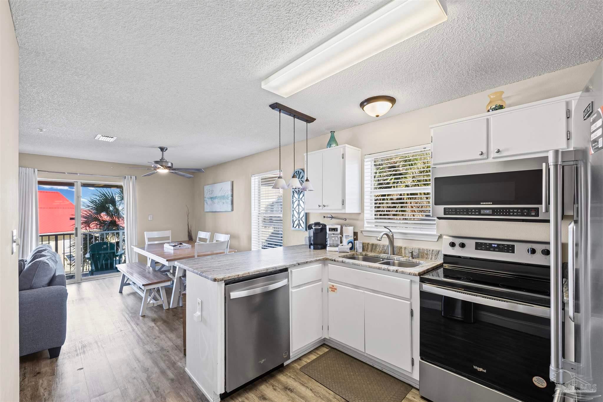 Beautifully Furnished Updated 2nd Floor Unit in Sunset Harbour Villas! This 3 bedroom, 2 bath condo is perfect for your primary residence, or investment property (short term rentals allowed). All new Beautiful luxury vinyl flooring throughout. New Ceiling Fans for great air flow. Move in Ready with ALL NEW Kitchen appliances and Granite Counter tops, HVAC replaced in 2020 plus a brand new Water Heater. Sit out on your balcony and enjoy the ocean breeze, or take just a short walk (less than 5 minutes) to the Gulf of Mexico. Enjoy the Island Life, as you walk for miles along the white sandy beaches, or enjoy the paved Bike Path or kayak, Fish or paddle board in the Santa Rosa Sound. Unit Also includes use of a Club House for family gatherings and Grills by the Pool.