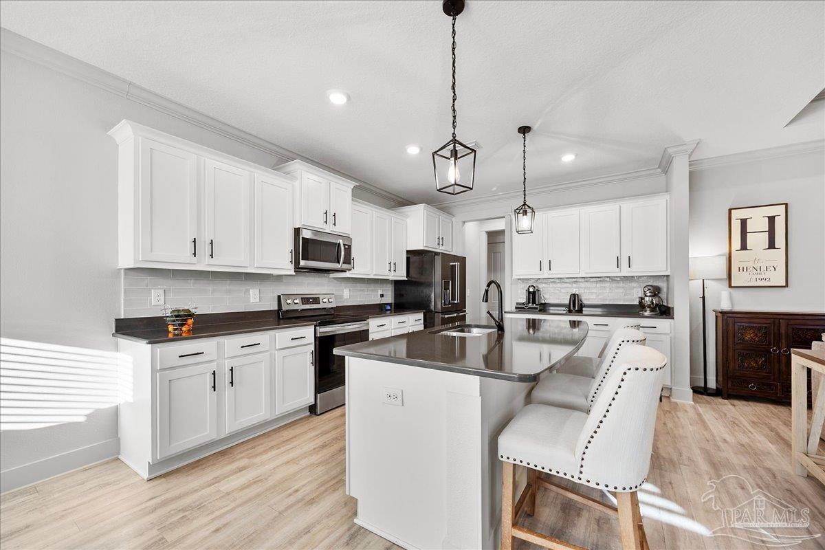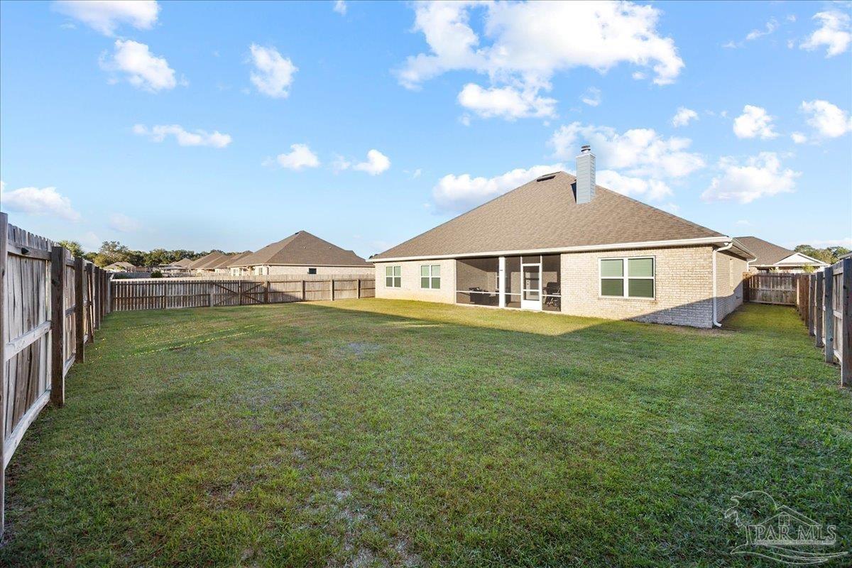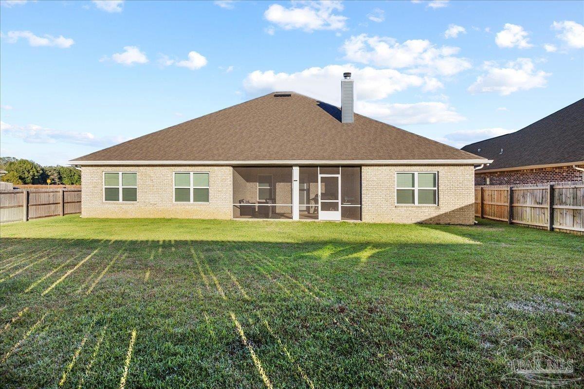 Experience luxury and comfort with this beautiful home. Constructed in 2021, this home has new custom paint throughout, new light fixtures, screened in back patio, irrigation system, privacy fence, custom pantry, new backsplash in the kitchen and installed interior blinds on the front door sidelites and backdoor window. Once you walk in, you'll notice the huge foyer to welcome guests, the nice sized dining area that is currently an office and the beautiful great room that is open to the kitchen. The kitchen has quartz countertops, white cabinets, custom backsplash and pendant lights) with a breakfast room that overlooks the backyard. There are four bedrooms that are all downstairs. The spacious primary bedroom overlooks the backyard and the ensuite bath includes a quartz top double vanity, a custom renovated walk-in closet and a gorgeous seamless glass shower and soaking tub. All of the flooring is luxury vinyl plank except for the primary bath, the stairs and the bonus room. The upstairs bonus room with plenty of light, has its own thermostat and tons of space. It can be a child's playroom, a hobby room or anything you want! The screened in porch and the huge backyard are just waiting for the next family to make it their own. Check out the large three car garage offering even more space for whatever you desire.