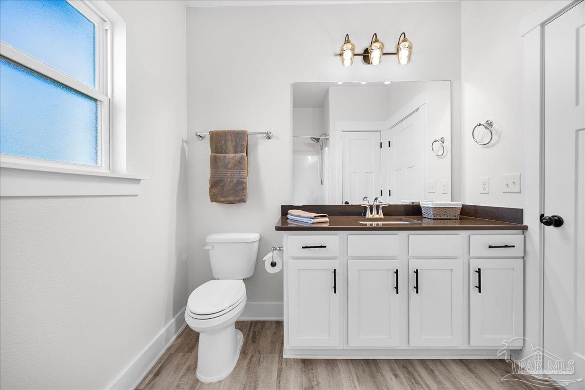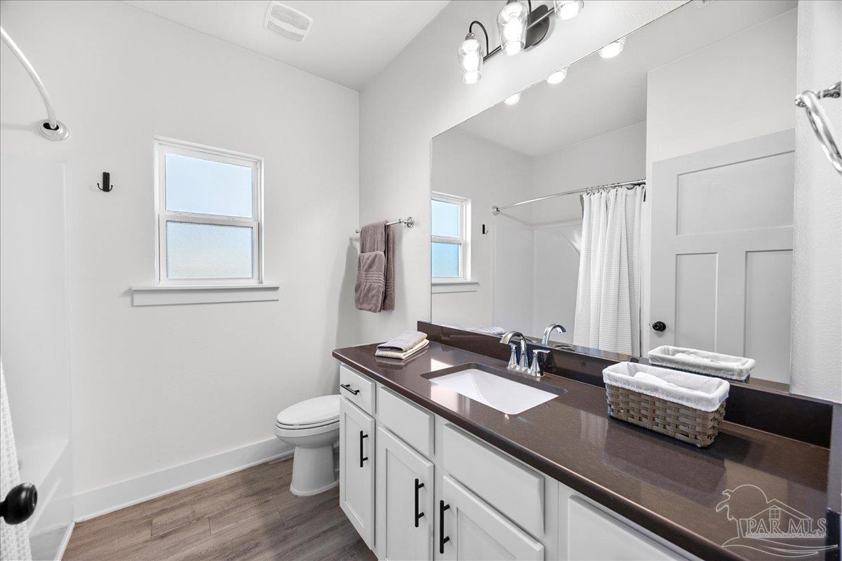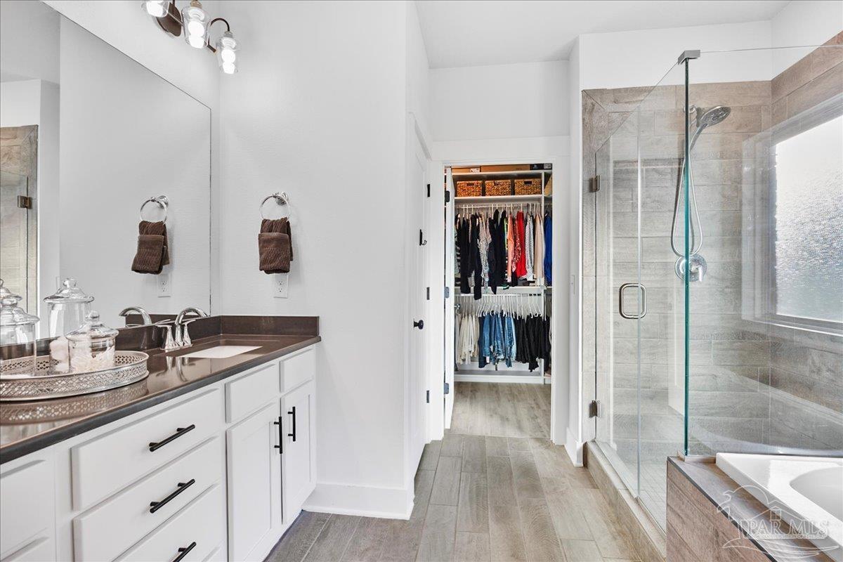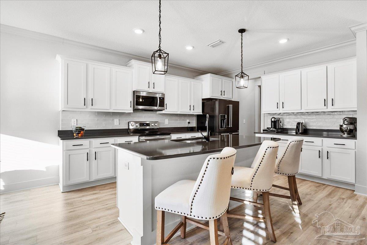 Experience luxury and comfort with this beautiful home. Constructed in 2021, this home has new custom paint throughout, new light fixtures, screened in back patio, irrigation system, privacy fence, custom pantry, new backsplash in the kitchen and installed interior blinds on the front door sidelites and backdoor window. Once you walk in, you'll notice the huge foyer to welcome guests, the nice sized dining area that is currently an office and the beautiful great room that is open to the kitchen. The kitchen has quartz countertops, white cabinets, custom backsplash and pendant lights) with a breakfast room that overlooks the backyard. There are four bedrooms that are all downstairs. The spacious primary bedroom overlooks the backyard and the ensuite bath includes a quartz top double vanity, a custom renovated walk-in closet and a gorgeous seamless glass shower and soaking tub. All of the flooring is luxury vinyl plank except for the primary bath, the stairs and the bonus room. The upstairs bonus room with plenty of light, has its own thermostat and tons of space. It can be a child's playroom, a hobby room or anything you want! The screened in porch and the huge backyard are just waiting for the next family to make it their own. Check out the large three car garage offering even more space for whatever you desire.