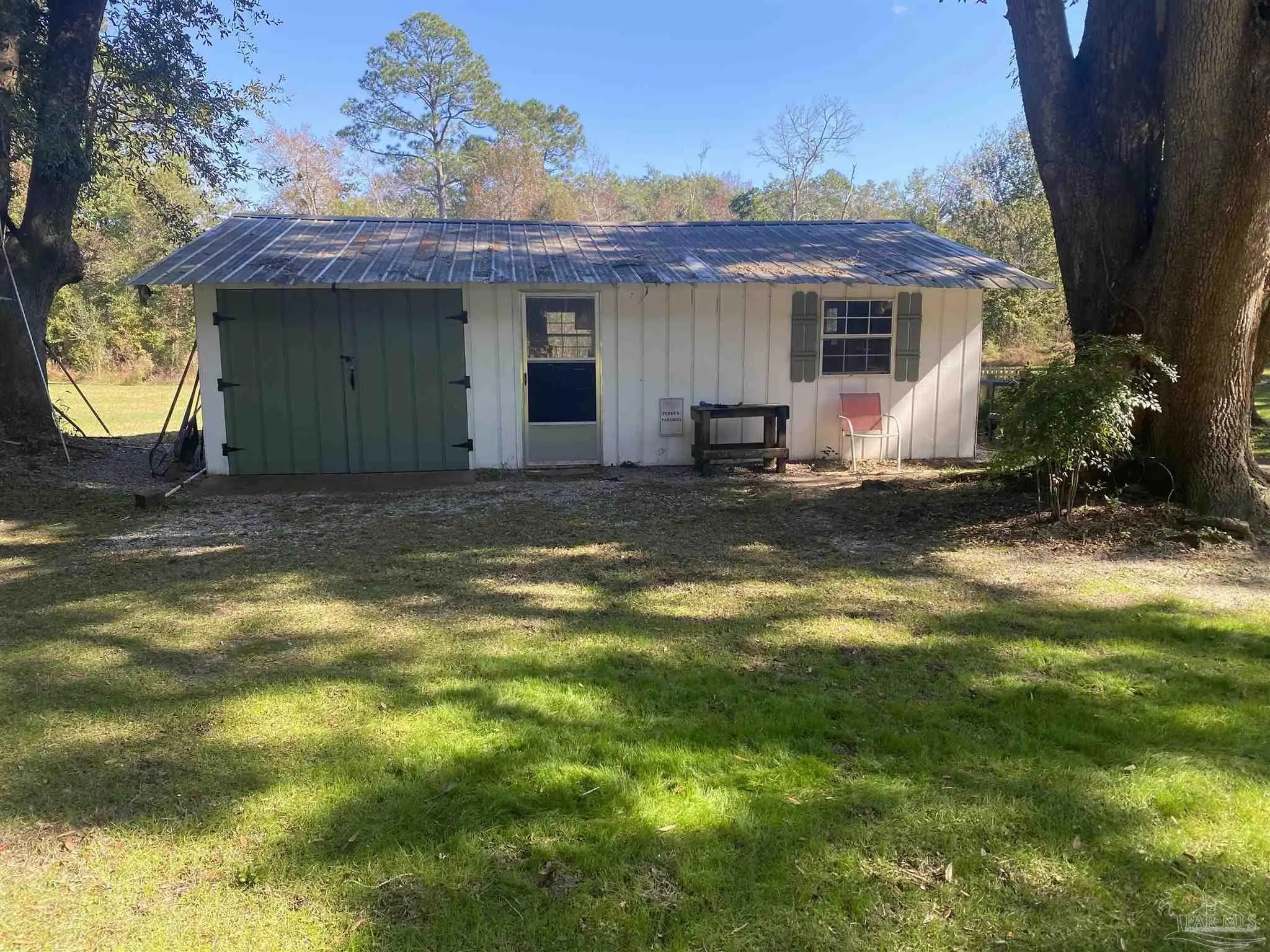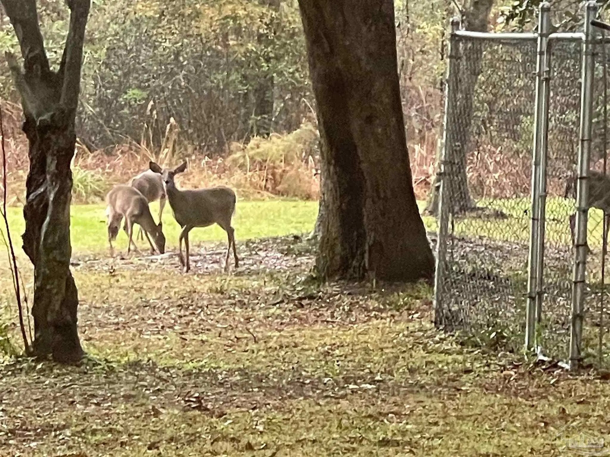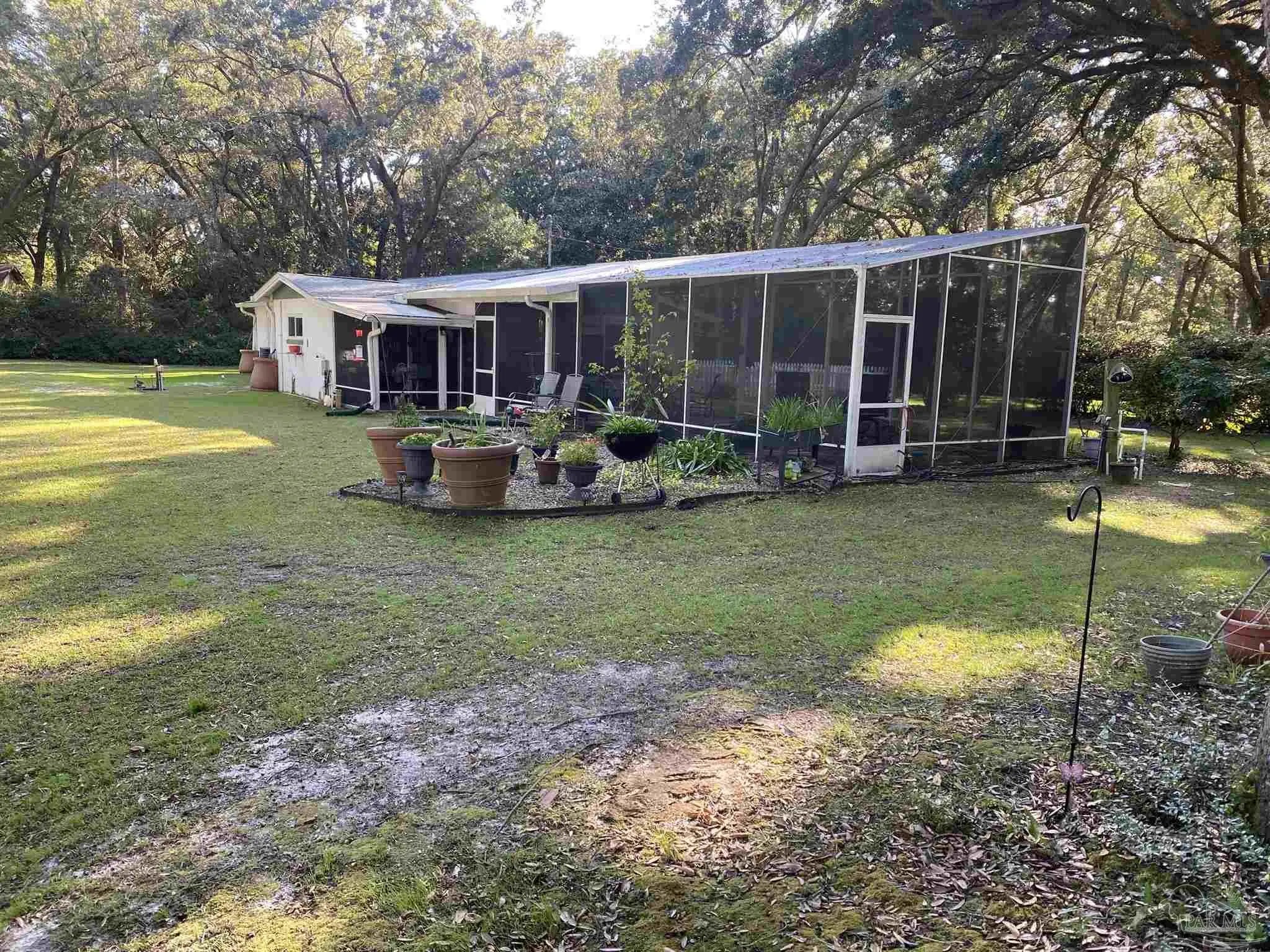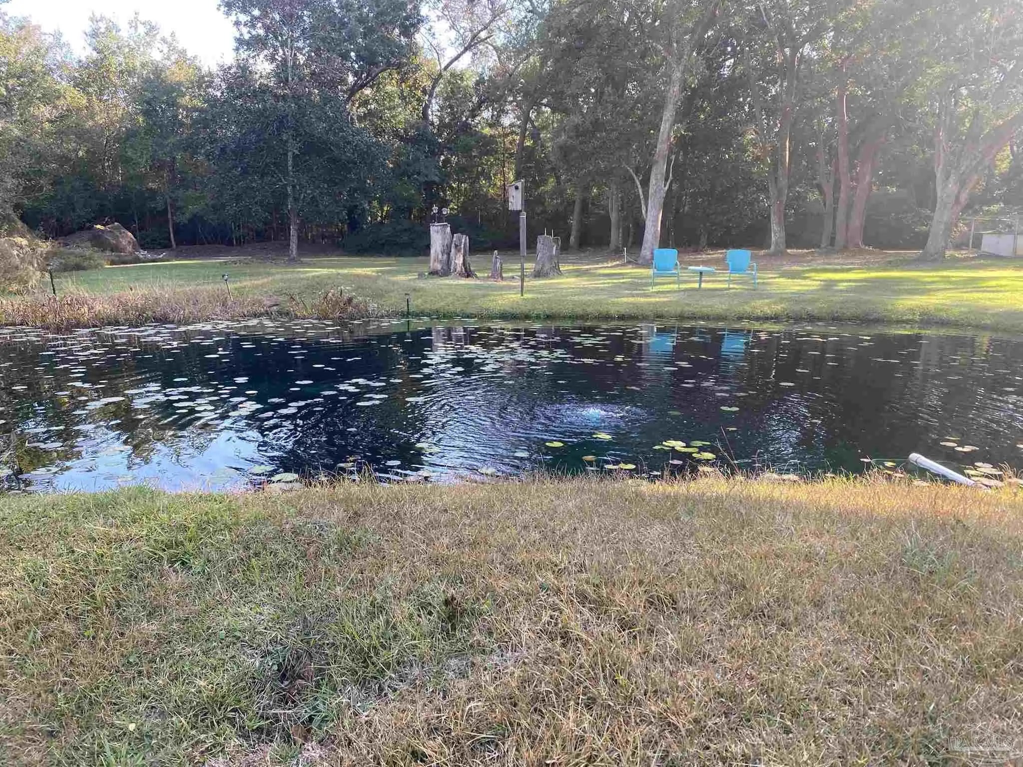 Your Paradise awaits! Nestled under stately oaks and natural surroundings, this 3-bedroom, 2-bath home offers more than just a place to call home ... It’s a place to really live. With over 2 acres of land, 5 Heritage oaks, a pond with freshwater fish, a 25’ x 40’ workshop, 3 large canopies for car and equipment storage, a large screened-in porch, 16’ x 50’ in size, offering plenty of room for entertainment and activities, you will likely spend more time outside than in. There are 26 acres of undeveloped land that border the back of the property. The owners report that along with other wildlife, deer most often visit their backyard pond. This home was fully renovated in 2017. Although some original elements remain, most of the home is 'like new'. Both bathrooms have fully tiled showers and the primary bedroom features an oversized closet and office or studio area. This home also has an invisible fence that keeps their dogs within the borders of the property. While the property feels secluded and is mostly quiet, Bennett C Russell Elementary and Avalon Middle Schools are within 5 minutes, you are less than 10 minutes from a boat ramp that accesses Escambia River and Bay, and you can be in Pensacola, Milton or Pace in less than 15 minutes. Yes, the deer and fish shown in the photos are actually from the pond and property!