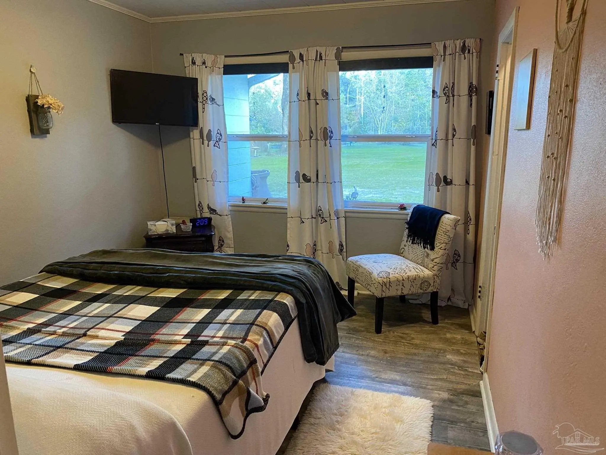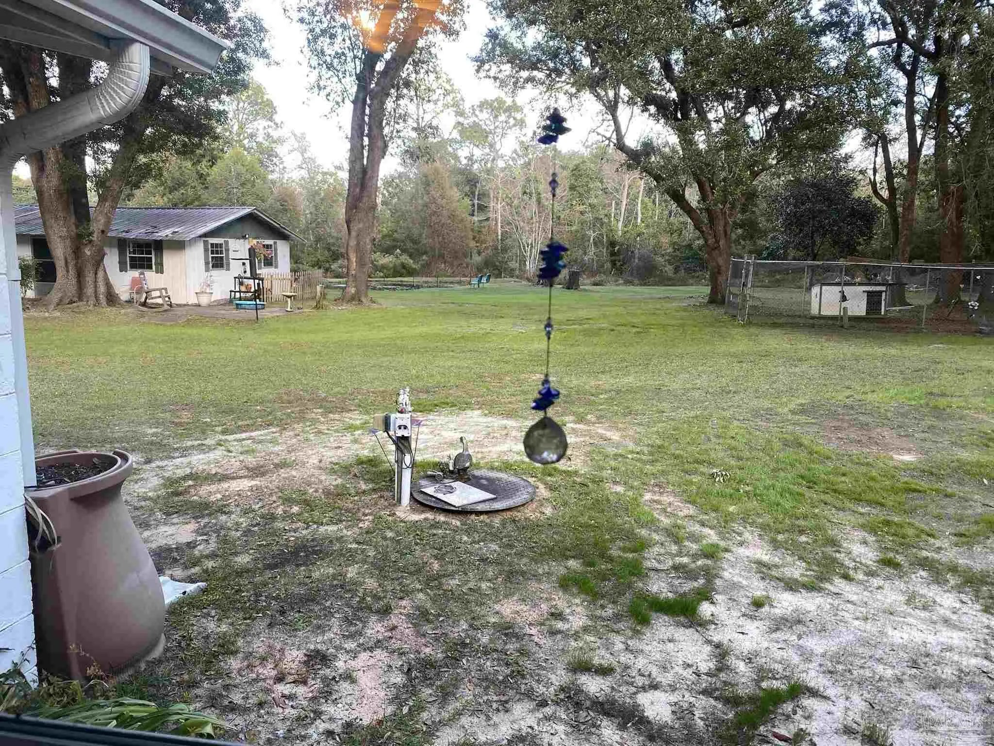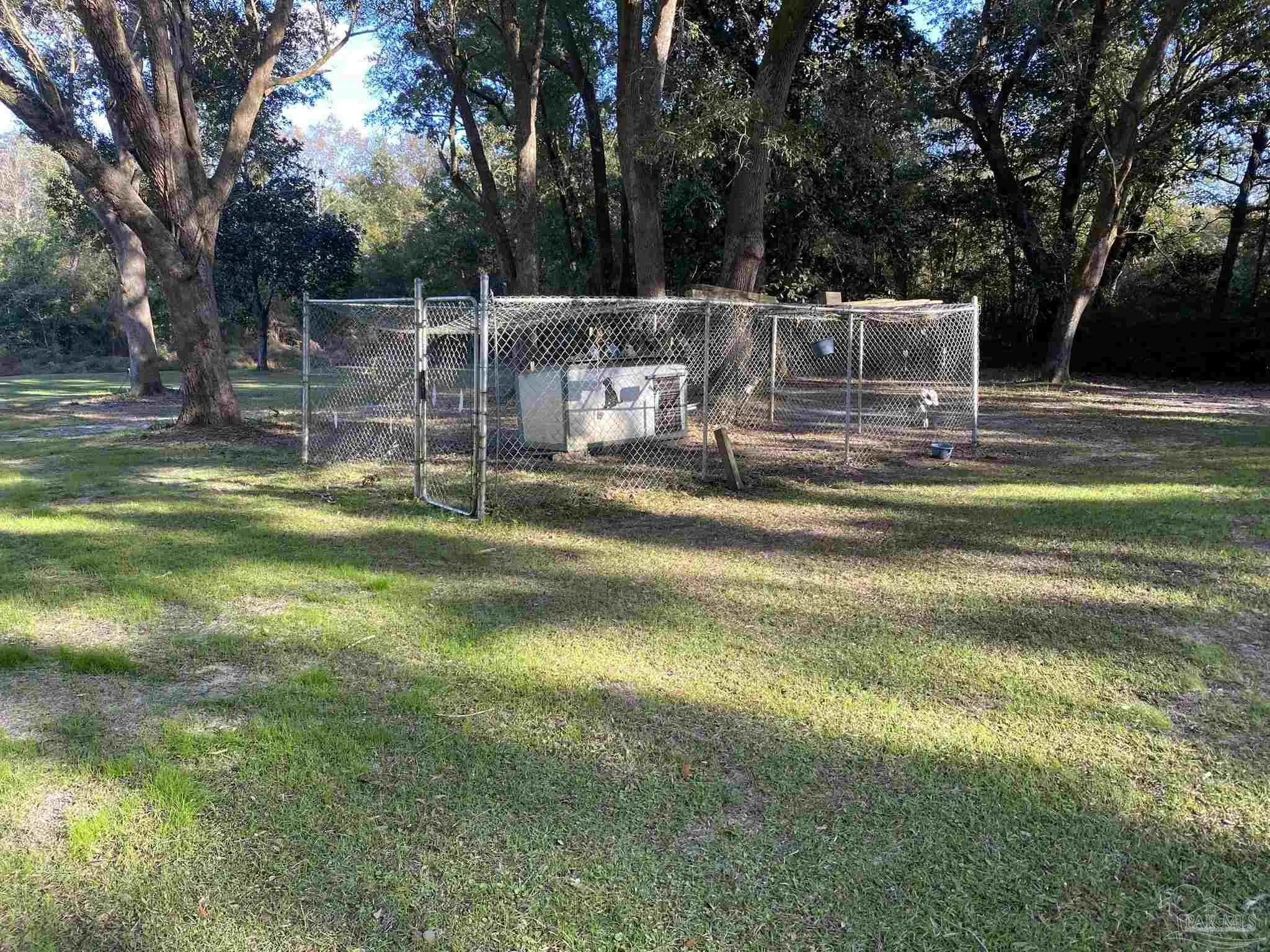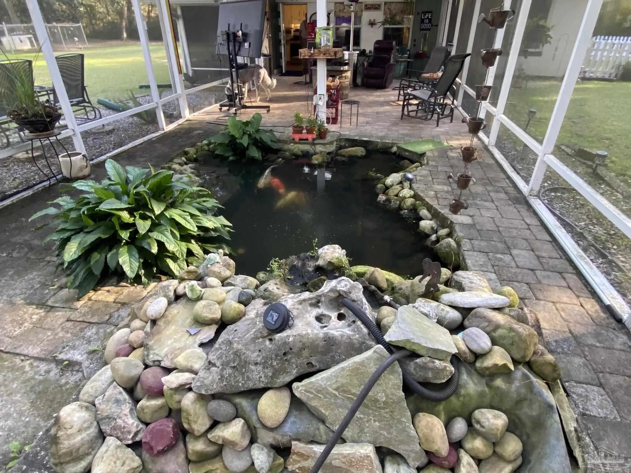Your Paradise awaits! Nestled under stately oaks and natural surroundings, this 3-bedroom, 2-bath home offers more than just a place to call home ... It’s a place to really live. With over 2 acres of land, 5 Heritage oaks, a pond with freshwater fish, a 25’ x 40’ workshop, 3 large canopies for car and equipment storage, a large screened-in porch, 16’ x 50’ in size, offering plenty of room for entertainment and activities, you will likely spend more time outside than in. There are 26 acres of undeveloped land that border the back of the property. The owners report that along with other wildlife, deer most often visit their backyard pond. This home was fully renovated in 2017. Although some original elements remain, most of the home is 'like new'. Both bathrooms have fully tiled showers and the primary bedroom features an oversized closet and office or studio area. This home also has an invisible fence that keeps their dogs within the borders of the property. While the property feels secluded and is mostly quiet, Bennett C Russell Elementary and Avalon Middle Schools are within 5 minutes, you are less than 10 minutes from a boat ramp that accesses Escambia River and Bay, and you can be in Pensacola, Milton or Pace in less than 15 minutes. Yes, the deer and fish shown in the photos are actually from the pond and property!