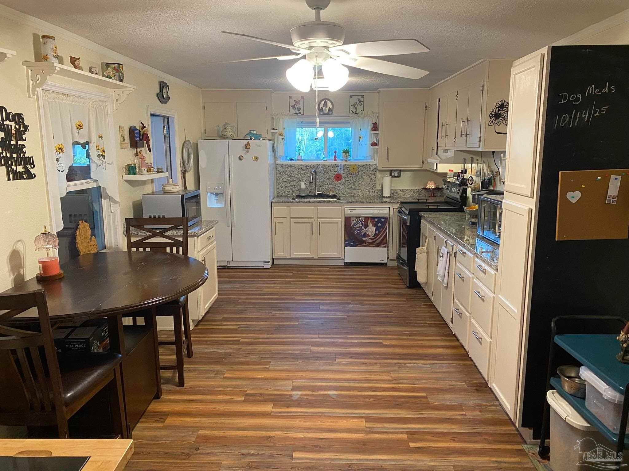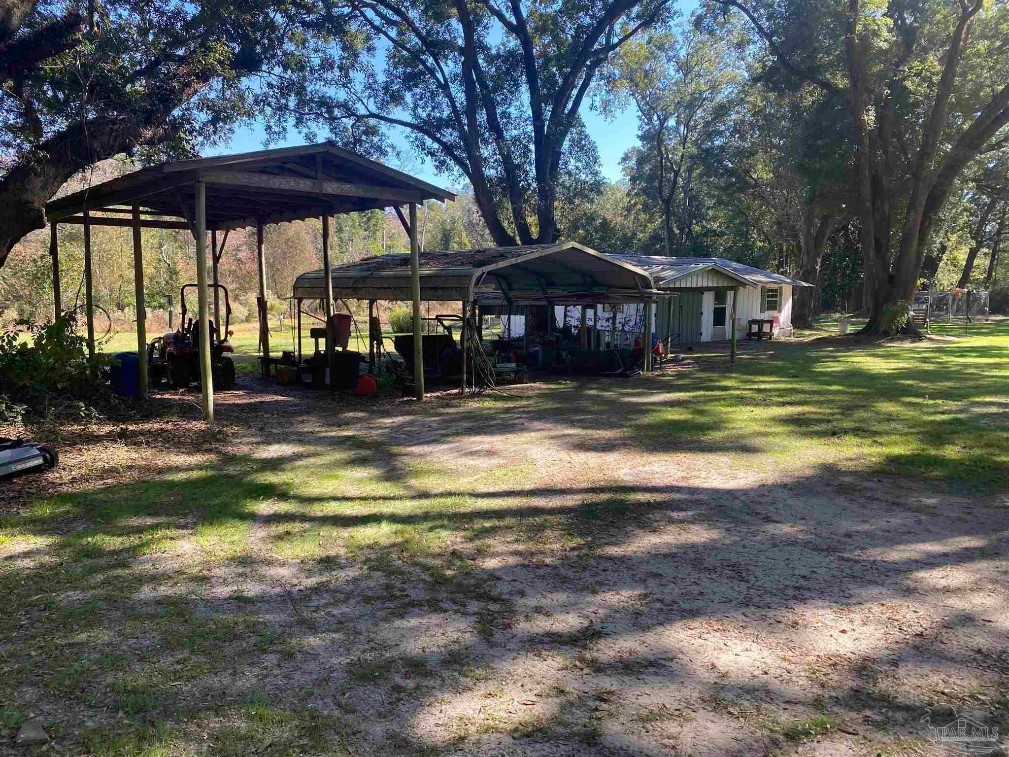 RARE! OVER 2.5 ACRE PRIVATE SANCTUARY WITH FRESHWATER POND, POWERED WORKSHOP & HERITAGE OAKS - Welcome to an extraordinary opportunity to own a rare 2.5+ acre estate where privacy, nature, and infrastructure combine perfectly. Located just minutes from town, this property offers a quiet, peaceful sanctuary that combines space, nature, and infrastructure. The grounds are truly spectacular and feature a permanent Natural Buffer: Enjoy maximum tranquility as the property backs up to a pristine 26-acre wooded parcel, ensuring privacy and frequent sightings of deer and local wildlife. Historic Grandeur: The land is graced by five magnificent Heritage Live Oaks that establish a classic Southern ambiance. This Private Oasis features a tranquil, stocked freshwater pond and a highly valuable 40-foot shallow water well with an automated sprinkler system which covers the front half of the property to help keep the grounds well-maintained, save on water bills and supply the pond. Out Buildings and Storage: the property provides substantial outbuilding space and infrastructure featuring a large 25’x40’ Workshop equipped with power and access to water. There are three open ‘metal’ canopies for convenient vehicle and equipment storage. This extensive space is ideal for those needing room for projects, equipment, or utility storage. This home is updated and ready! This 3 Bedroom, 2 Bath home of 1512 sf was remodeled in 2017 with the following upgrades: a new heat pump, new roof, new windows, granite kitchen countertops, and two fully updated bathrooms with tiled walk-in showers. A favorite feature of this home is easy access to outdoor living. Unwind on the incredibly relaxing 16' x 50' screened porch, which features a rock-lined pond, complete with a waterfall and four large Koi fish. 3372 Childers is conveniently located minutes from elementary and middle schools, a boat ramp, and just minutes to I-10, Pensacola, Milton and Pace.