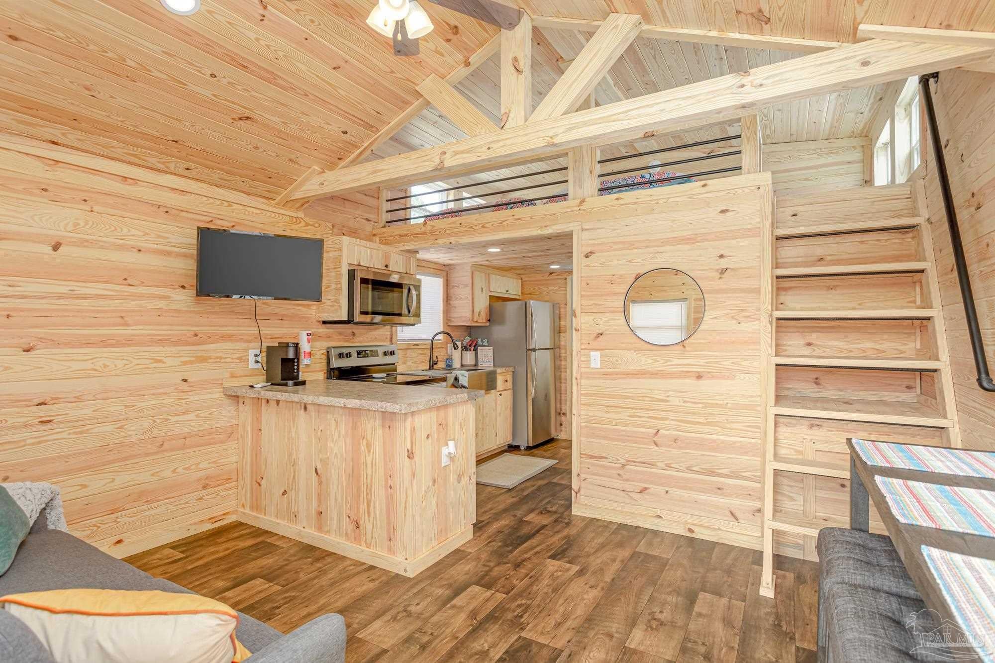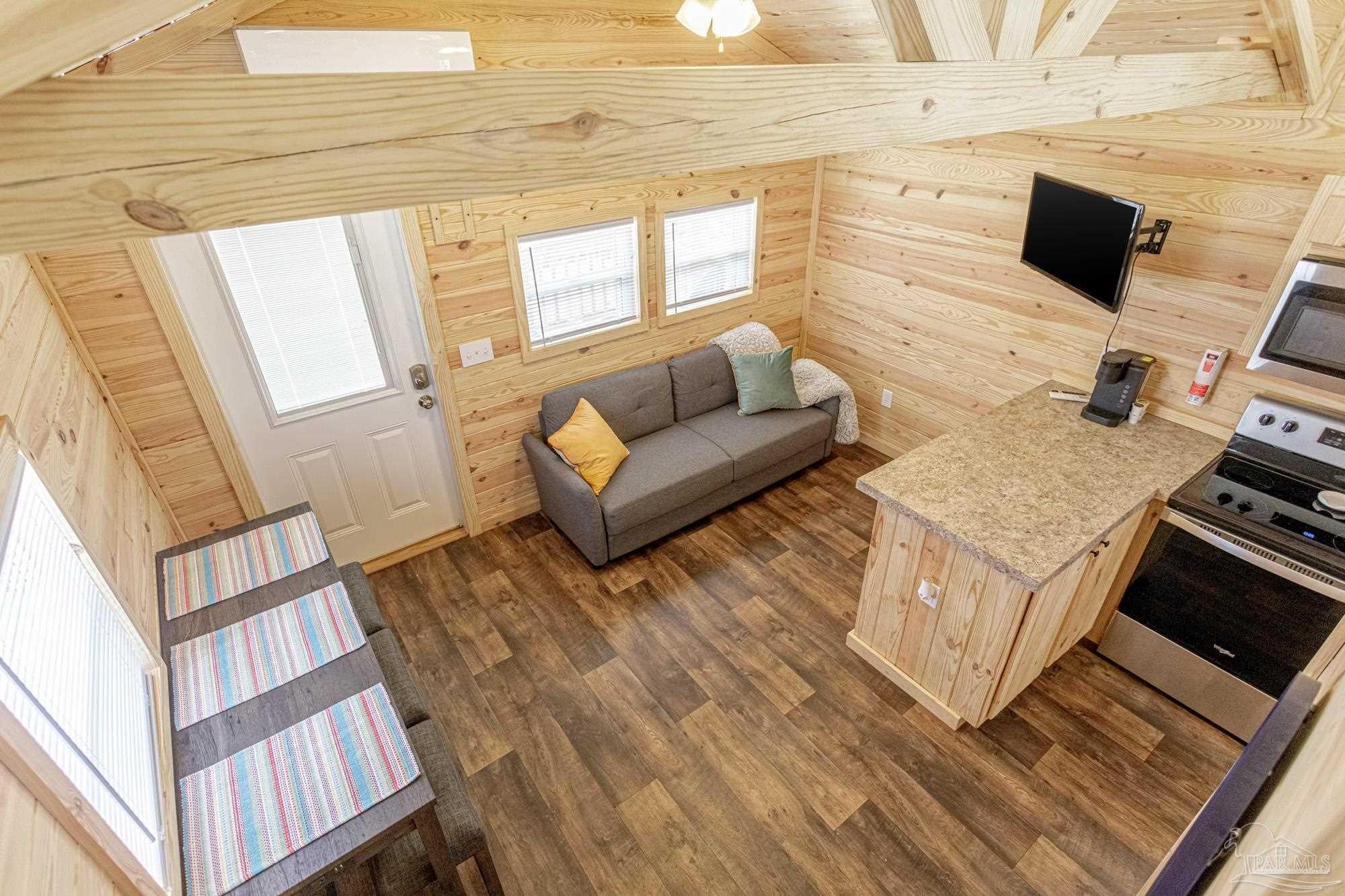 This is a rare opportunity to own a FULLY FURNISHED 1 bedroom & 1 bathroom, plus loft, "tiny home"!!! You can move it to your property to rent as an investment, or use it as a second home, or stay at Leisure Lakes RV Park on the lakefront and pay a monthly fee to use the land and utilities. Built in 2021. Full kitchen, living room, electric fireplace, 1 TV, mini splits for heating and air, and a screened porch. Capable of sleeping 6! Furnishings may not be exactly as pictured.