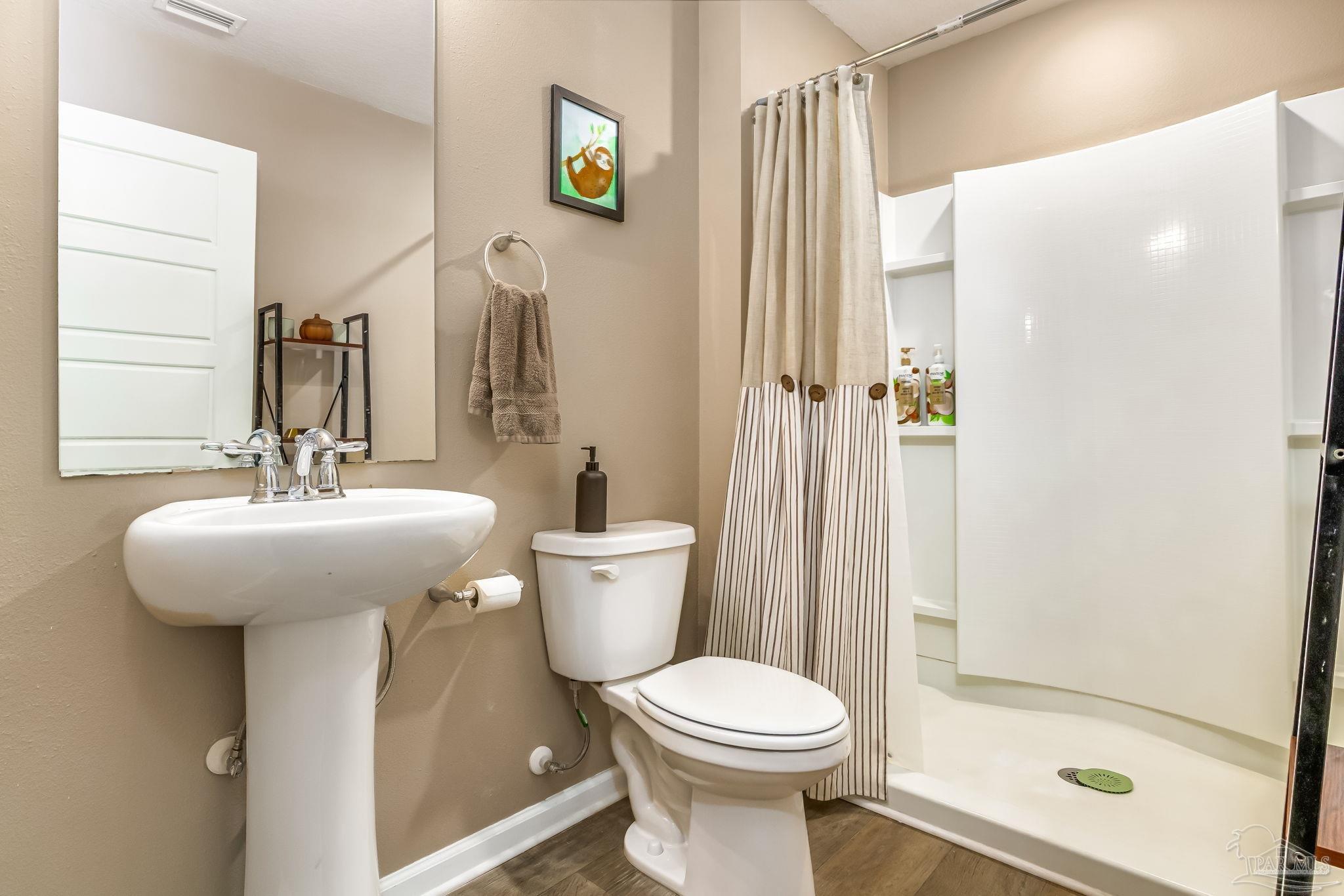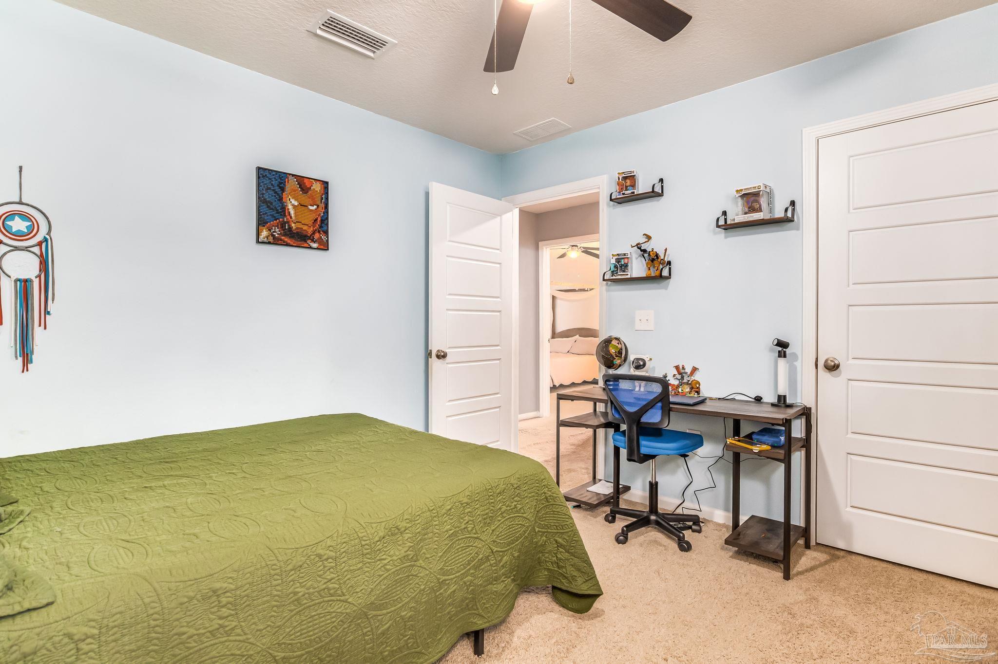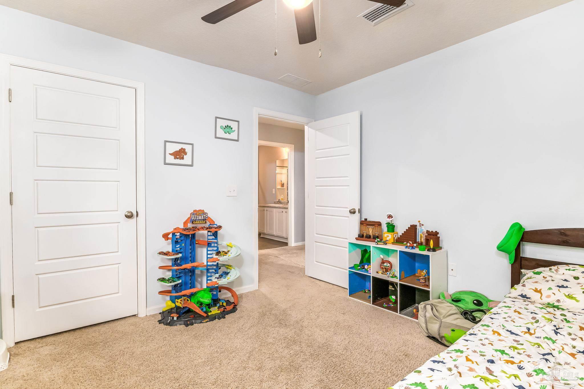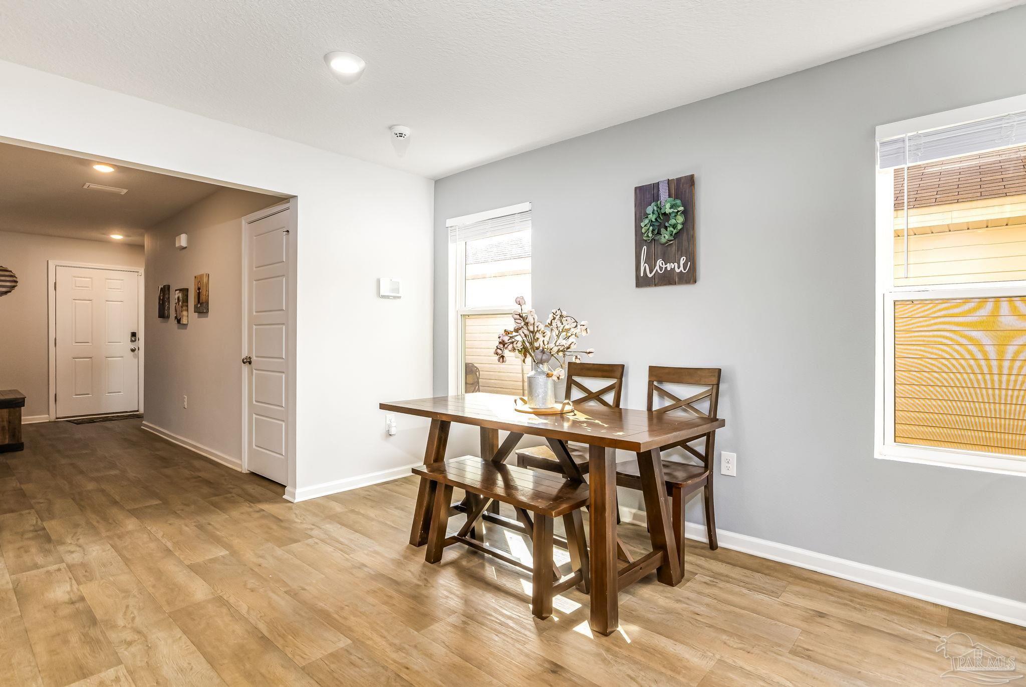Beautifully bright and thoughtfully designed, this 5-bedroom, 3-bath home offers over 2,400 square feet of comfortable, modern living on a quiet cul-de-sac in Pensacola. The main level feels open and sunny from the moment you walk in, with a spacious living area that flows easily into a stylish kitchen featuring a large center island, walk-in pantry, stainless steel appliances, and plenty of room for everyday cooking or weekend gatherings. A first-floor bedroom adds valuable flexibility, ideal for guests, a home office, or a play space. Upstairs, a generous loft provides another light-filled spot to spread out, whether you need a second living area, media room, or workout zone. The primary suite offers a calm, roomy retreat with space to unwind. Outside, the fenced backyard is ready for relaxing, pets, or play, and the covered patio extends your living space outdoors. Located just 30 minutes from Pensacola Beach and close to everyday conveniences, this home blends space, comfort, and an easy, modern feel in a setting that’s hard to beat. Schedule your private showing today!