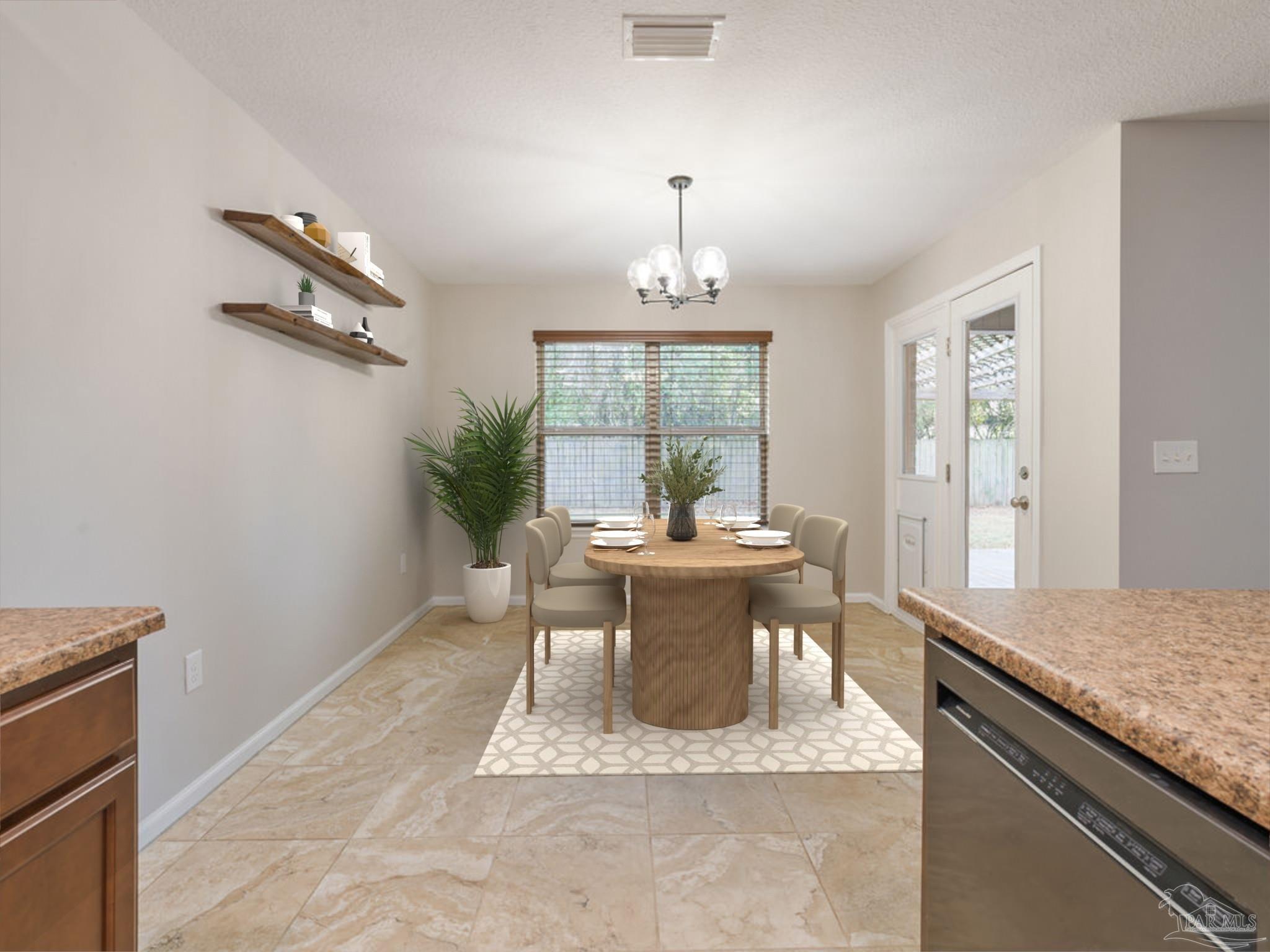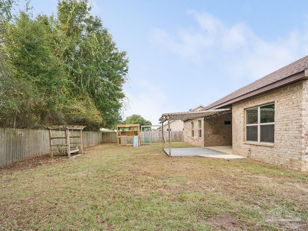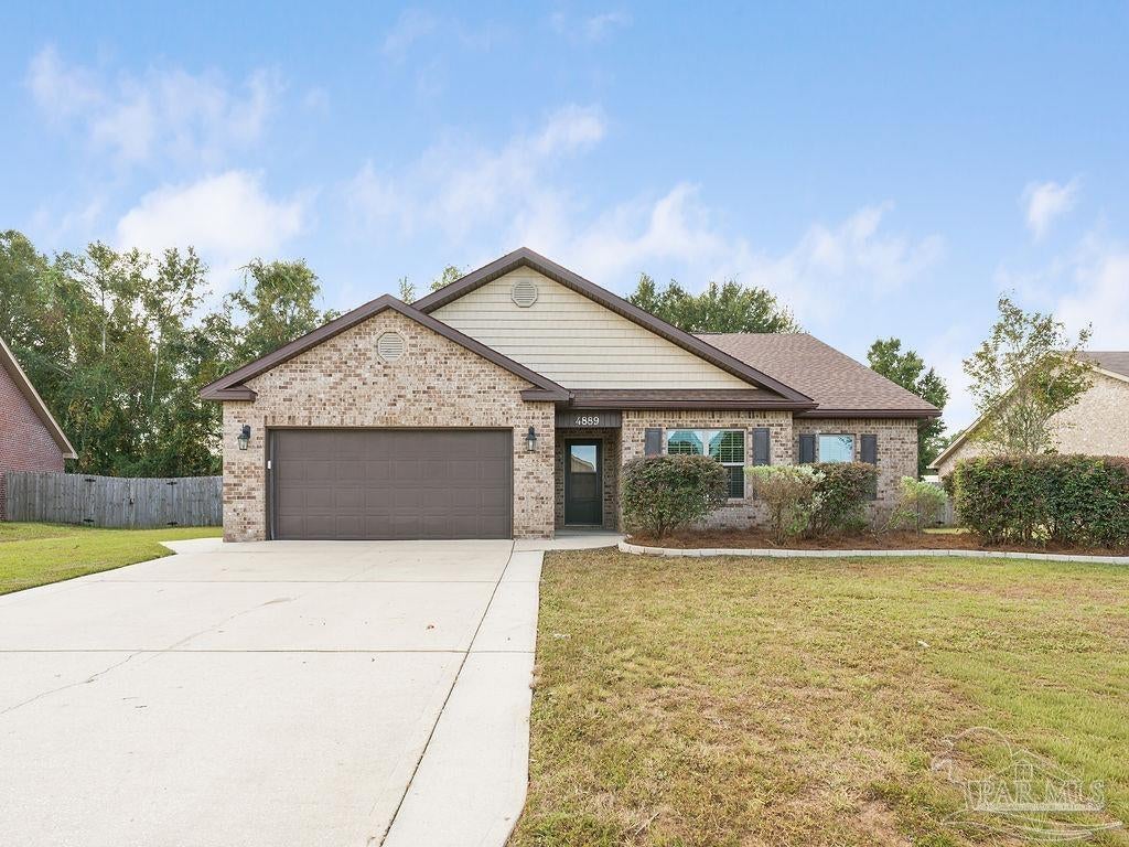 Welcome to this beautifully maintained 4-bedroom, 2-bath all-brick home offering 1,976 square feet of comfortable, thoughtfully designed living space in a convenient Pace location. Inside, you'll find fresh interior paint and brand-new carpet in all bedrooms, creating a bright and inviting atmosphere. The open-concept kitchen flows seamlessly into the living area, making the home ideal for both easy everyday living and effortless entertaining. A new roof installed in 2021, paired with the long-lasting durability of an all-brick exterior, provides excellent peace of mind. The fenced backyard offers a private outdoor escape with plenty of room to relax, host gatherings, or let pets enjoy the space — complete with an existing playset for added convenience. Situated on a spacious lot within a small HOA community, this home offers the perfect balance of privacy and accessibility. You’re just minutes from Publix, Target, dining, shopping, and highly rated local schools. A two-car garage and a series of thoughtful updates make the home move-in ready from day one. With its solid construction, larger lot, and welcoming neighborhood atmosphere, this property delivers exceptional value and everyday comfort in a prime Pace location.