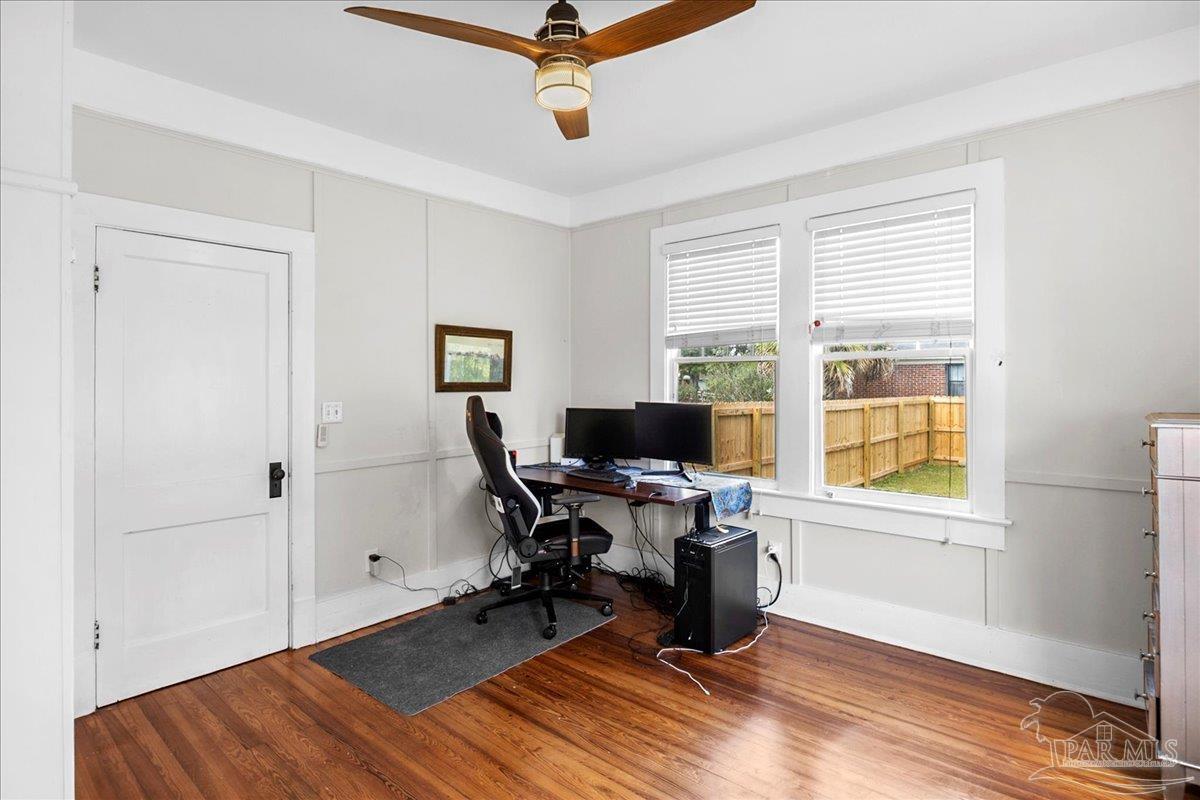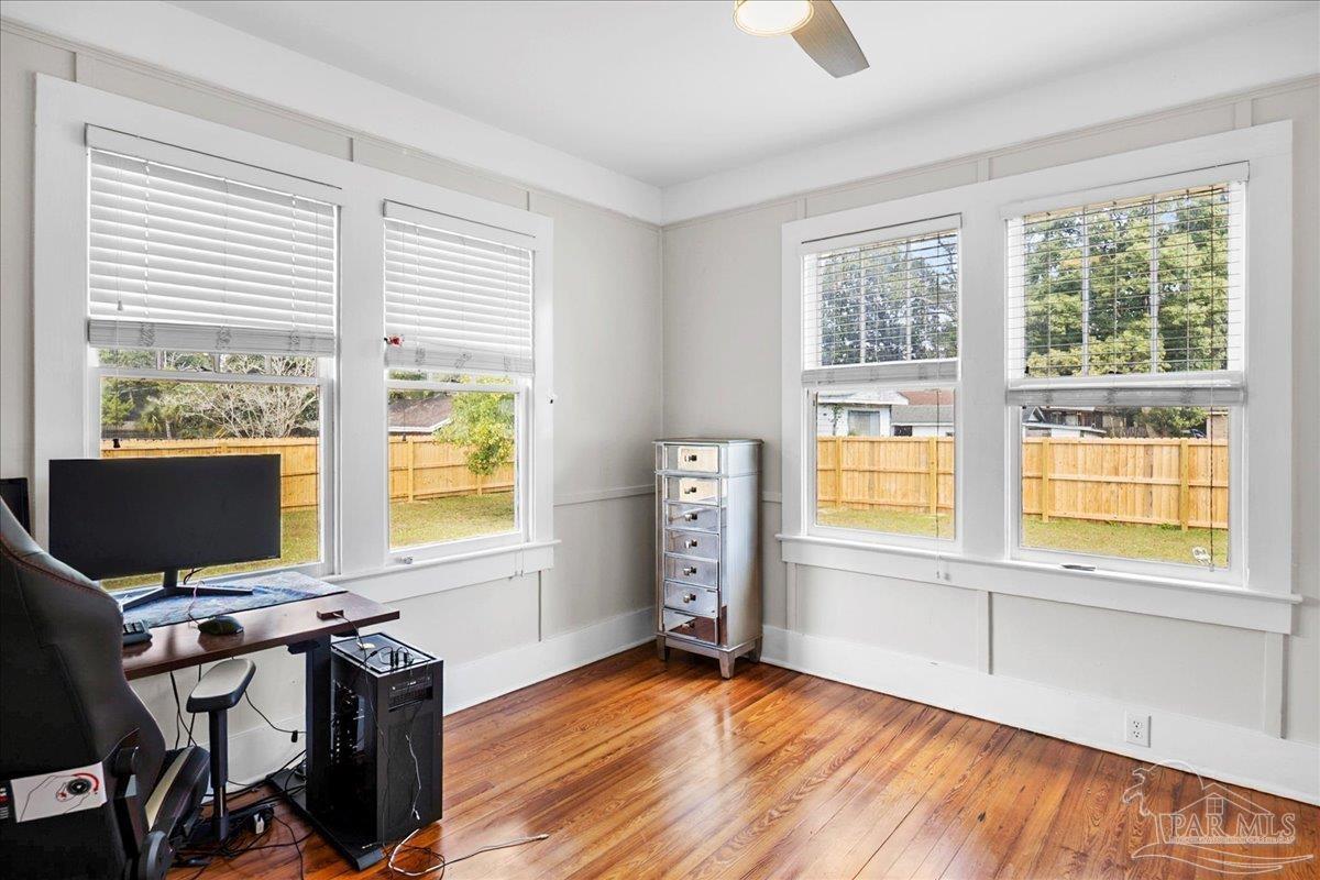 Move-in ready 3 bedroom, 2 bath home in North Hill. This home sits on almost a half acre lot and has had many important updates. Inside, you'll find beautiful heart pine and oak floors throughout most of the home and sleek granite countertops in the kitchen. The main bathroom was fully renovated down to the studs and now features glass tile around the tub and shower. The roof was replaced in 2021, new ceilings and insulation were completed in 2022 and the plumbing was updated in 2018. There is an oversized two car garage that offers great storage or could be turned into an apartment- you got options! The front porch is inviting and the fenced backyard has plenty of room for a pool or outdoor living. Beautifully maintained North Hill Craftsman with hardwood floors, updated kitchen and baths, LARGE lot, and a two-car garage. Historic charm in an unbeatable Pensacola location. Schedule your showing today.