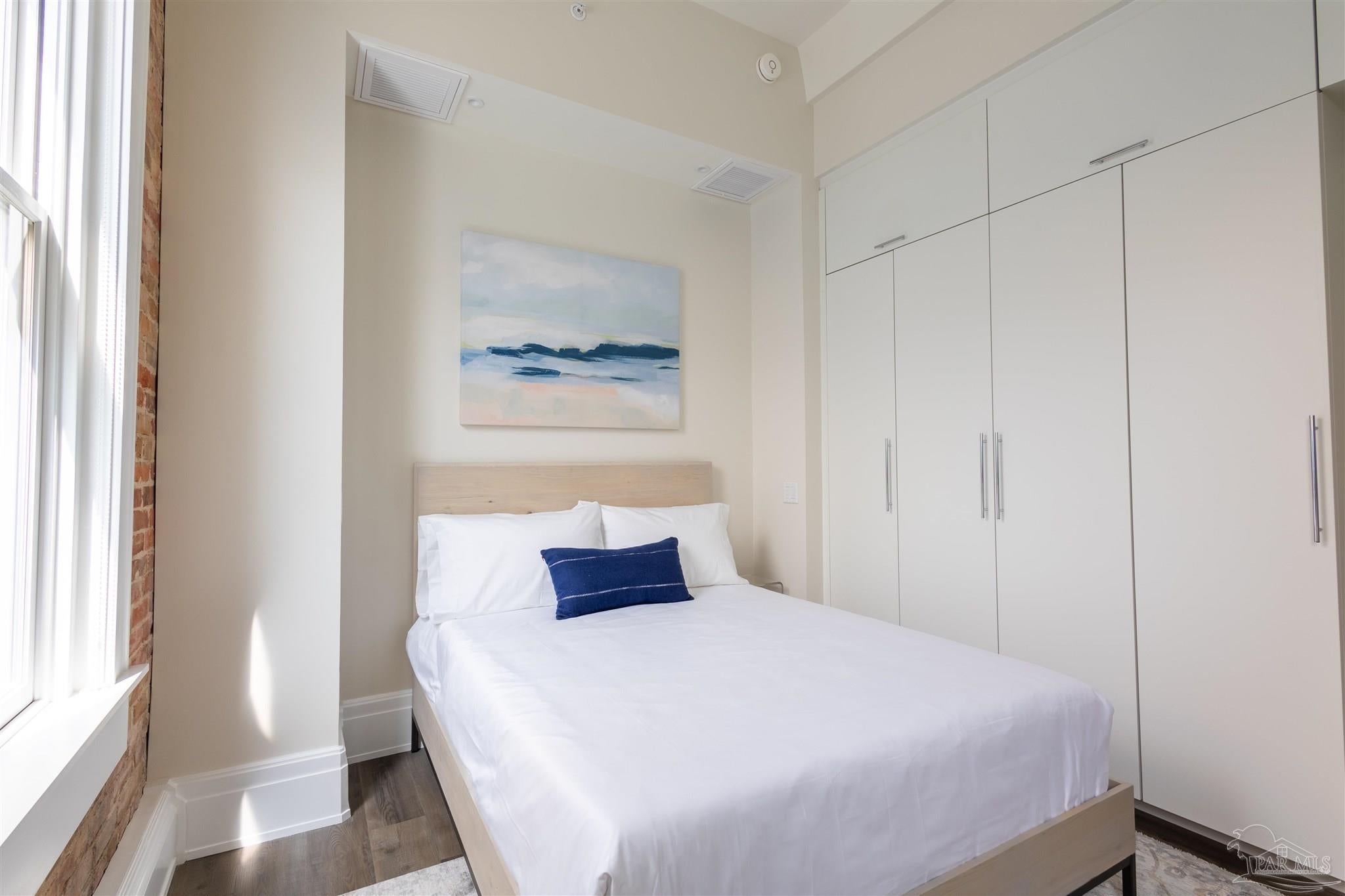 One bedroom Brent Lofts condominium in the heart of downtown Pensacola. Located on Palafox in the very first block south of Garden this is the most walkable property in the central core. There are 8 restaurants and bars on the block. This unit is on the third floor of the Lofts and is available for short term rental which this unit is currently enrolled in with One Palafox Properties. High quality construction in a solid concrete and steel building in the middle of the One Palafox Place complex. No better place to be downtown.