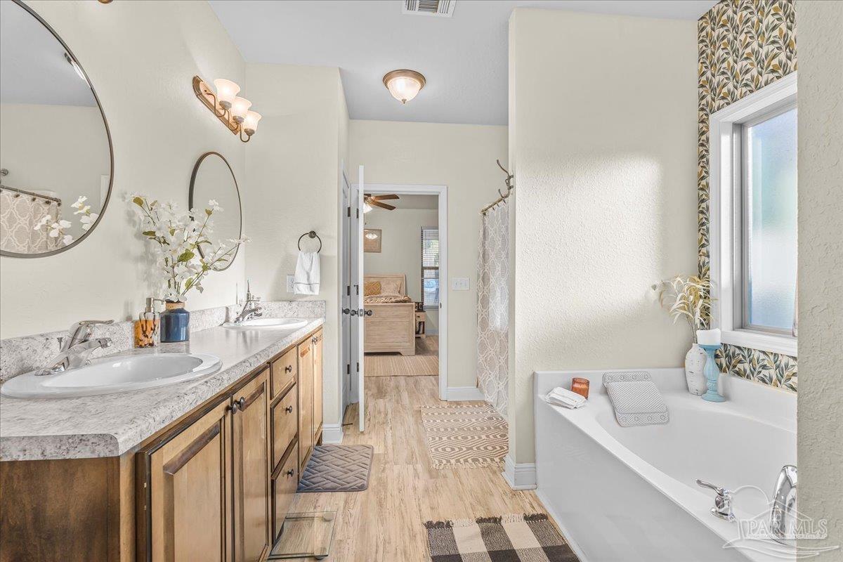 Welcome to the fabulous neighborhood of Millview Estates! This spacious 4-bedroom, 3-bath home sits on an EXTRA-LARGE CUL-DE-SAC LOT, offering the privacy and space everyone wants. There’s NO HOA, yet the neighborhood is so well-kept you’d think there was one. Just minutes from NAS Pensacola, the Navy Hospital, shopping, and the beautiful beaches of Perdido Key, this location blends convenience with relaxed coastal living. It’s Enjoy quiet mornings on the OVERSIZED COVERED FRONT PORCH—a perfect spot for coffee or greeting guests. Inside, the ENLARGED FAMILY ROOM offers a warm feel with its FIREPLACE and TREY CEILINGS. From there, step into the impressive 20x19 SUNROOM, filled with natural light and ideal for year-round enjoyment. The KITCHEN features GRANITE countertops, an ISLAND, RAISED PANEL MAPLE CABINETS, STAINLESS-STEEL APPLIANCES, an EXTRA-LARGE PANTRY, and RECESSED LIGHTING. It opens to the dining and family areas, making connection and conversation easy. BRAND-NEW CHIC LVP FLOORING runs throughout the home for a clean, modern look. The DOWNSTAIRS PRIMARY BEDROOM offers a comfortable escape with a STEP CEILING, while the PRIMARY BATH includes GRANITE countertops, DOUBLE VANITY, SEPARATE SHOWER, and an EXTRA-LARGE WALK-IN CLOSET. An additional bedroom and full bath downstairs make hosting guests or multi-generational living simple. Upstairs includes two more bedrooms, a full bath, and BONUS STORAGE. The fully PRIVACY-FENCED BACKYARD backs up to a GREENBELT, giving you peace and extra space. Enjoy your own summertime oasis with the SPARKLING ABOVE-GROUND POOL (with BRAND-NEW PUMP), plus a PERGOLA and BRICK PATIO—great for grilling or unwinding after a long day. Just 20 minutes from downtown Pensacola’s restaurants, festivals, and waterfront, this home offers comfort, space, and a prime location. Call us today for your private showing!