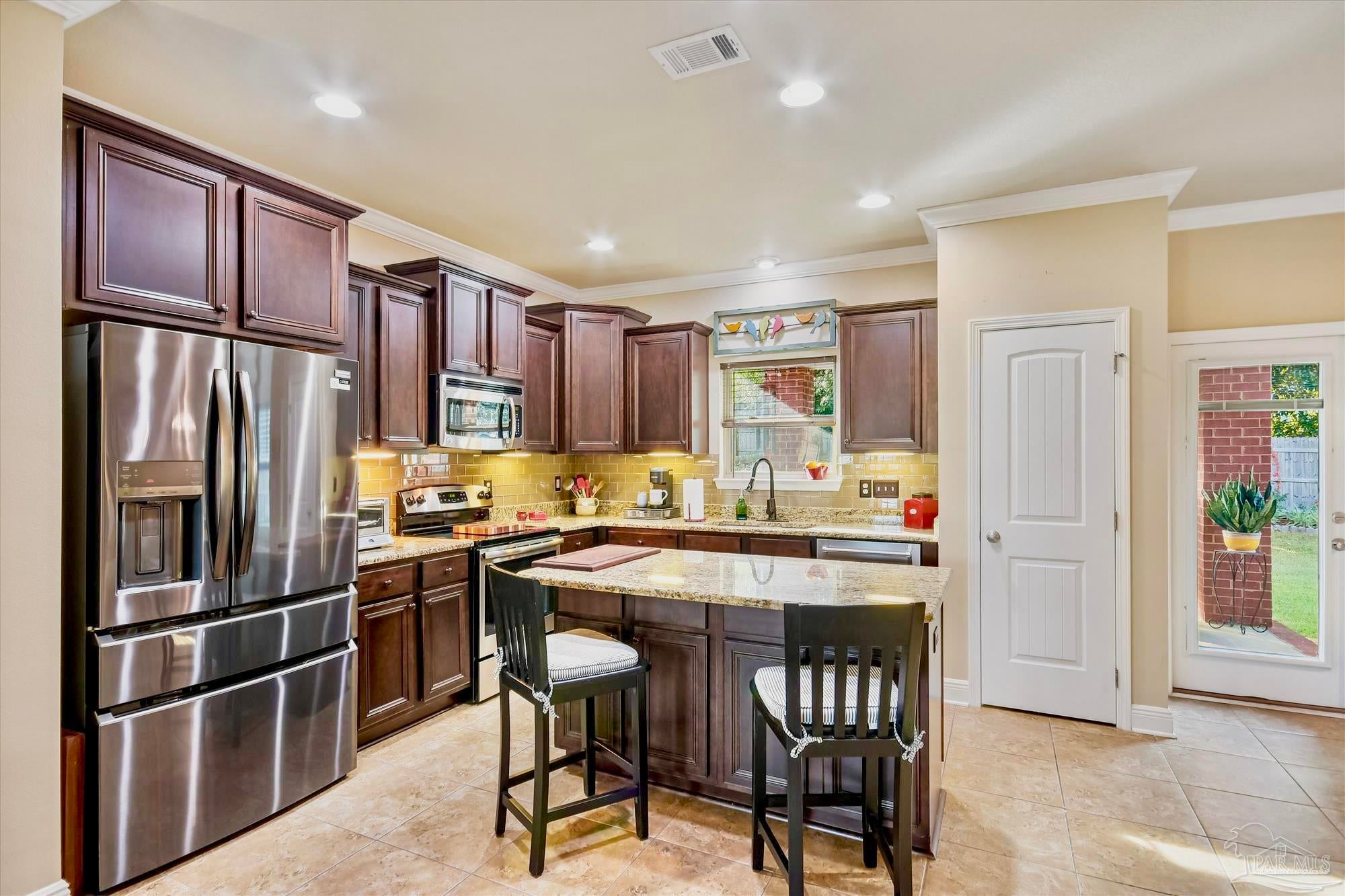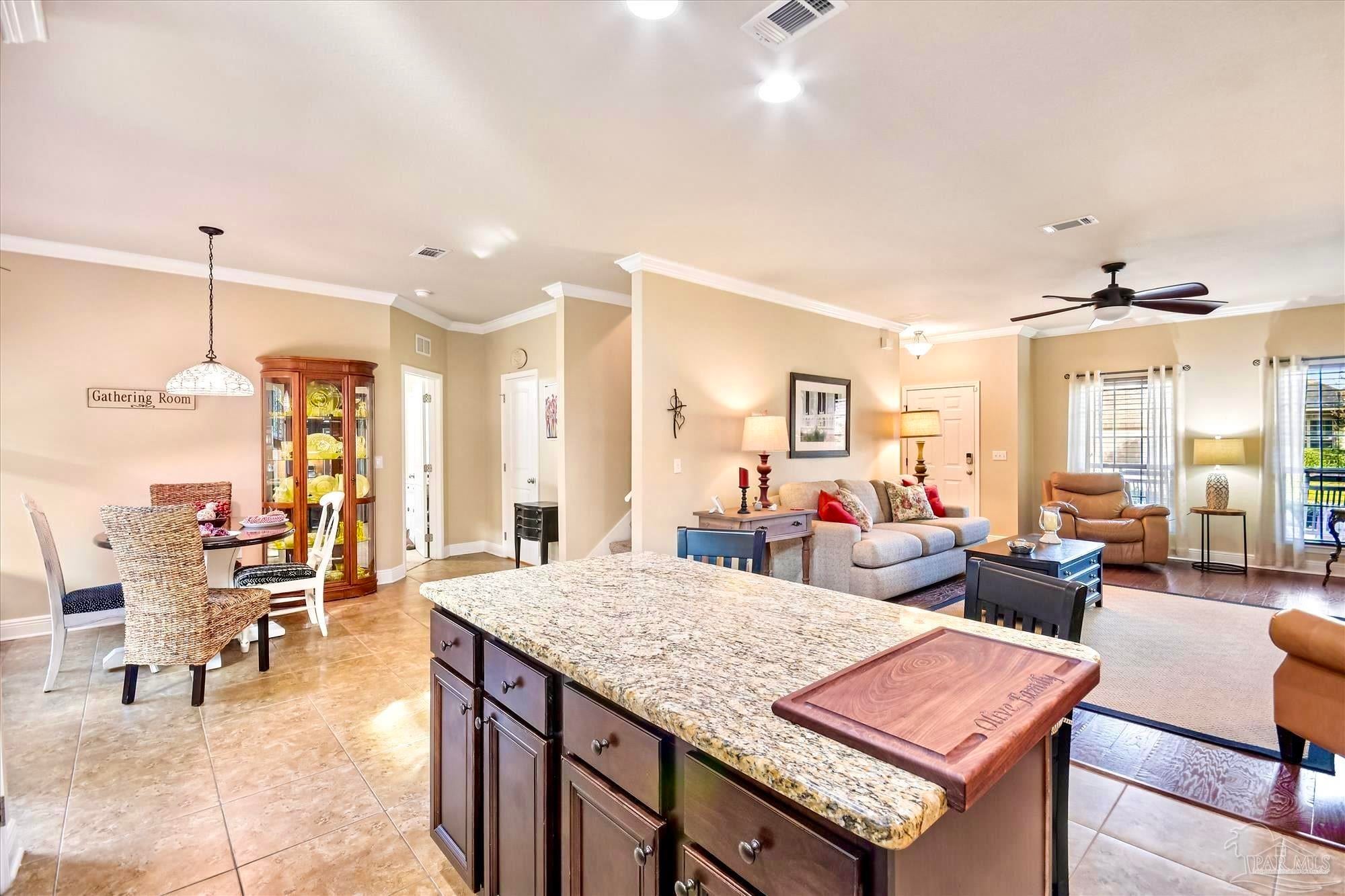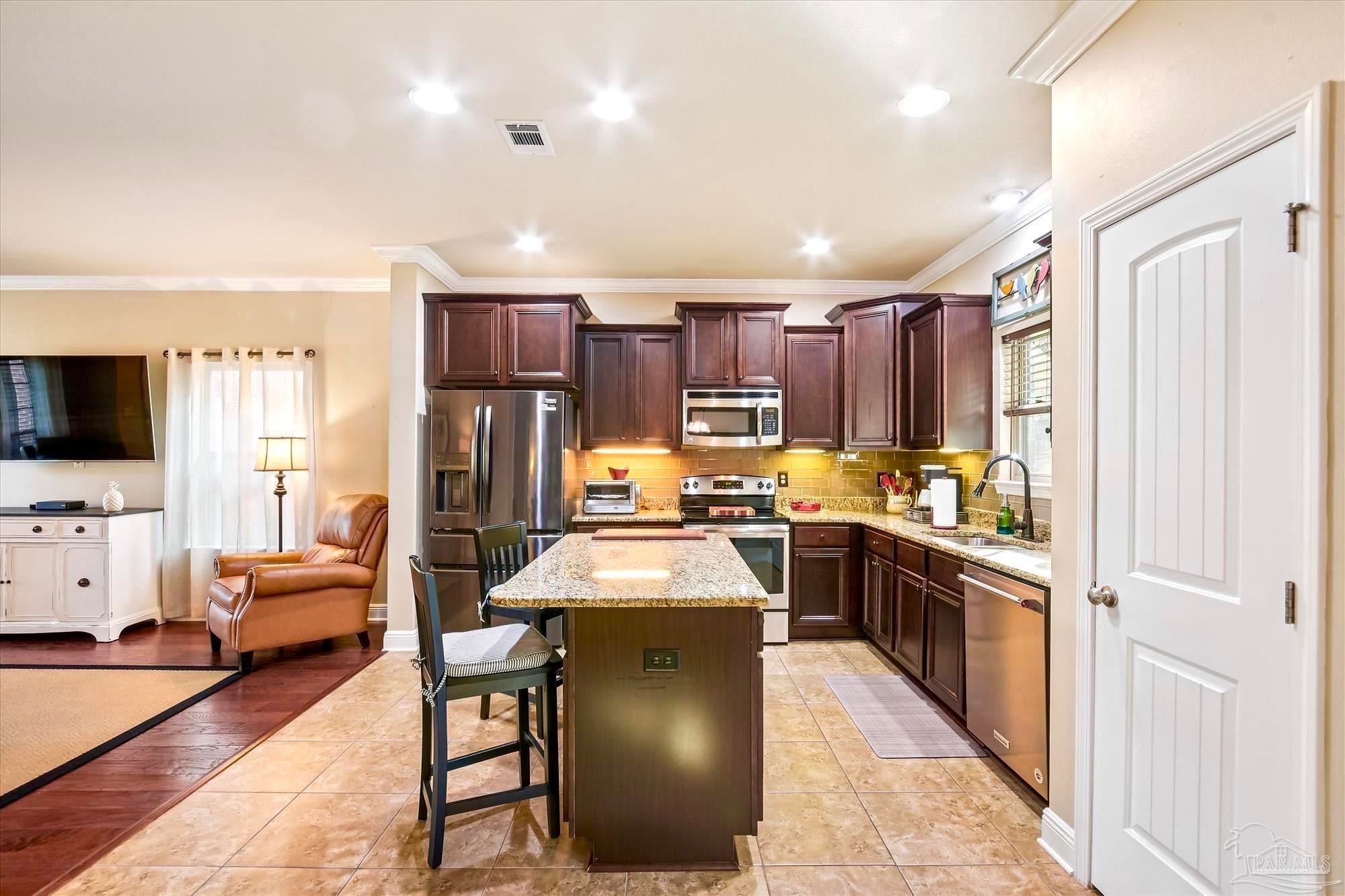 Located in one of the BEST AREAS of PENSACOLA! Tucked away in a wonderfully private little neighborhood yet convenient to everything! This beautifully maintained home features a DOWNSTAIRS OWNER'S SUITE and an open concept living area. As you enter, you will notice the lovely front porch and expansive window. The Living Area is adorned with rich Hardwood flooring and lots of natural light. The Kitchen boasts beautiful cabinetry with undermount lighting, Granite countertops, a custom backsplash and updated light fixtures. The appliances are Stainless Steel and include an ULTRA QUIET Dishwasher (over $900) and cabinet-depth Refrigerator with snack drawer. There is a 1/2 bath conveniently located near the living and dining areas. The spacious owner's suite includes an en suite with dual vanities, walk-in shower and a large walk-in closet. The cozy, covered porch is just off the dining area and there is lovely, new landscaping in both the front and back yard. Upstairs is where you will find the spacious laundry room as well as two more light, bright and perfectly sized bedrooms. Both have large closets and are joined by a convenient "Jack and Jill" style bathroom. You will also find an expansive Bonus Room with tray ceilings on the second floor. This could easily be reimagined as a 4th bedroom, home office or Game Room! The possibilities are endless. This beautiful, all-brick home has been beautifully maintained and is a Rare Find! This one will not last!
