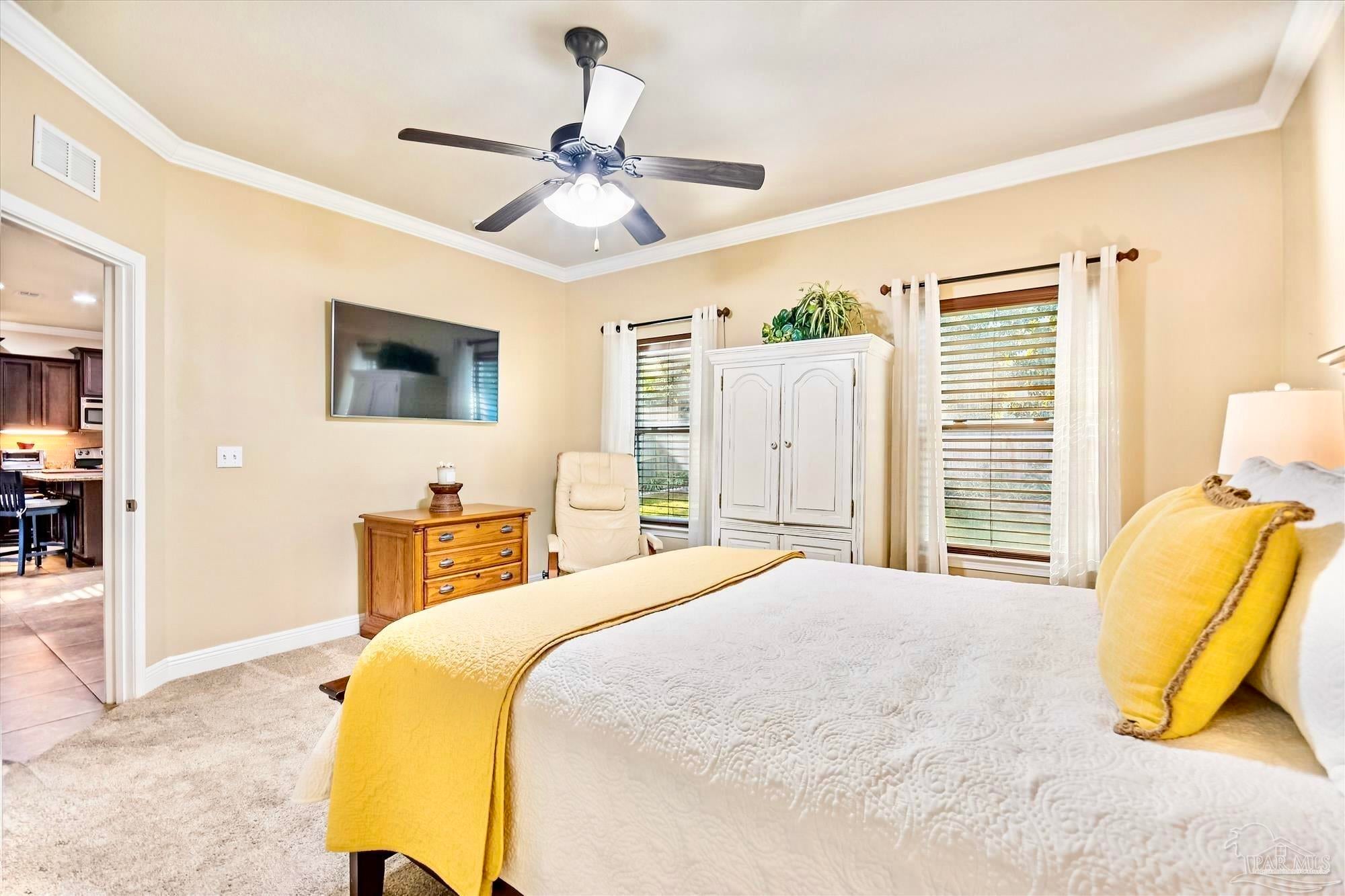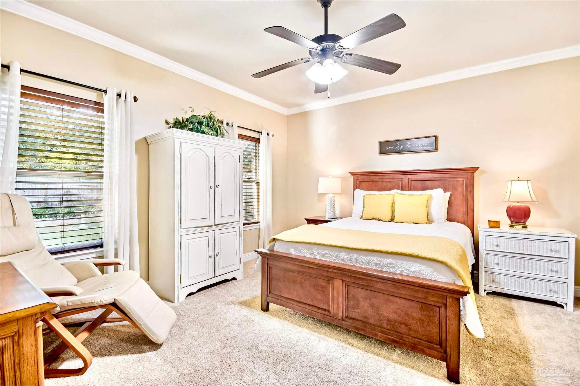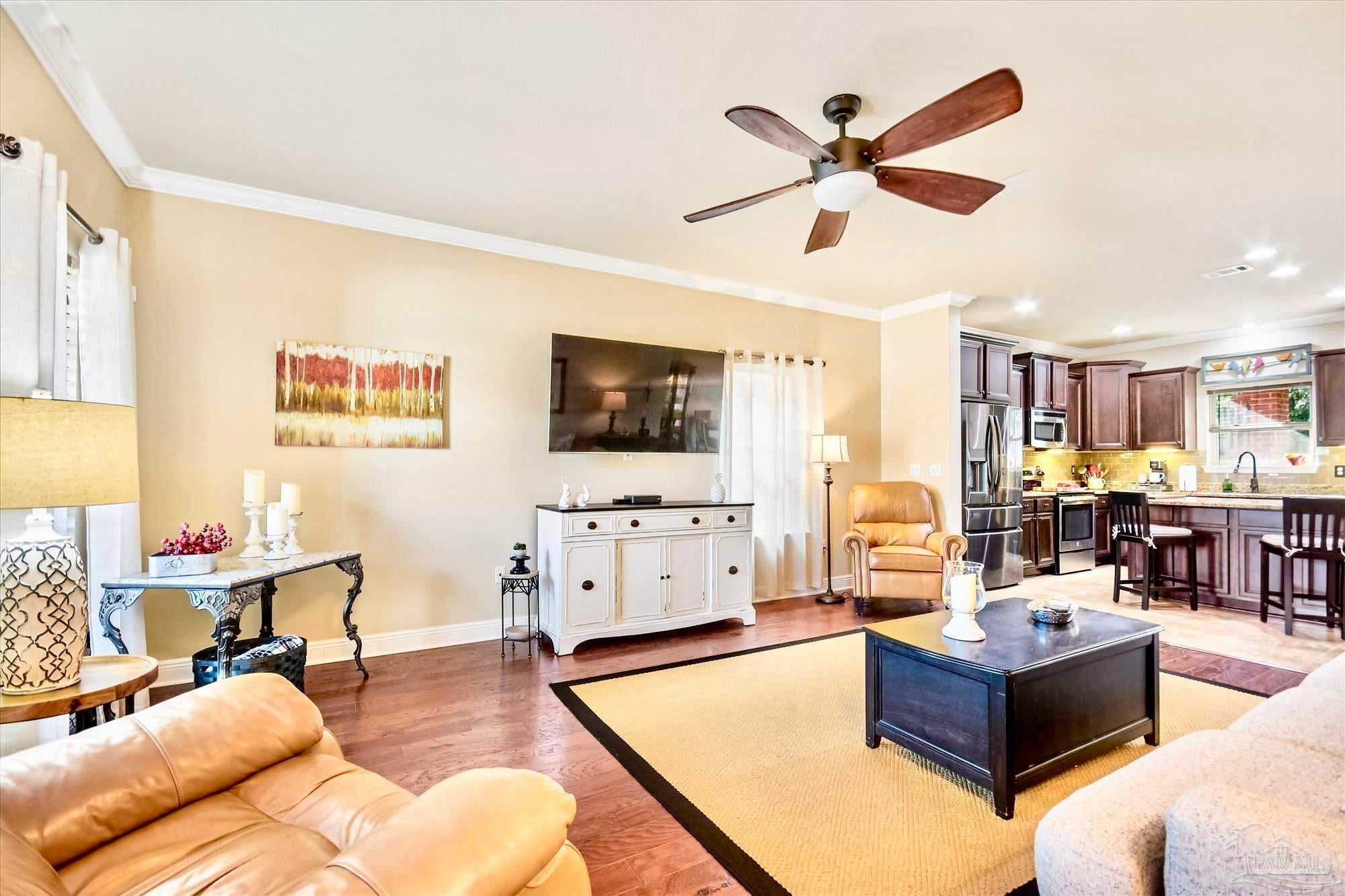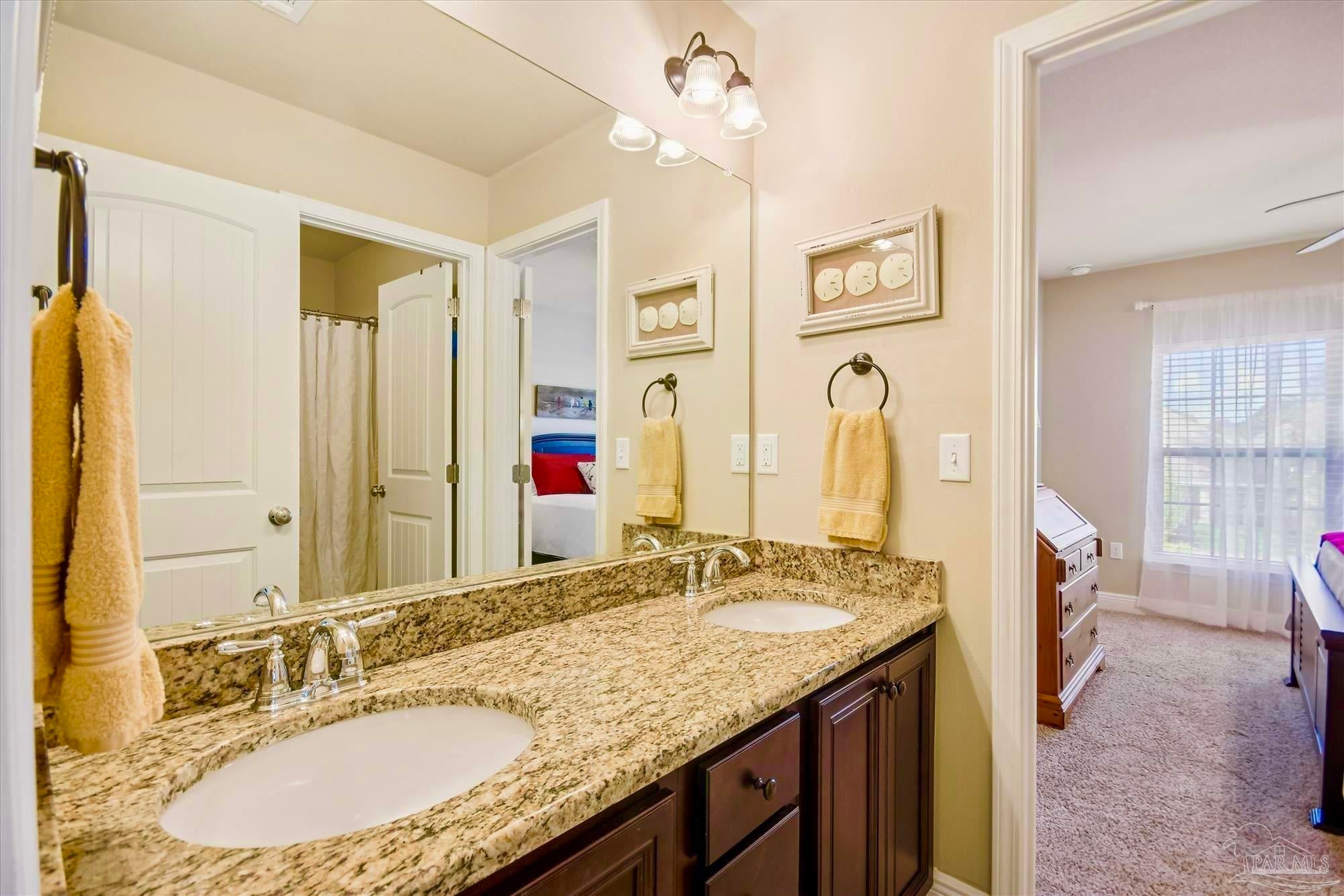 Located in one of the BEST AREAS of PENSACOLA! Tucked away in a wonderfully private little neighborhood yet convenient to everything! This beautifully maintained home features a DOWNSTAIRS OWNER'S SUITE and an open concept living area. As you enter, you will notice the lovely front porch and expansive window. The Living Area is adorned with rich Hardwood flooring and lots of natural light. The Kitchen boasts beautiful cabinetry with undermount lighting, Granite countertops, a custom backsplash and updated light fixtures. The appliances are Stainless Steel and include an ULTRA QUIET Dishwasher (over $900) and cabinet-depth Refrigerator with snack drawer. There is a 1/2 bath conveniently located near the living and dining areas. The spacious owner's suite includes an en suite with dual vanities, walk-in shower and a large walk-in closet. The cozy, covered porch is just off the dining area and there is lovely, new landscaping in both the front and back yard. Upstairs is where you will find the spacious laundry room as well as two more light, bright and perfectly sized bedrooms. Both have large closets and are joined by a convenient "Jack and Jill" style bathroom. You will also find an expansive Bonus Room with tray ceilings on the second floor. This could easily be reimagined as a 4th bedroom, home office or Game Room! The possibilities are endless. This beautiful, all-brick home has been beautifully maintained and is a Rare Find! This one will not last!