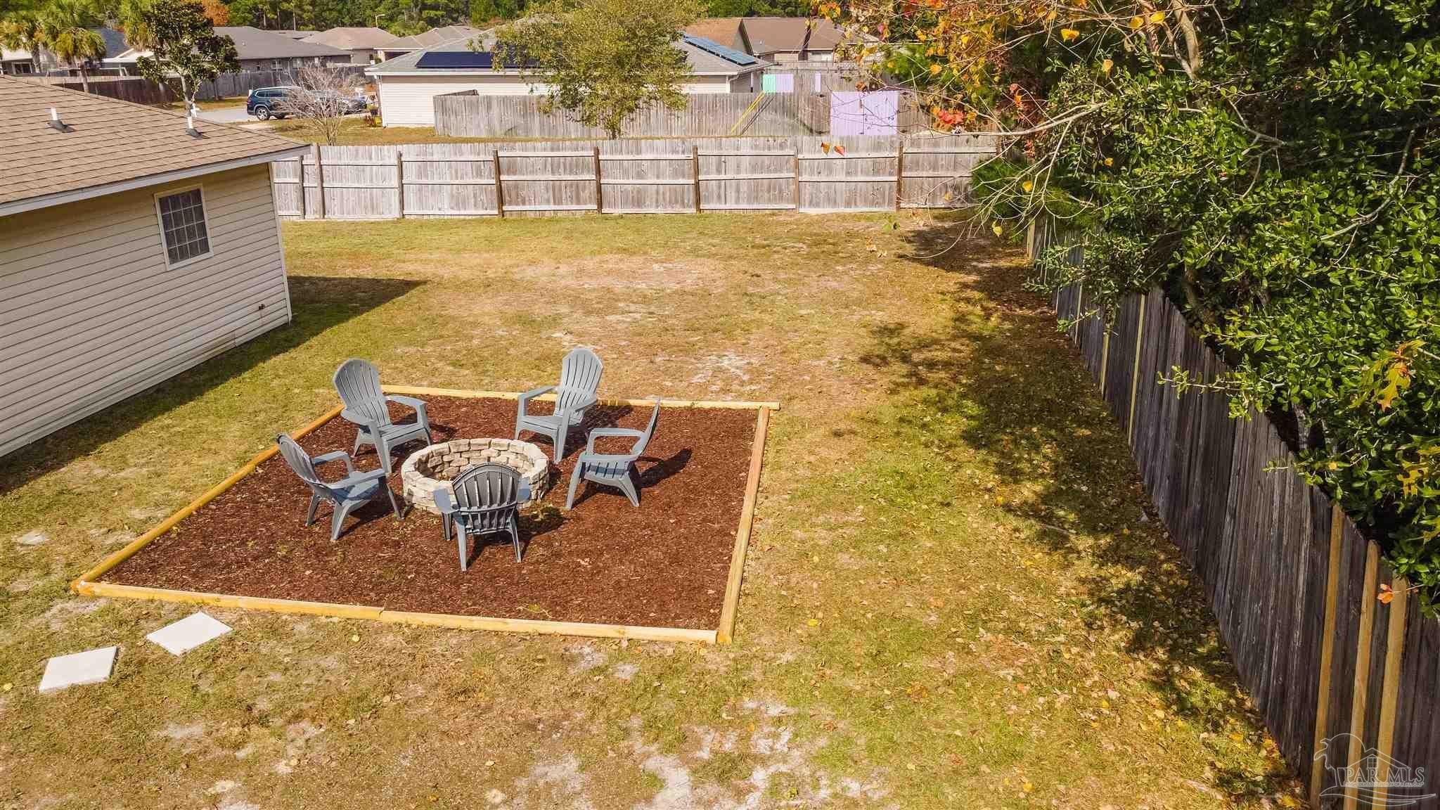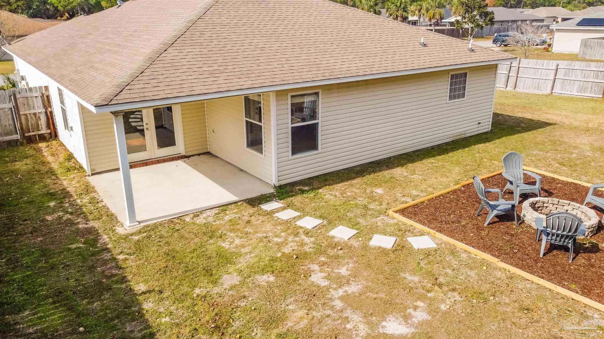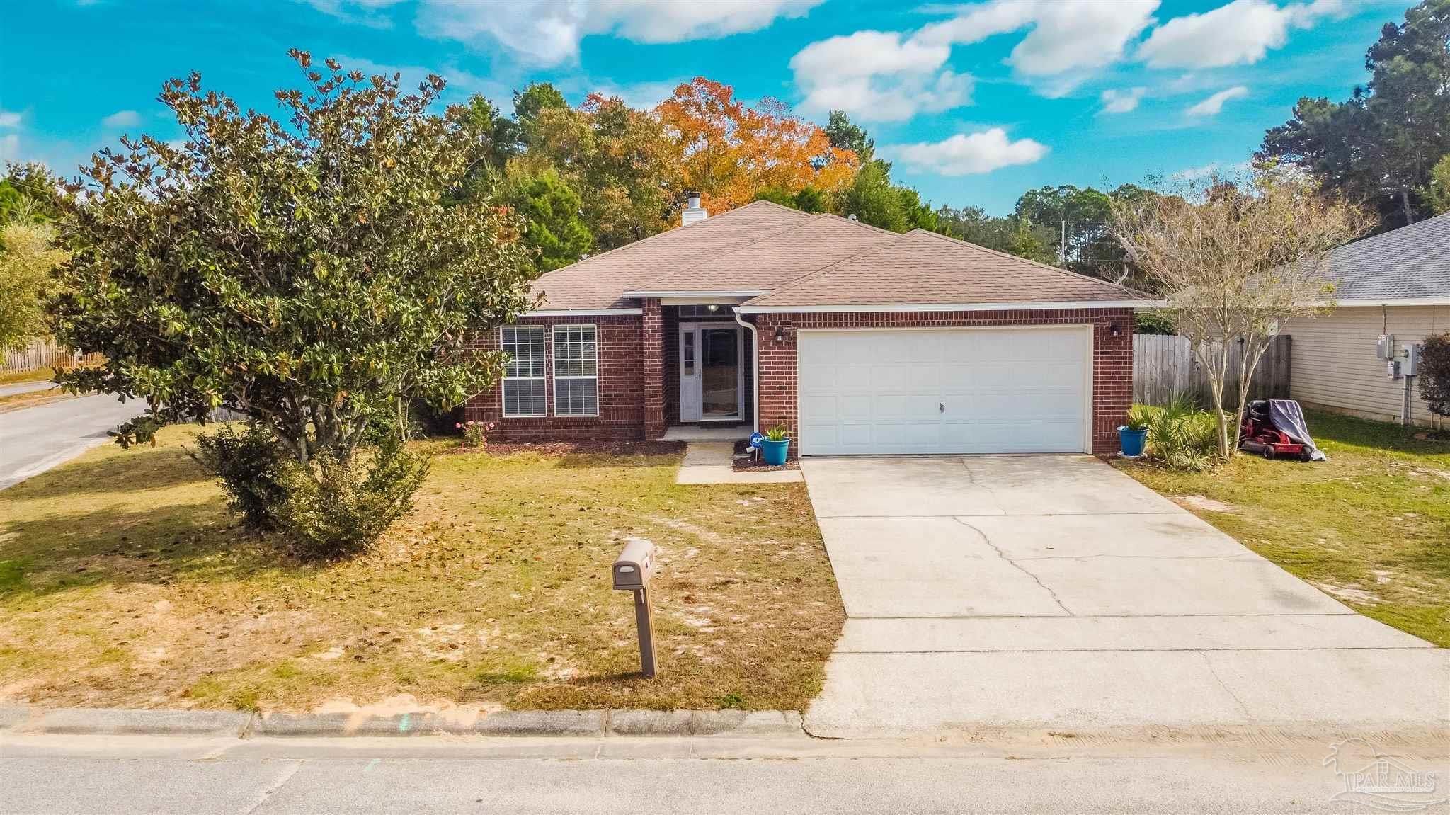 Come see this beautiful, corner lot home in Navarre just 4 miles away from the beach! Located in the Promise Creek neighborhood, this property sits on a 0.165 acre corner lot and features a large, fenced backyard space with a covered porch and firepit area. The interior showcases an open floor plan with vaulted ceilings in the spacious living area that also has a fireplace, along with a kitchen that overlooks the living & dining areas and includes a breakfast bar, lots of counterspace, and a pantry. The main bedroom suite is separate from the other bedrooms and the bathroom features a walk-in closet, a double vanity, and a garden tub. The property is located within 2 miles of Publix Supermarket and other restaurants & shopping off of US-98, along with being within 4 miles of Navarre Beach. Schedule your showing today!