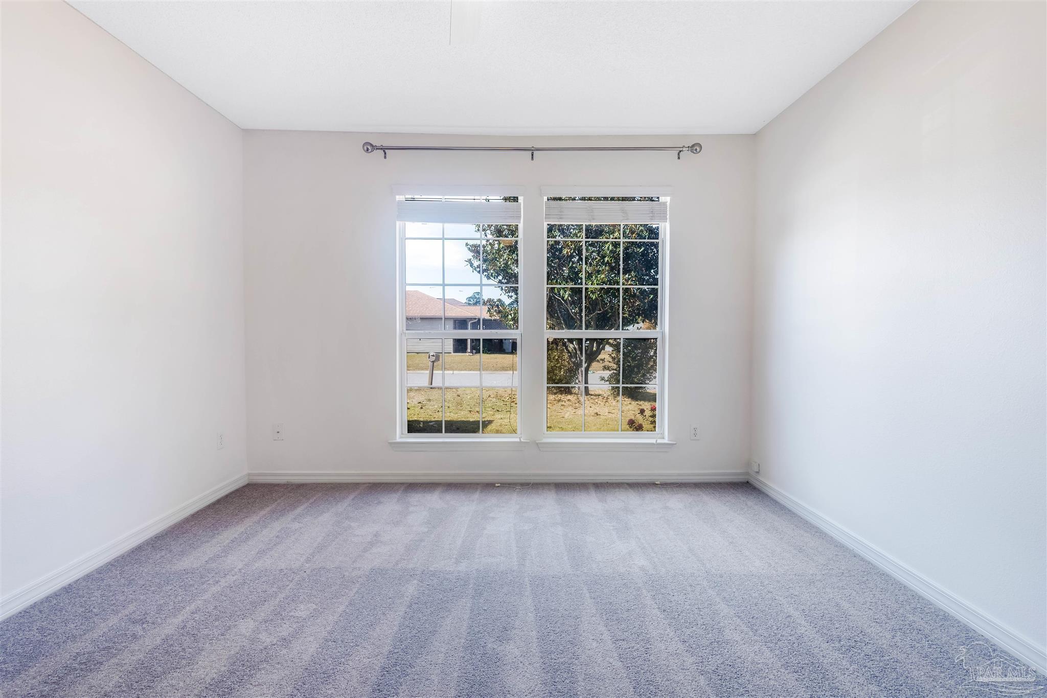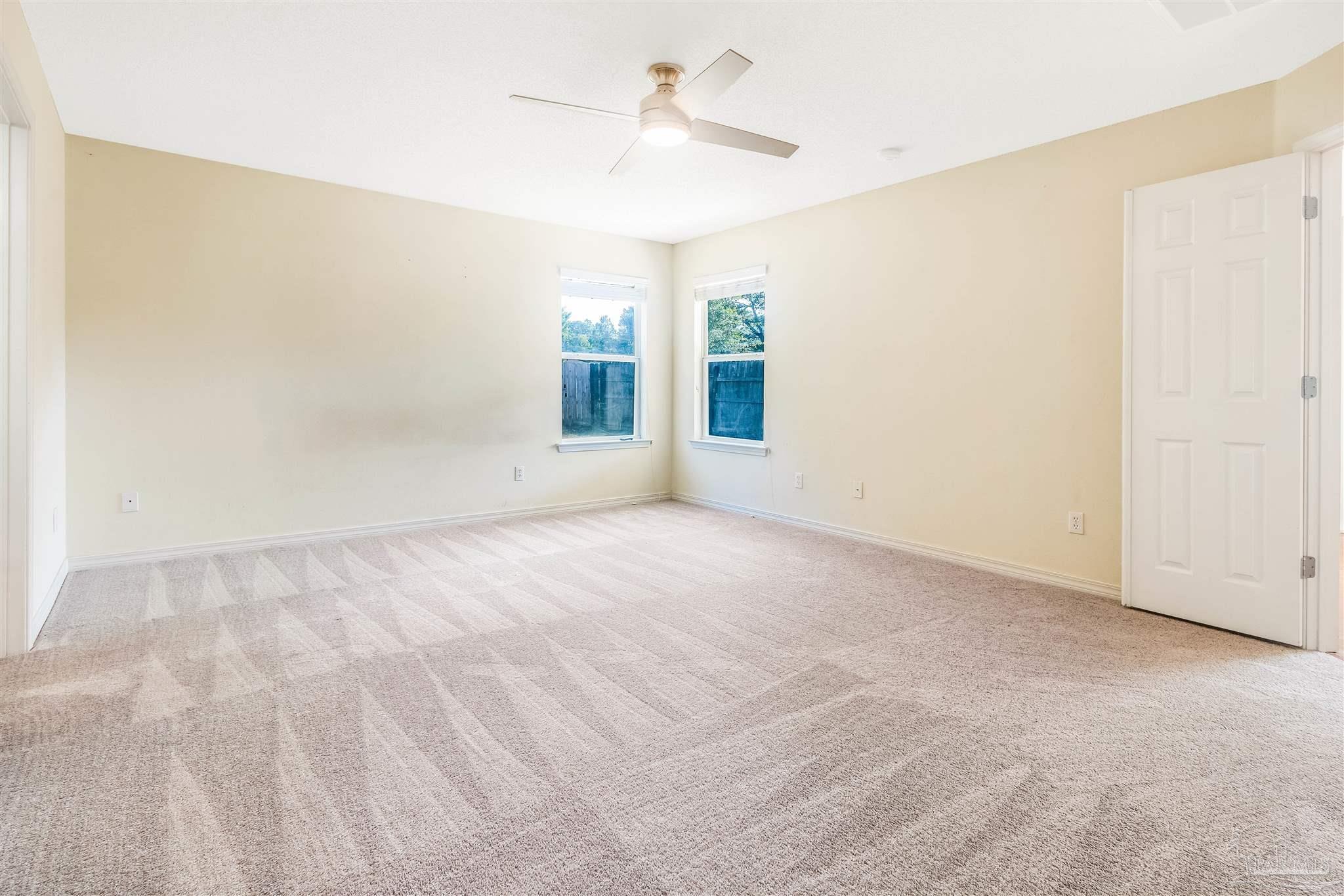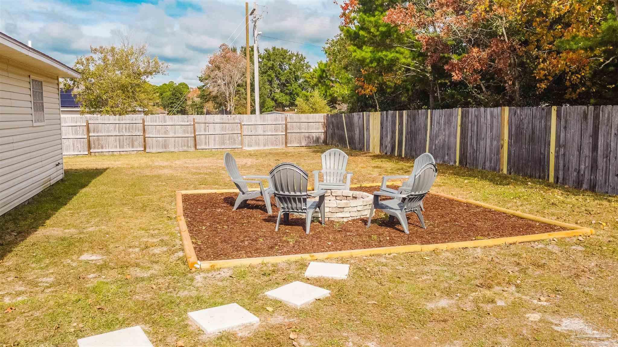Come see this beautiful, corner lot home in Navarre just 4 miles away from the beach! Located in the Promise Creek neighborhood, this property sits on a 0.165 acre corner lot and features a large, fenced backyard space with a covered porch and firepit area. The interior showcases an open floor plan with vaulted ceilings in the spacious living area that also has a fireplace, along with a kitchen that overlooks the living & dining areas and includes a breakfast bar, lots of counterspace, and a pantry. The main bedroom suite is separate from the other bedrooms and the bathroom features a walk-in closet, a double vanity, and a garden tub. The property is located within 2 miles of Publix Supermarket and other restaurants & shopping off of US-98, along with being within 4 miles of Navarre Beach. Schedule your showing today!