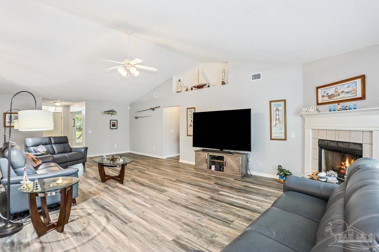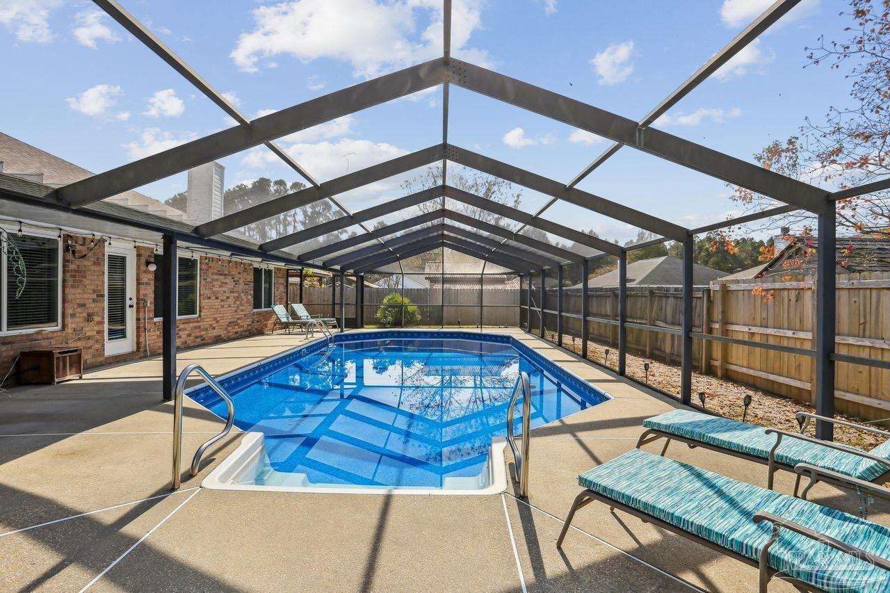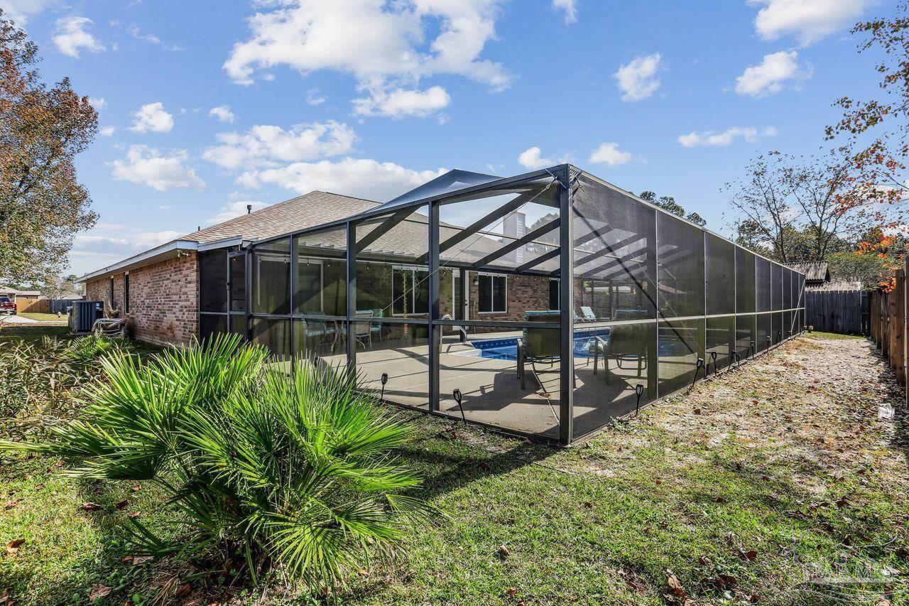 Welcome to this beautifully maintained 4-bedroom, 2-bathroom home tucked away on a peaceful cul-de-sac, just minutes from NAS and the stunning beaches of Perdido. This spacious residence offers both comfort and convenience, along with a sparkling pool enclosed in a screened lanai—perfect for year-round enjoyment. Upon entering, you’re greeted by a formal living room and dining room that flank the front entry, creating an elegant and welcoming first impression. The home then opens to a large family room featuring soaring ceilings and a cozy fireplace, offering the ideal space for gathering and relaxing. The kitchen provides abundant cabinet storage, a pantry, and new stainless-steel stove and dishwasher, along with a bright eat-in area overlooking the backyard. The home’s split bedroom layout offers excellent privacy: three nicely sized guest bedrooms with generous closets are situated on one side, while the primary suite is privately set apart. The primary bedroom features two walk-in closets, and an en-suite bath with a separate tub and shower and a private water closet. Step outside to the expansive screened lanai, ideal for entertaining, grilling, or simply enjoying the Florida lifestyle by the pool. This home has been exceptionally cared for with major recent upgrades, including new windows, roof, A/C, water heater, flooring and pool liner, offering peace of mind for years to come.